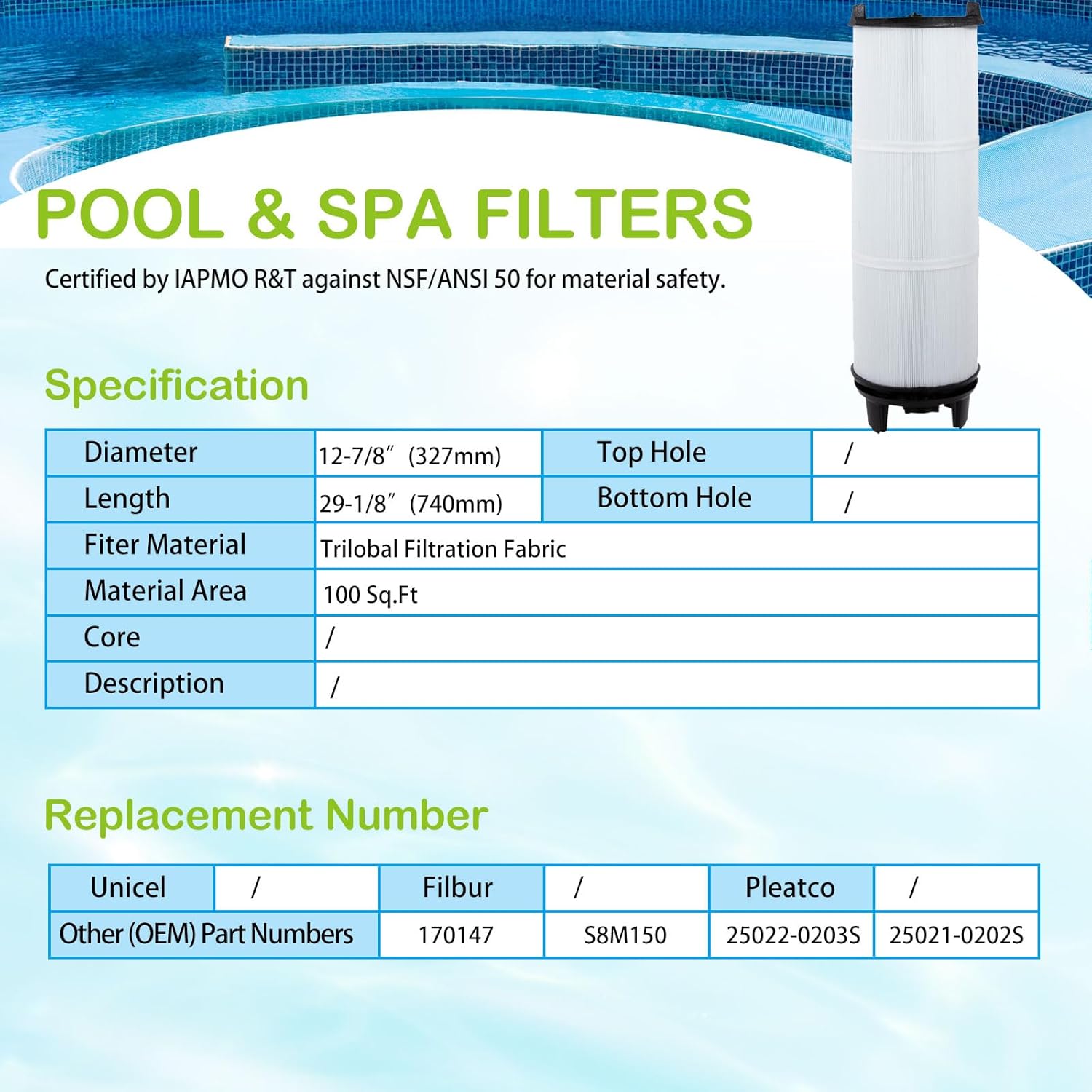 27002-0300S Pool Fliter Cartridges, Replacement for sta-rite 27002-0300S Pool and Spa D.E. Filter, Compatible with sta-rite PLM300 and System 2 Pool and Spa Cartridge Filter Modular Media, 300 sq.ft
