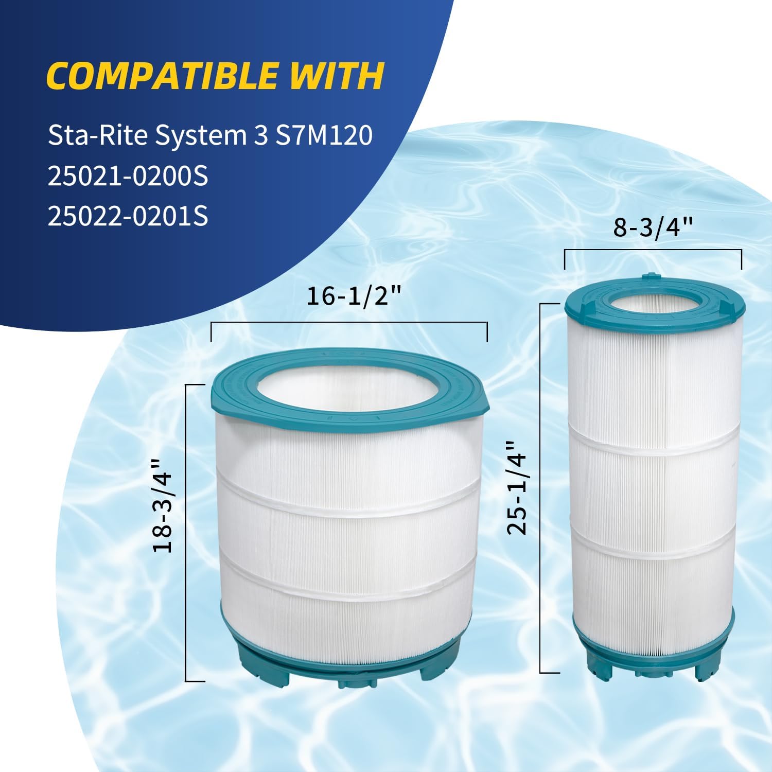 Savener® S8M150 System 3 Inner and Outer Cartridge, Replacement for Sta-Rite System 3 S8M150, 170147, 25022-0203s-25021-0202s, SR450 Swimming Pool Filter Cartridge, 450 Sq. Ft