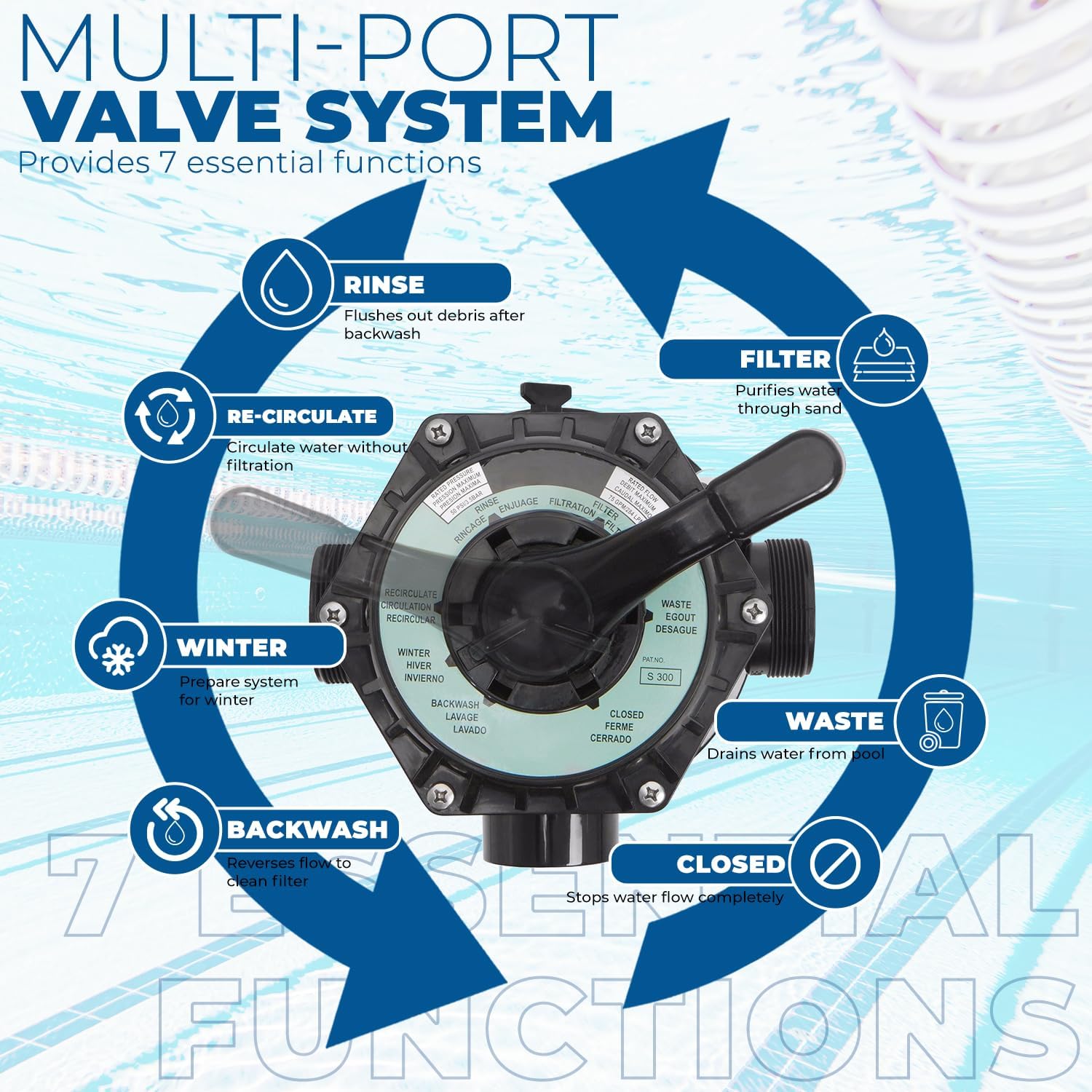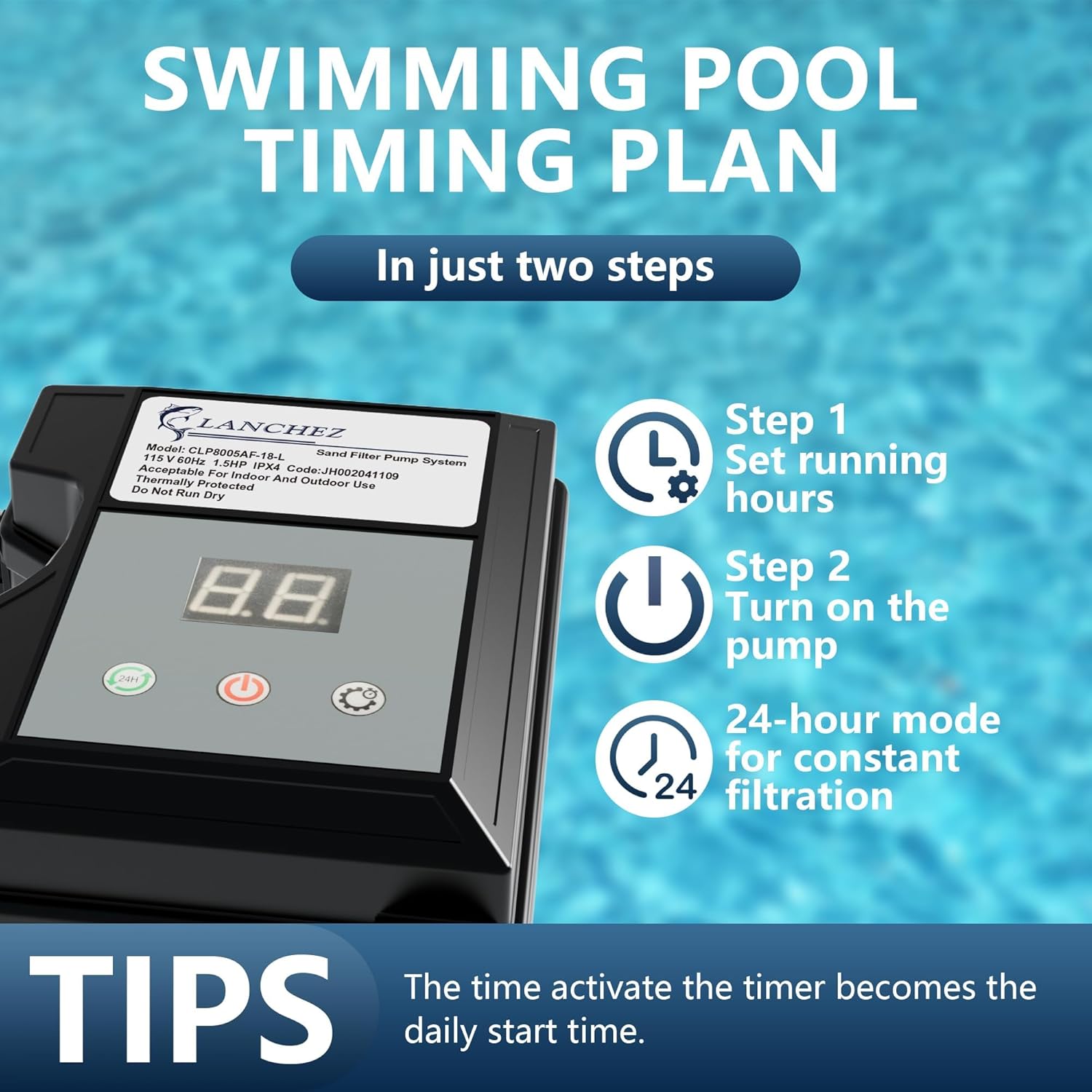 LANCHEZ 18in Sand Filter Pump for Above Ground Pool with Timer, 1.5HP, Max 4900GPH for Pools Up to 20000GAL, 6-Way Valve Pool Sand Filter System, Enhanced Circulation for Crystal-Clear Pool
