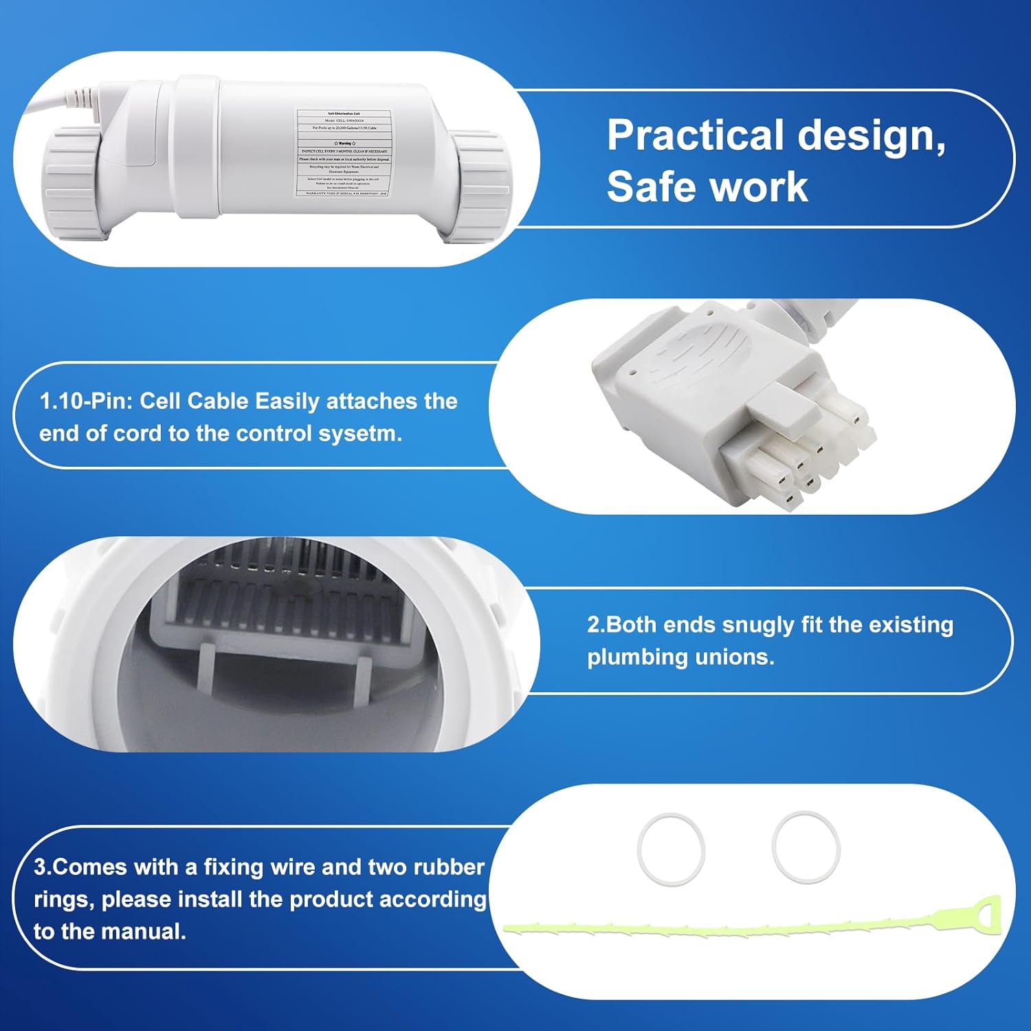 Saltwater Chlorine Generator System, EC12 Salt Cell Chlorine Generator for Inground Pools, Salt Water Pool Chlorination System Replacement for Hayward Saltwater System, 15,000 gallons
