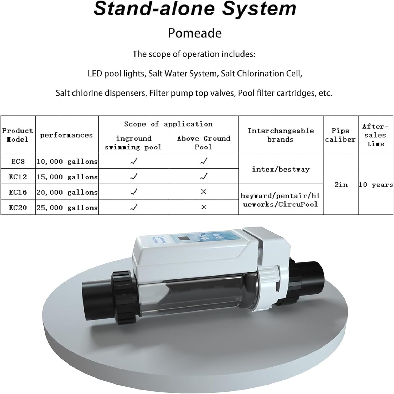 Pool Saltwater Salt Chlorine Generators Electrolysis Salt Chlorinator Device, 8/16/12/20g/h 100-240V Smart Salt Chlorinator System for Inground Pools- Built,25000gallons