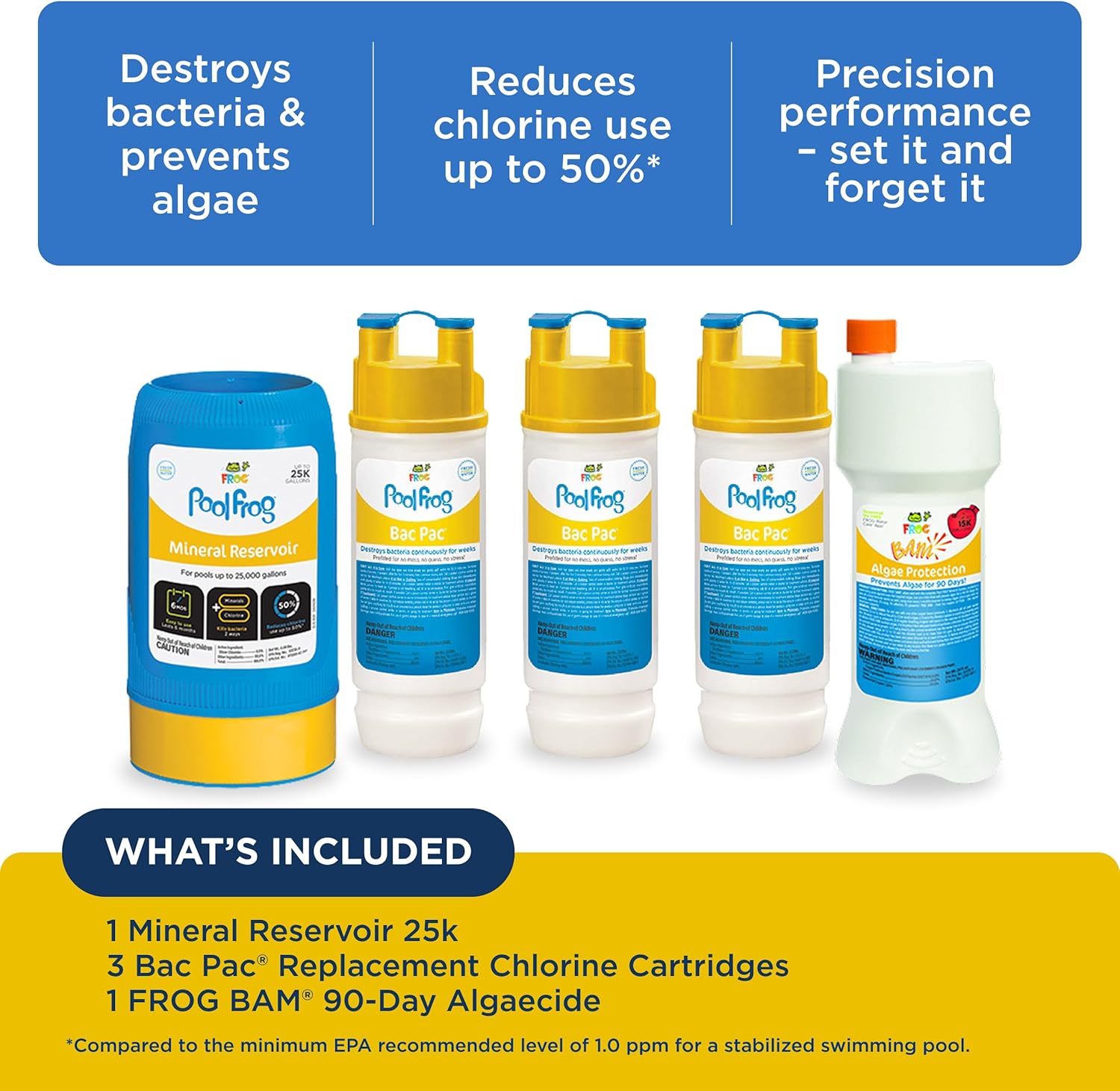 FROG Replacement Mineral Reservoir for use with Pool FROG Model 6100 Cycler - Prefilled Mineral Cartridge for Quick & Easy Pool Sanitization - Pool Opening Bundle+