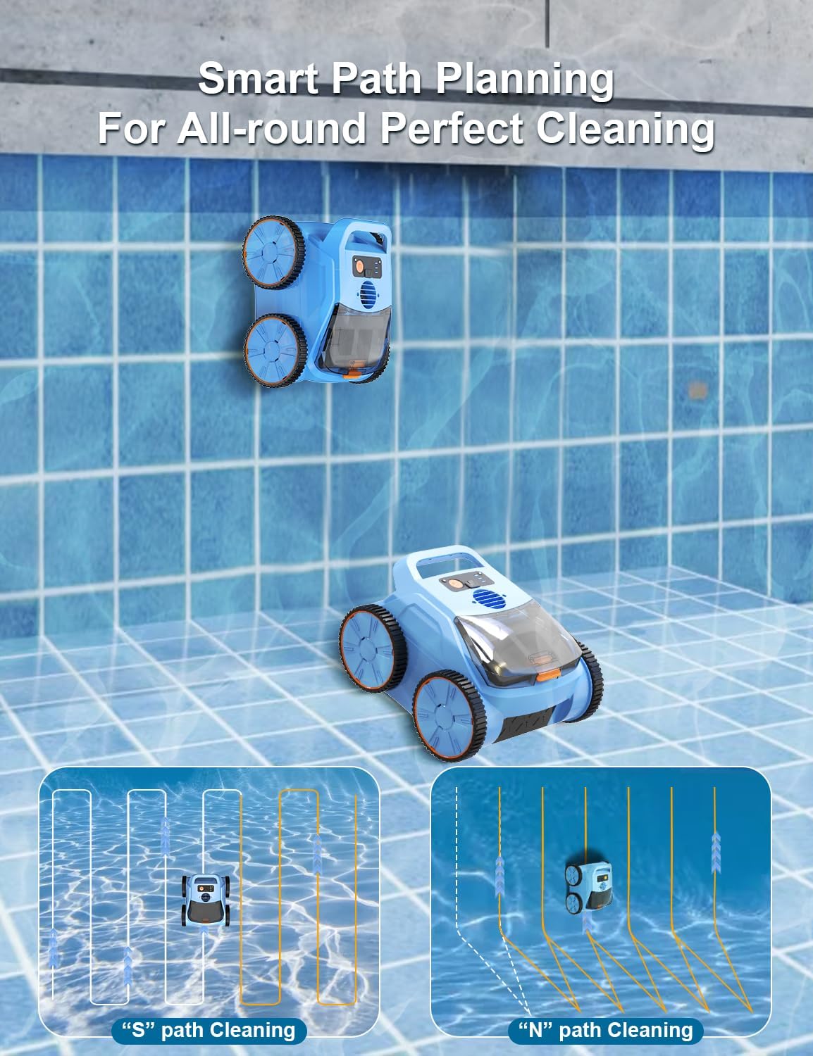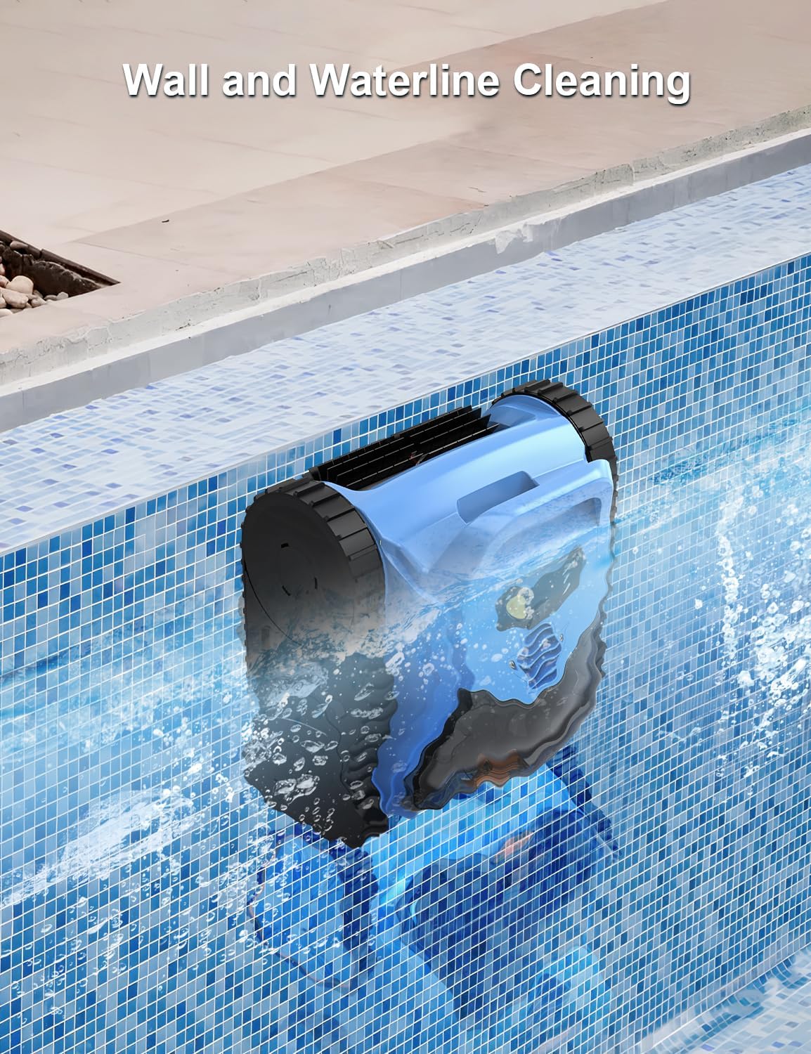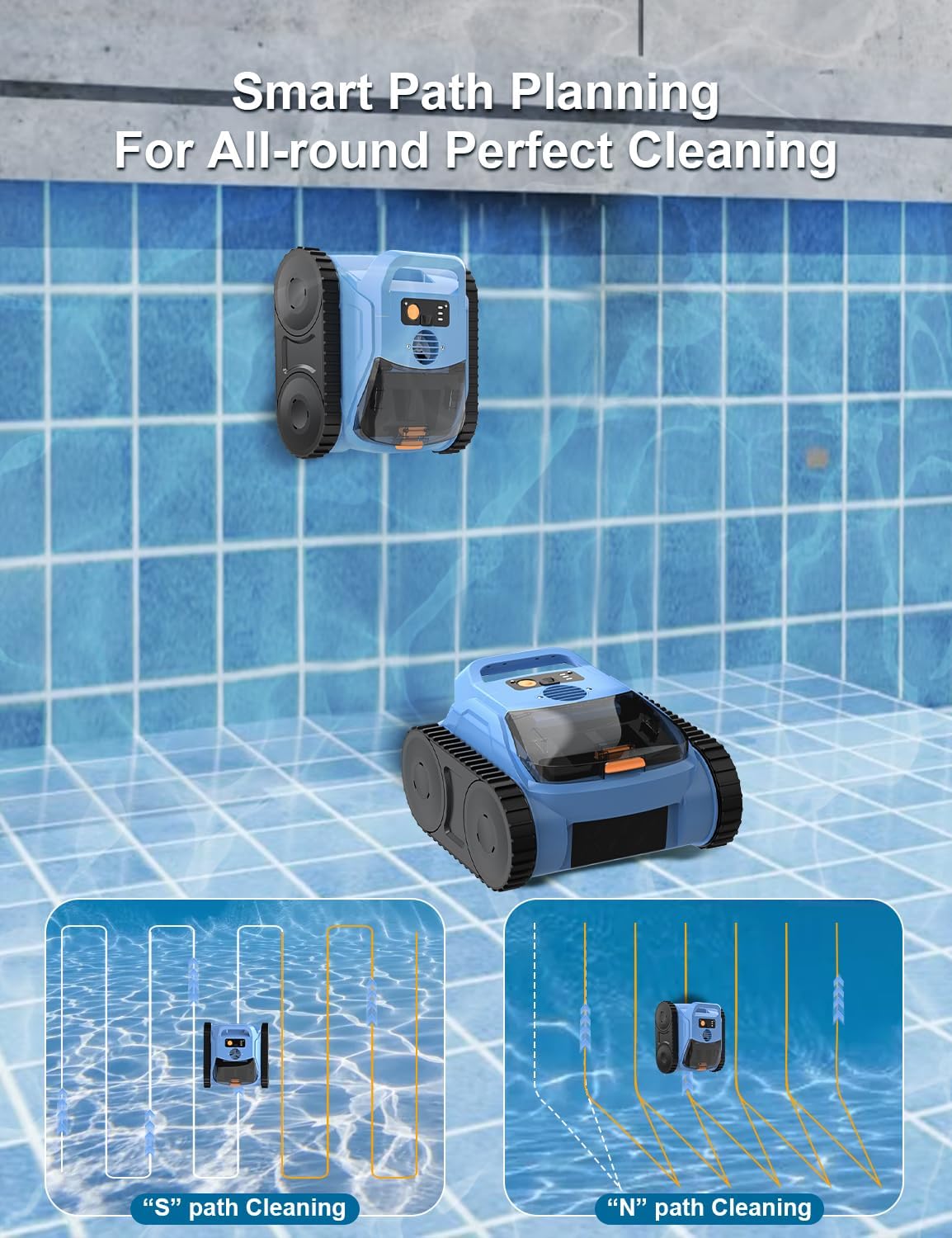 Cordless Robotic Cleaner, Pool Vacuum for Inground Pools up to 2100 Sq.ft, Pool Robot Vacuum Lasts Up to 180 Mins, Pool Cleaner for Wall, Floor and Auto Mode