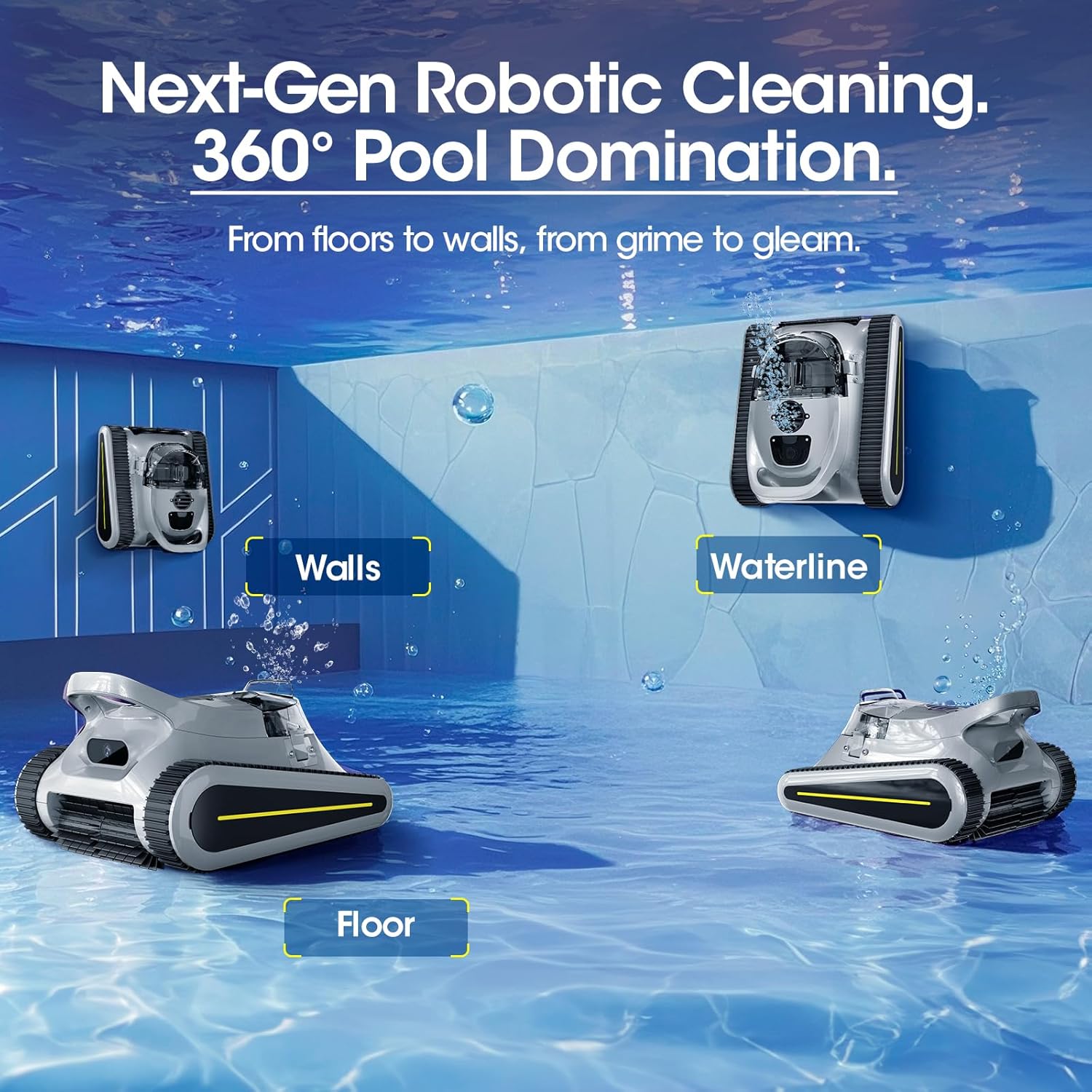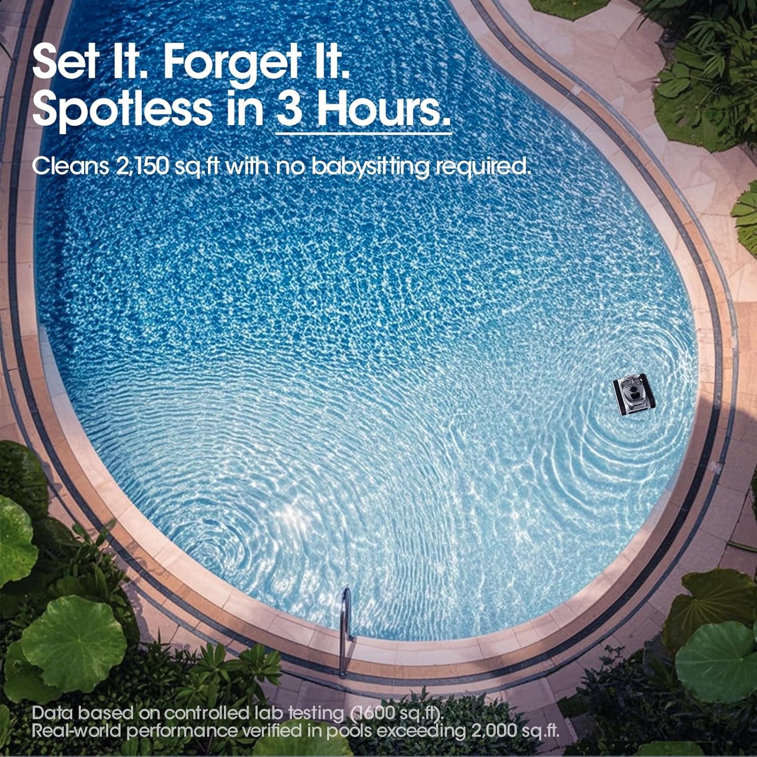 Cordless Robotic Pool Cleaner, Pool Vacuum 180W Brushless Motor, 45000Pa Suction, Wall & Waterline Climbing, Auto Path Mapping, for Inground & Above-Ground Pools up to 2150 Sq. Ft.