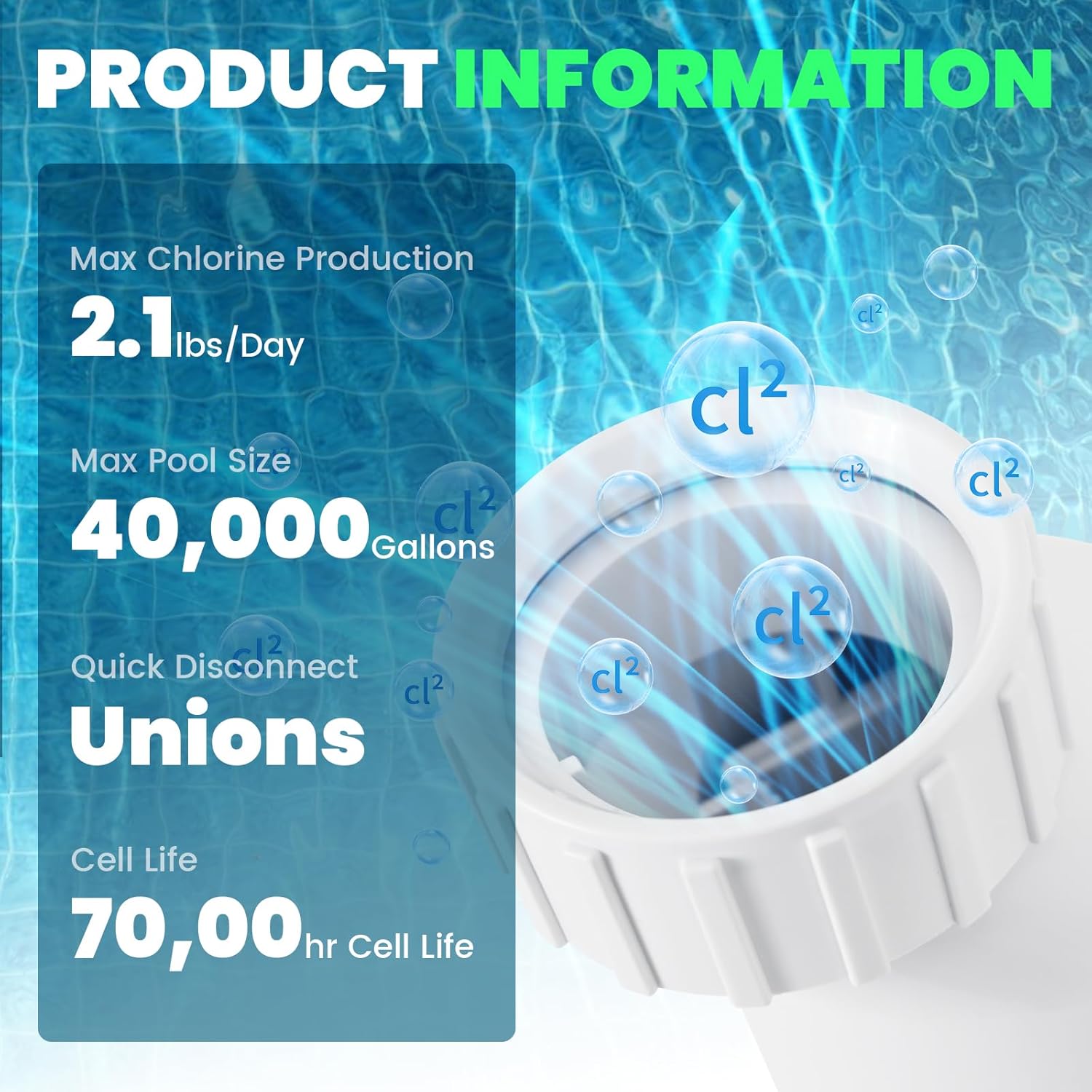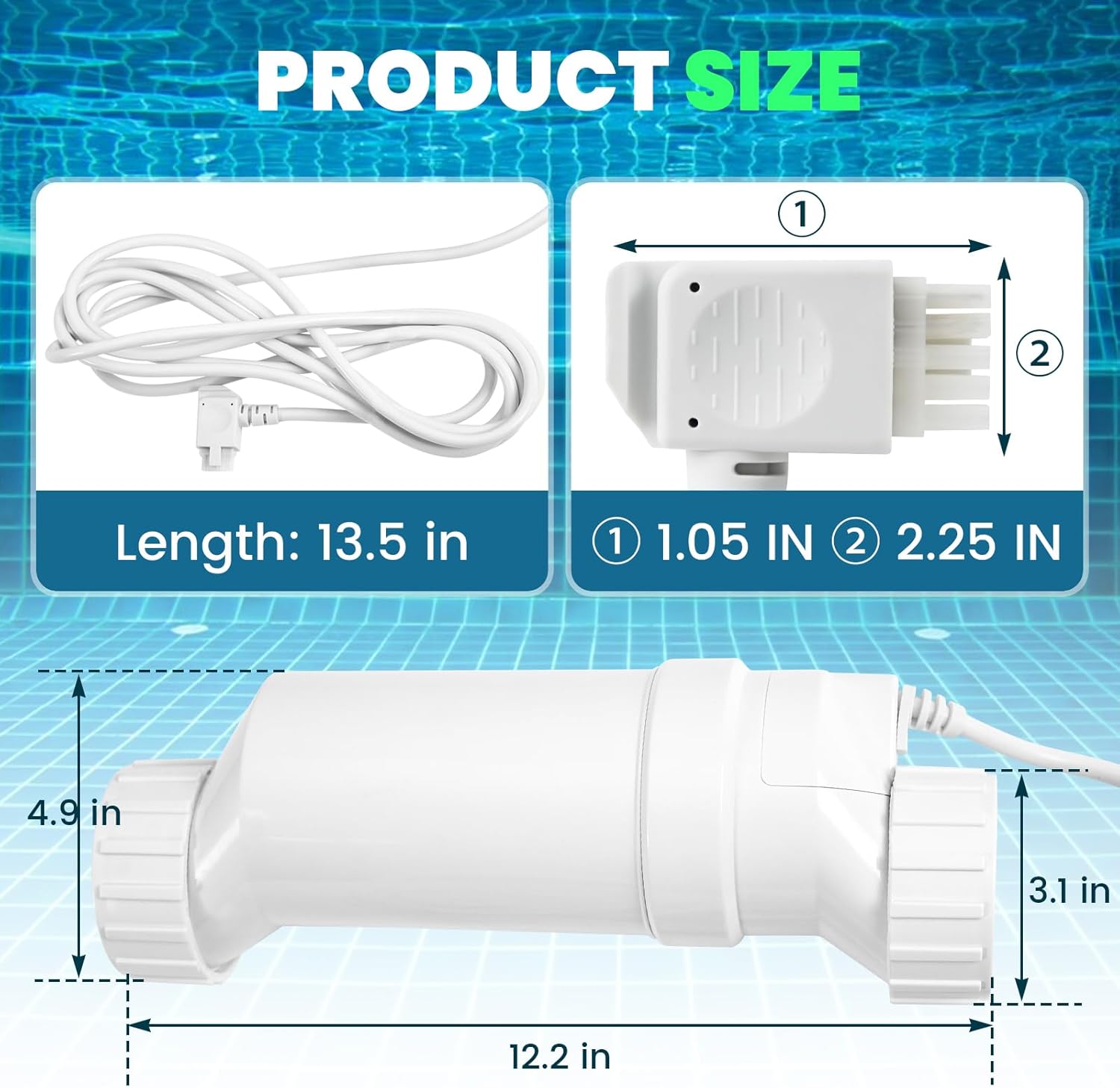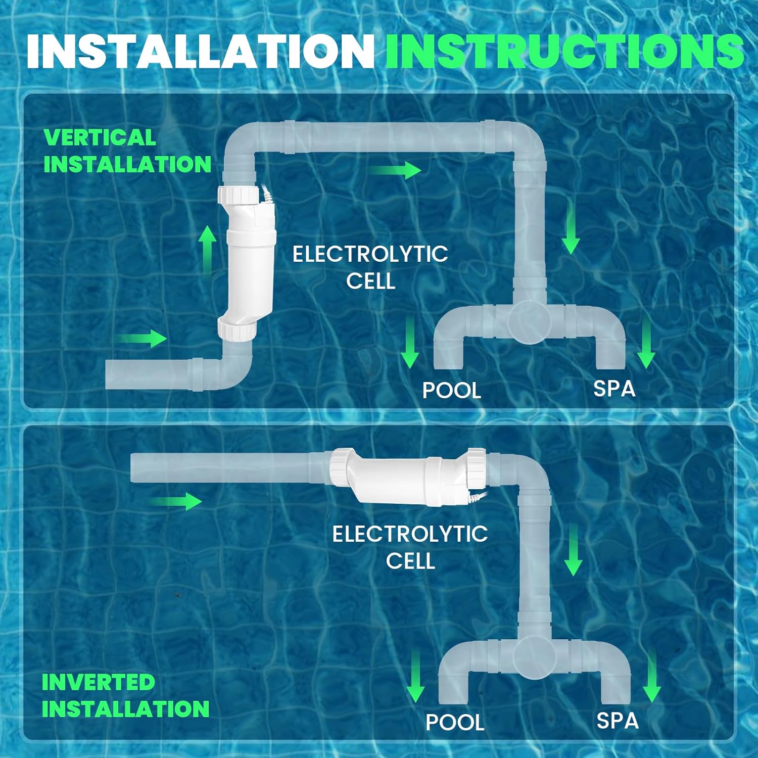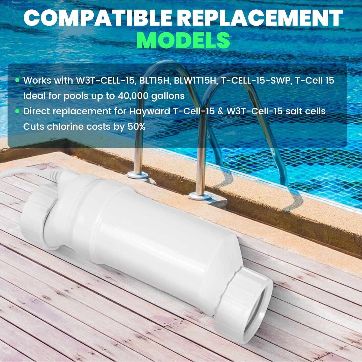 Salt Cell T-15 Replacement, Salt Water Pool System Compatible with Hayward W3T-CELL-15, Fits Up to 40,000 Gallons In-Ground Pools