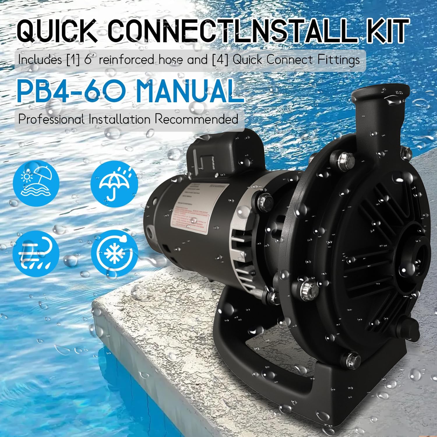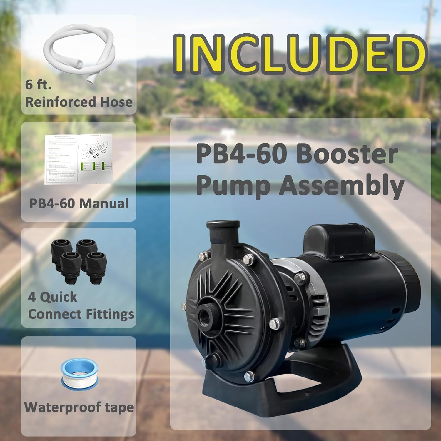 PB4-60 Booster Pump Kit 3/4 HP Replacement for Polaris PB4-60 Pool Booster Pump,Compatible with Polaris 180/280/380/480/3900,Pentair, Hayward or Letro Legend Pressure Side Pool Cleaners, 115V 60HZ