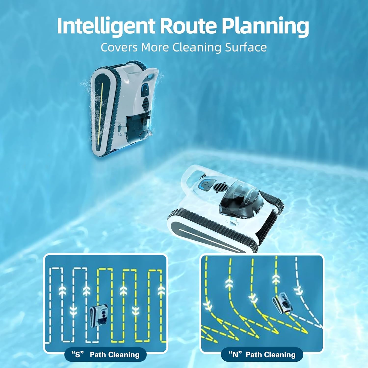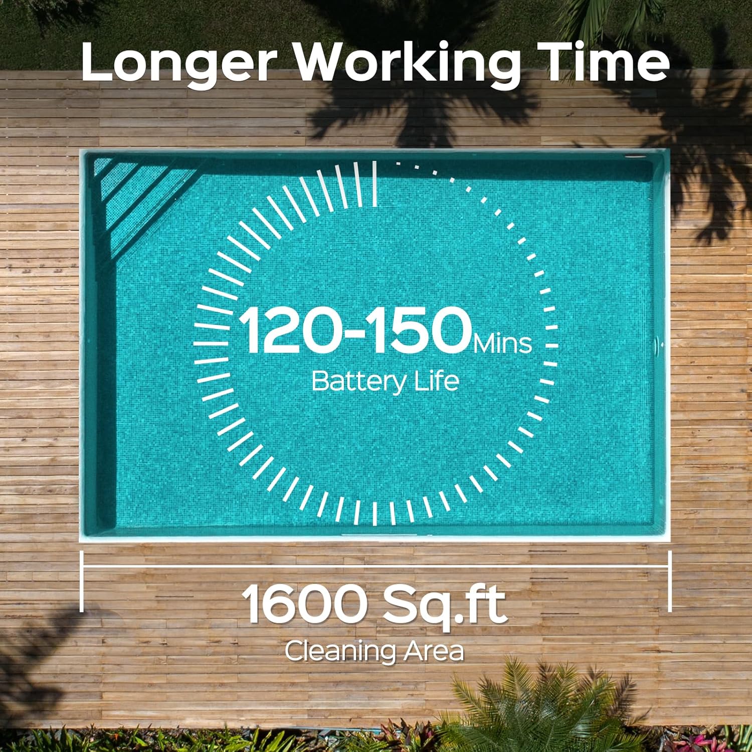 Pool Vacuum for Inground Pools, Cordless Robotic Pool Cleaner, Wall and Waterline Cleaning, Intelligent Route Planning, 150 min Runtime, for Pools up to 1,600 Sq.ft