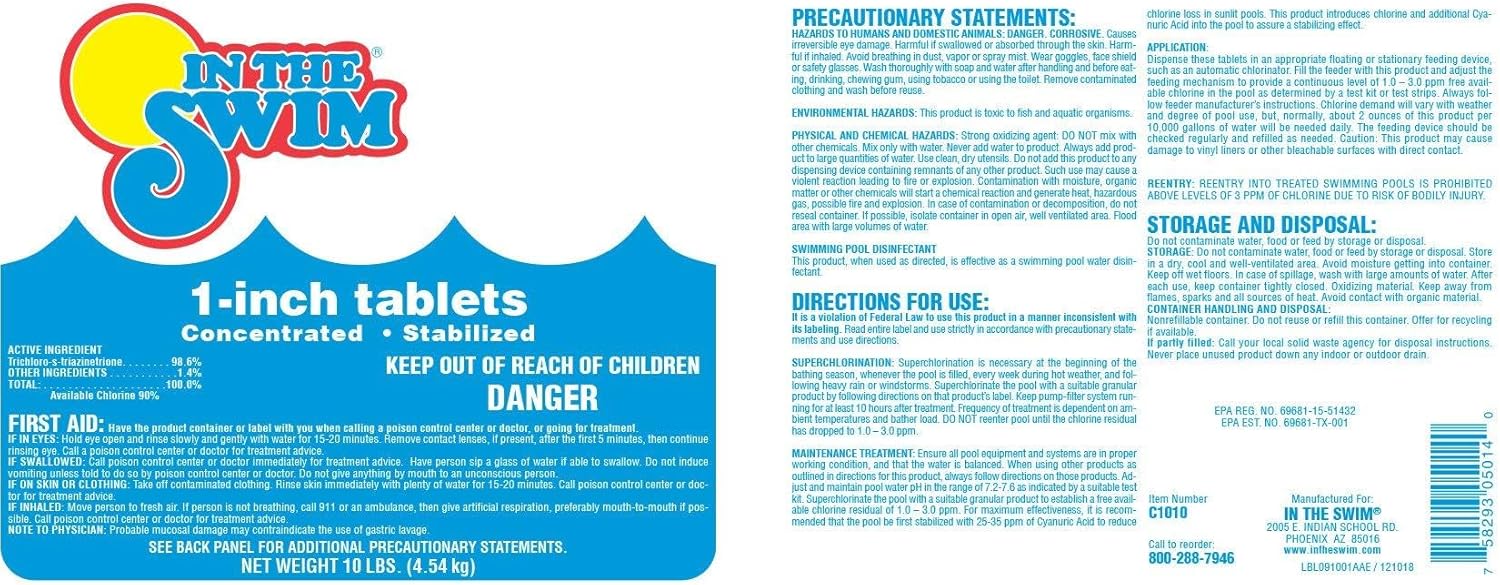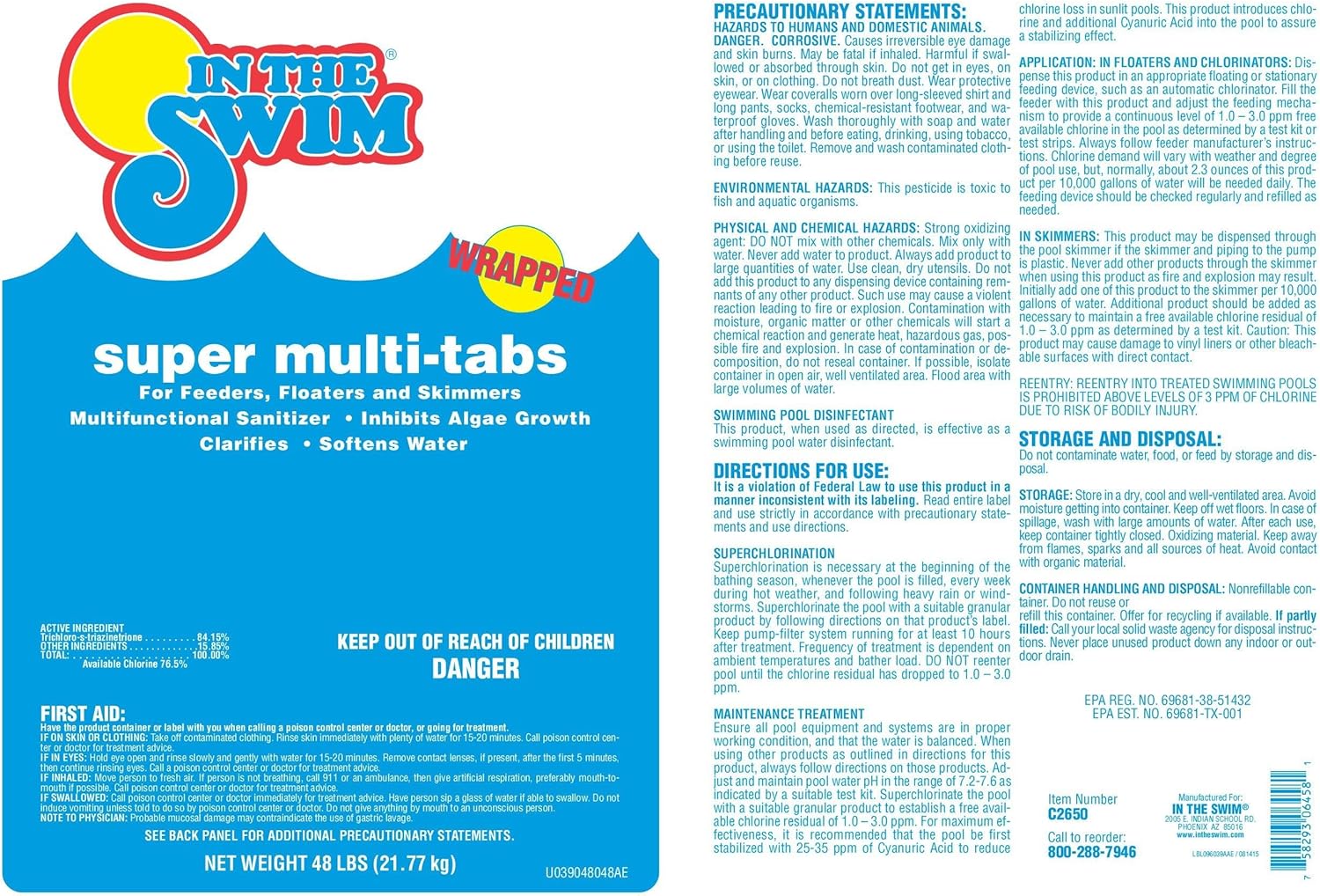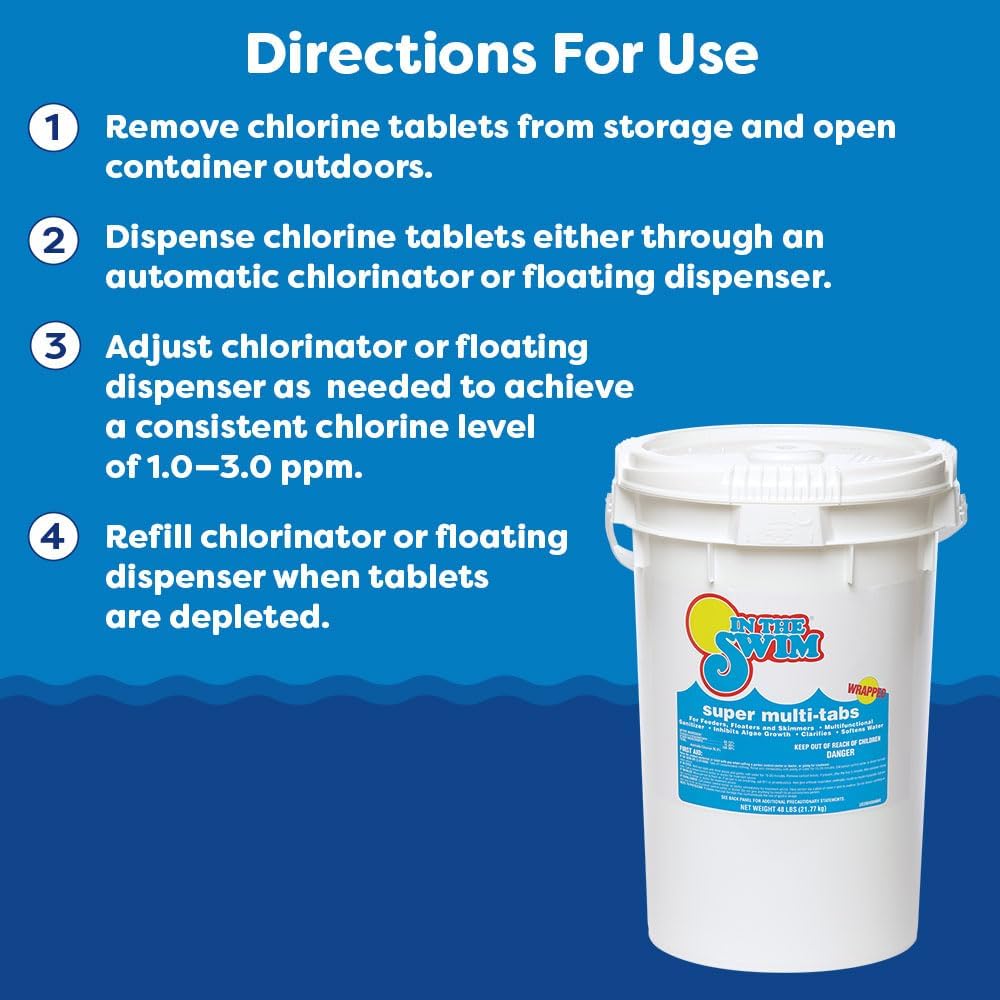 In The Swim 1 Inch Stabilized Chlorine Tablets for Sanitizing Swimming Pools - Fast Dissolving - 90% Available Chlorine - Tri-Chlor - 50 Pounds