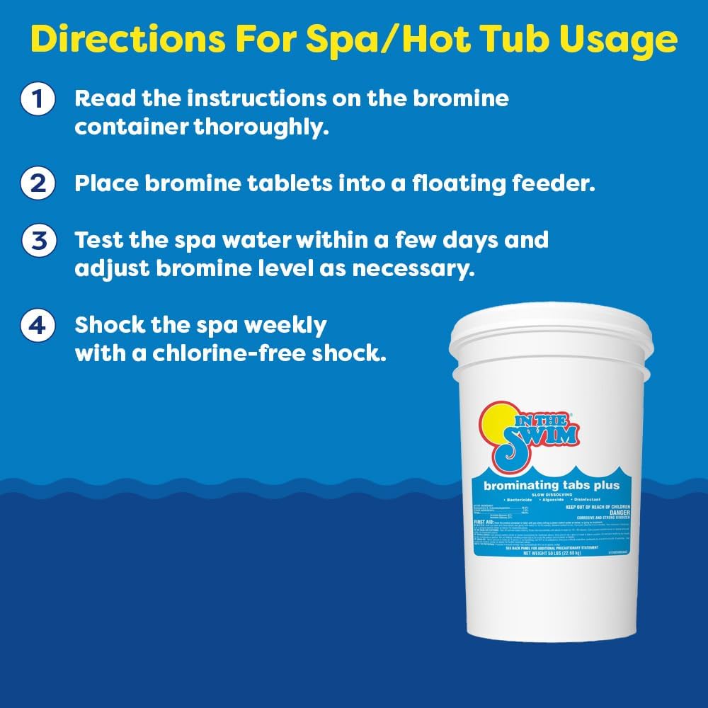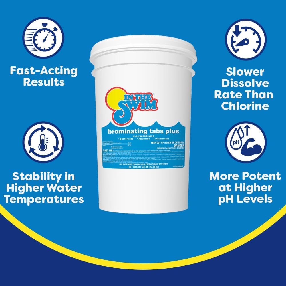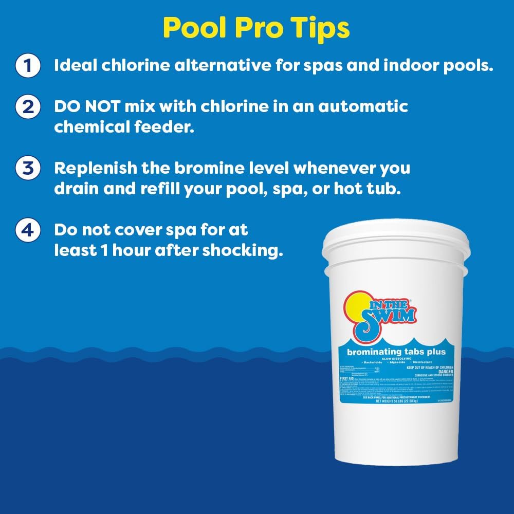In The Swim 1 Inch Bromine Plus Tablet Sanitizer for Spas, Hot Tubs, or Swimming Pools - Pre-Stabilized, Low Odor, Chlorine Alternative - 50 Pounds