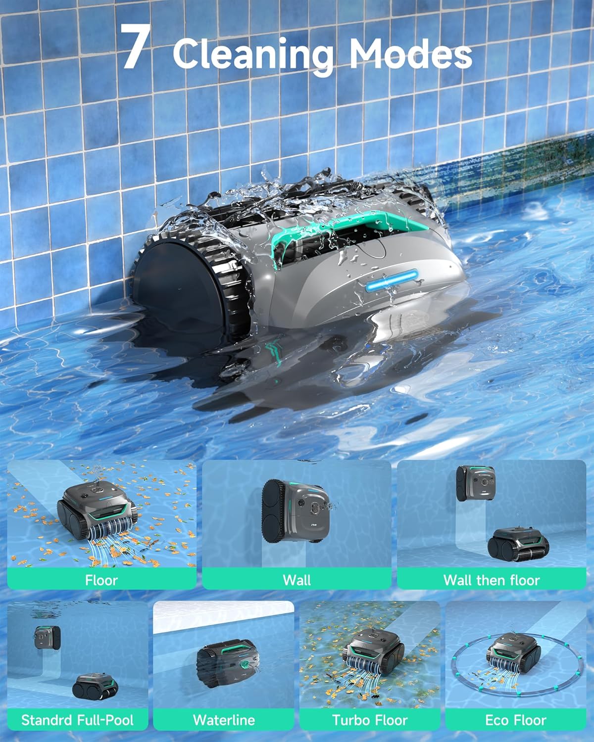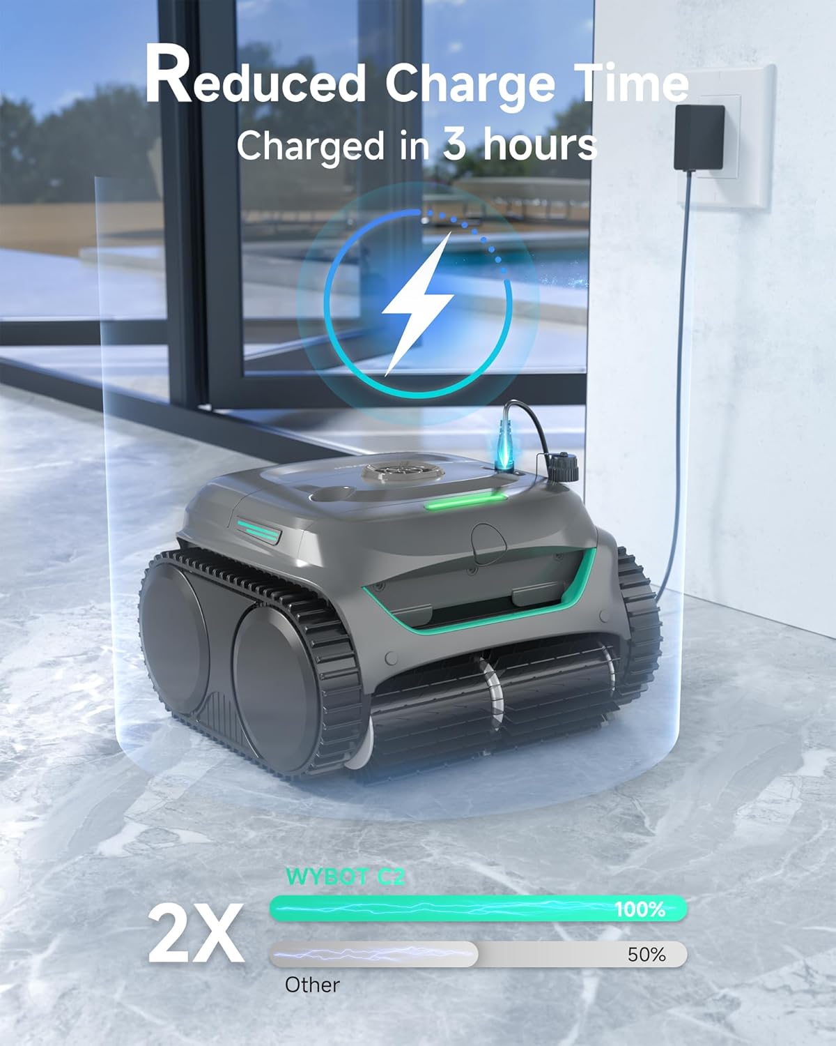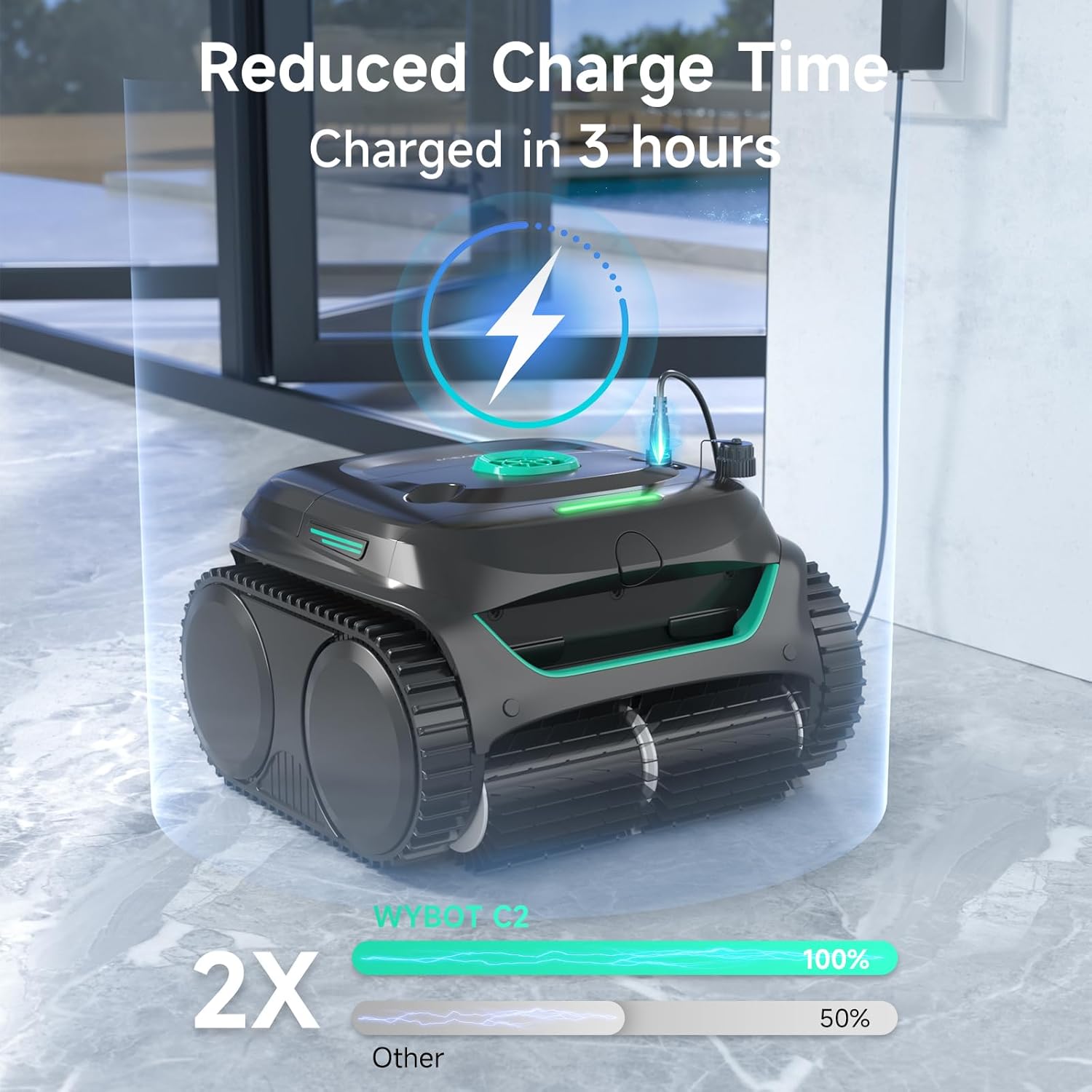(2025 New) WYBOT C2 SE Cordless Robotic Pool Cleaner, up to 1614 Sq.ft, 150 mins, Pool Robot Vacuum for Inground Pools with Ultra-fine Filter, Triple-Motors, 7 Cleaning Modes, App Control