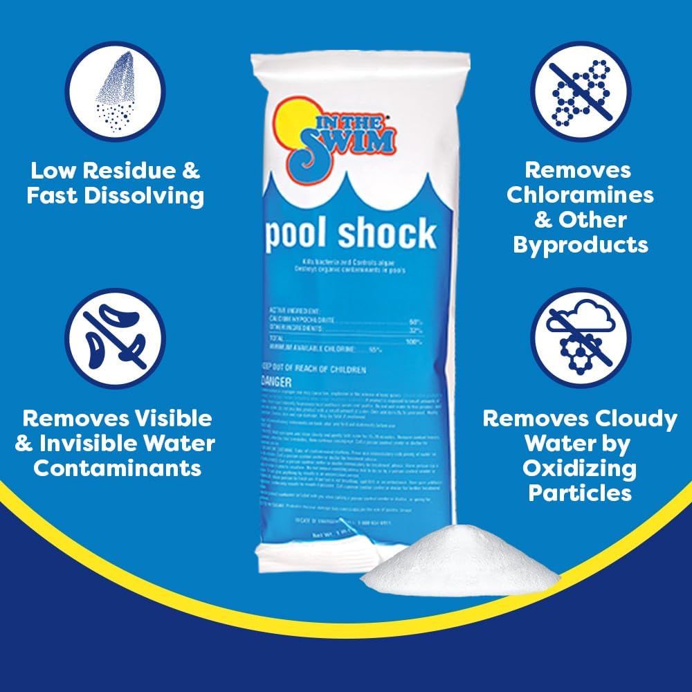 In The Swim Chlorine and Shock Bundle for Sanitizing Swimming Pools – Includes 50 Pound Bucket of 3 Inch Stabilized Chlorine Tablets and 24 x 1 Pound Bags of 68% Cal-Hypo Pool Shock