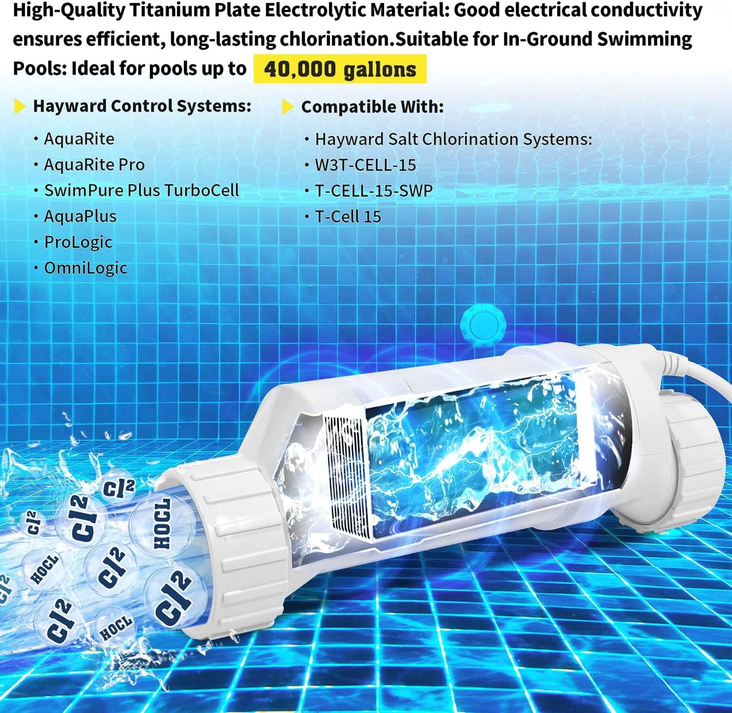 T-Cell-15 Salt Chlorinator Replacement,High-Performance 40,000 Gallon Cell for In-Ground Pools,Compatible with Hayward Turbo Cell T-15/BLT15H Systems