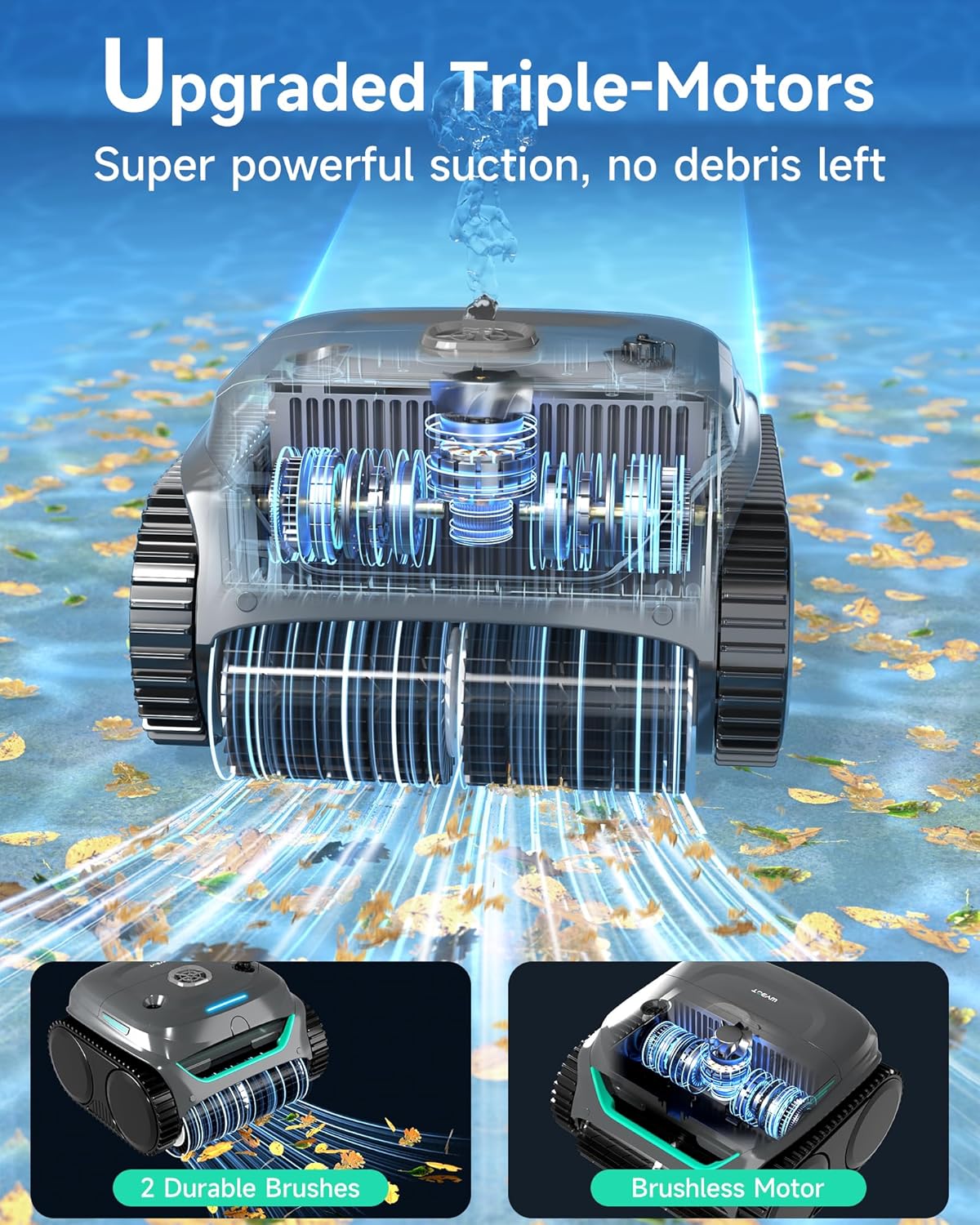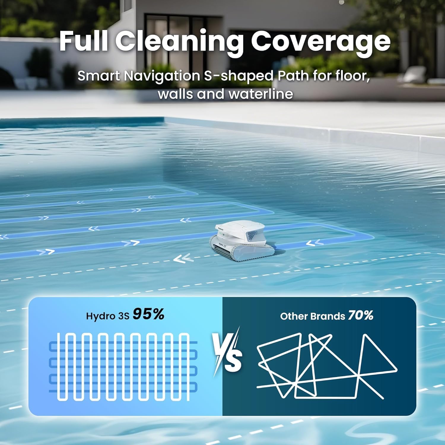 2025 Hydro3 Robotic Pool Cleaner for Inground/Above Ground Pools, 150W Cordless Pool Vacuum, Max 200min Runtime, 4.1L Filter Basket, Auto Waterline/Wall Cleaning, Max 1076 sq.ft Coverage