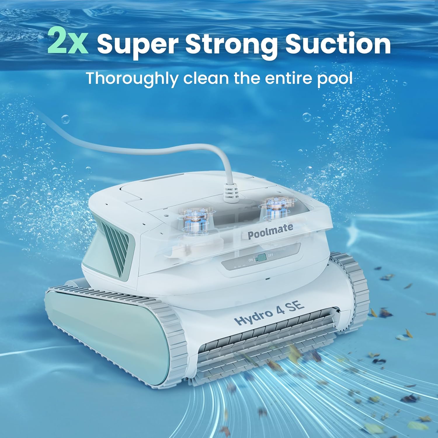 Poolmate Hydro 3 All-in-one Pool Vacuum Robot, 200mins Runtime Cordless Pool Cleaner, 2 150W Brushless Motor+Floor/Wall/Waterline Scrubber Brush,Ideal for Inground/Above-Ground Swimming Pools