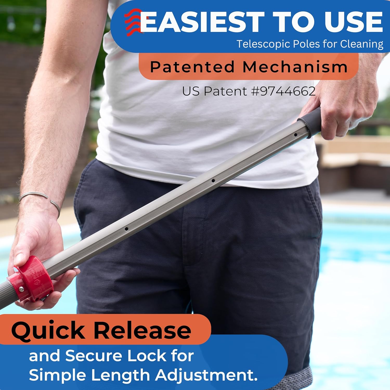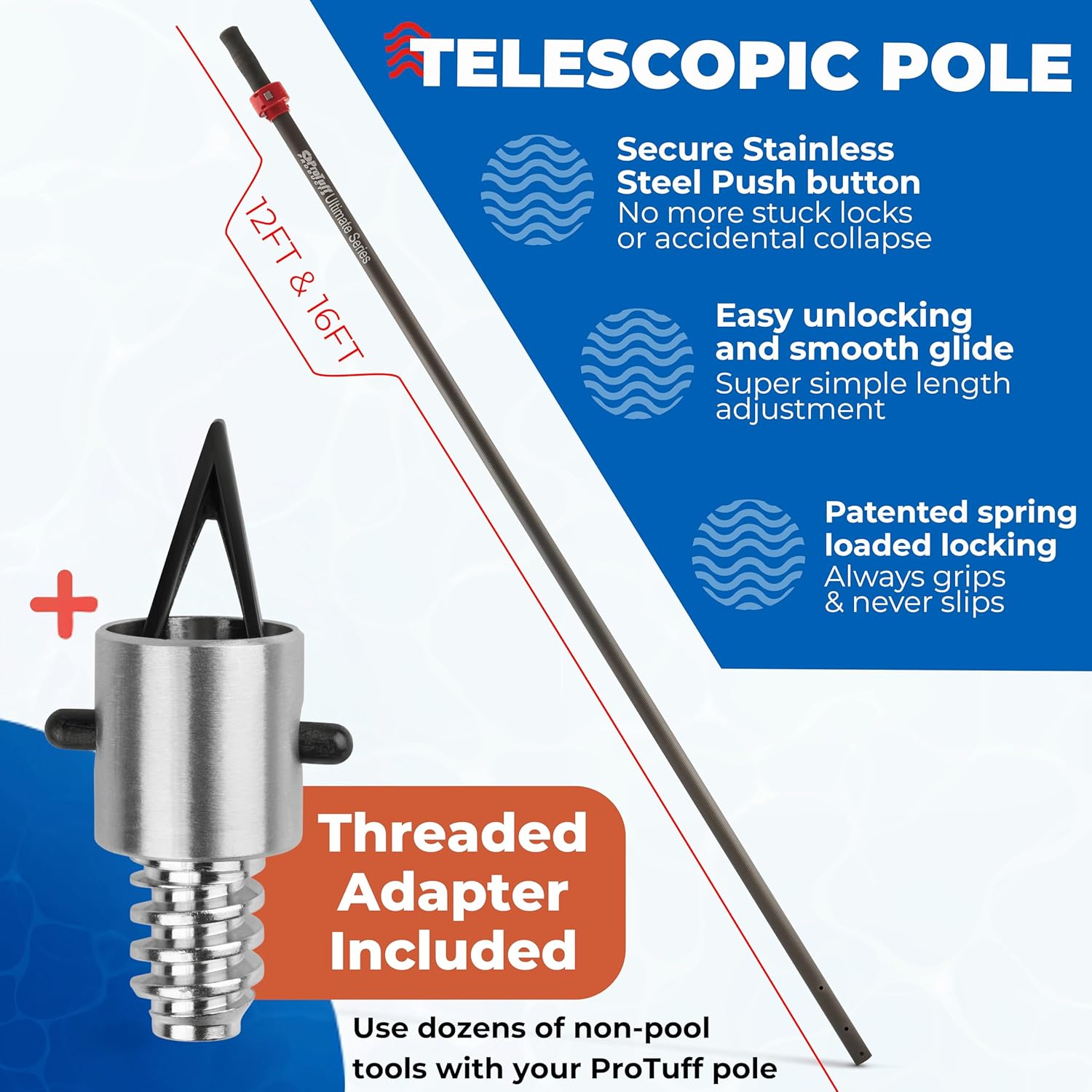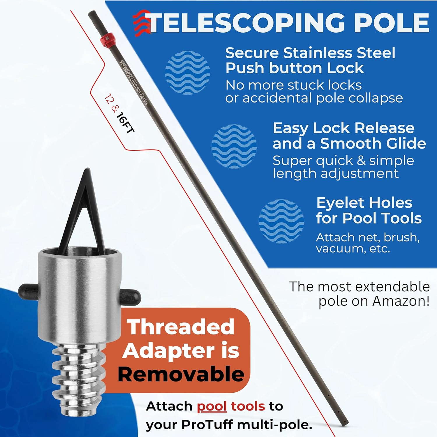 ProTuff 16ft Heavy Duty Telescopic Pool Pole – Unconditional Lifetime Replacement - Instant & Reliable Extension - Universal Fit for Nets, Skimmers, Brushes & Vacuums - Anti-Slip, Comfort Grip
