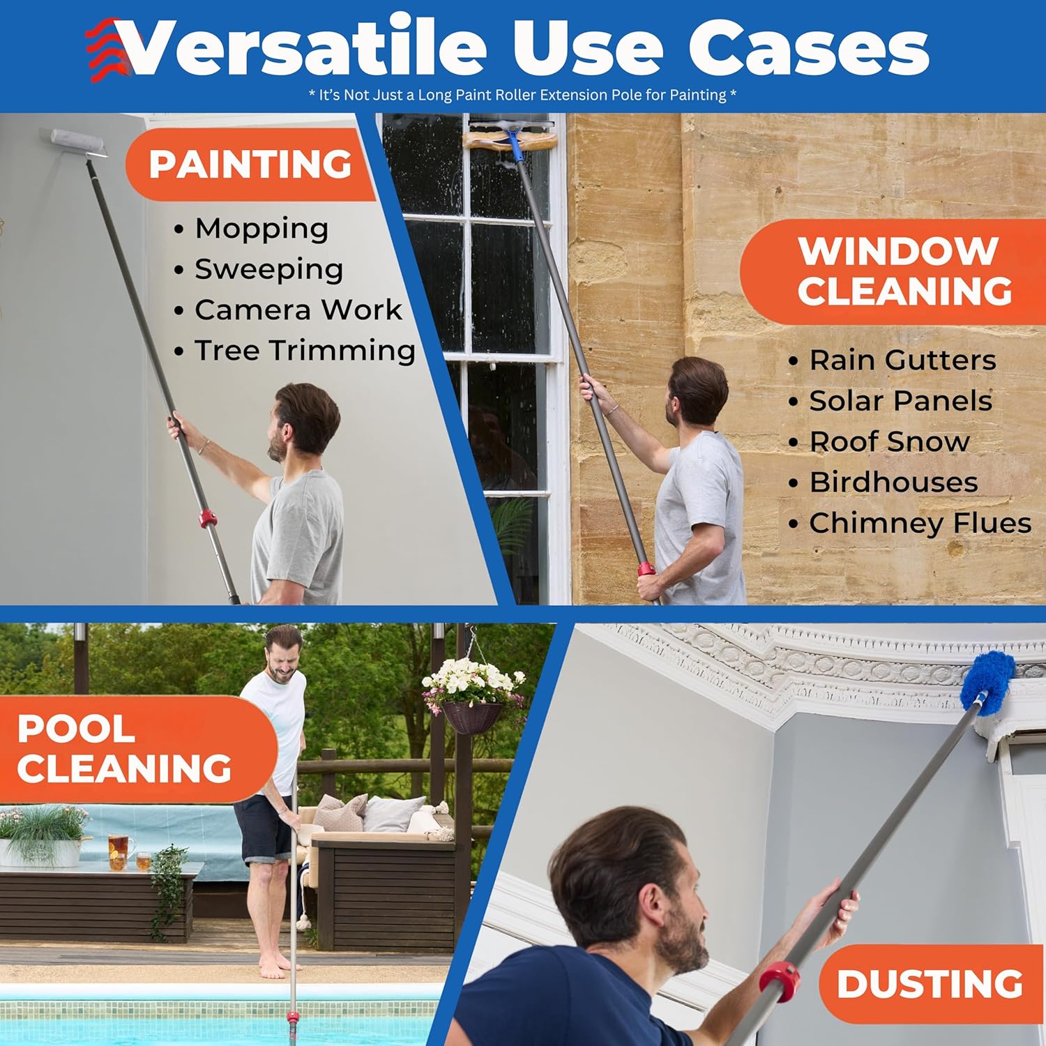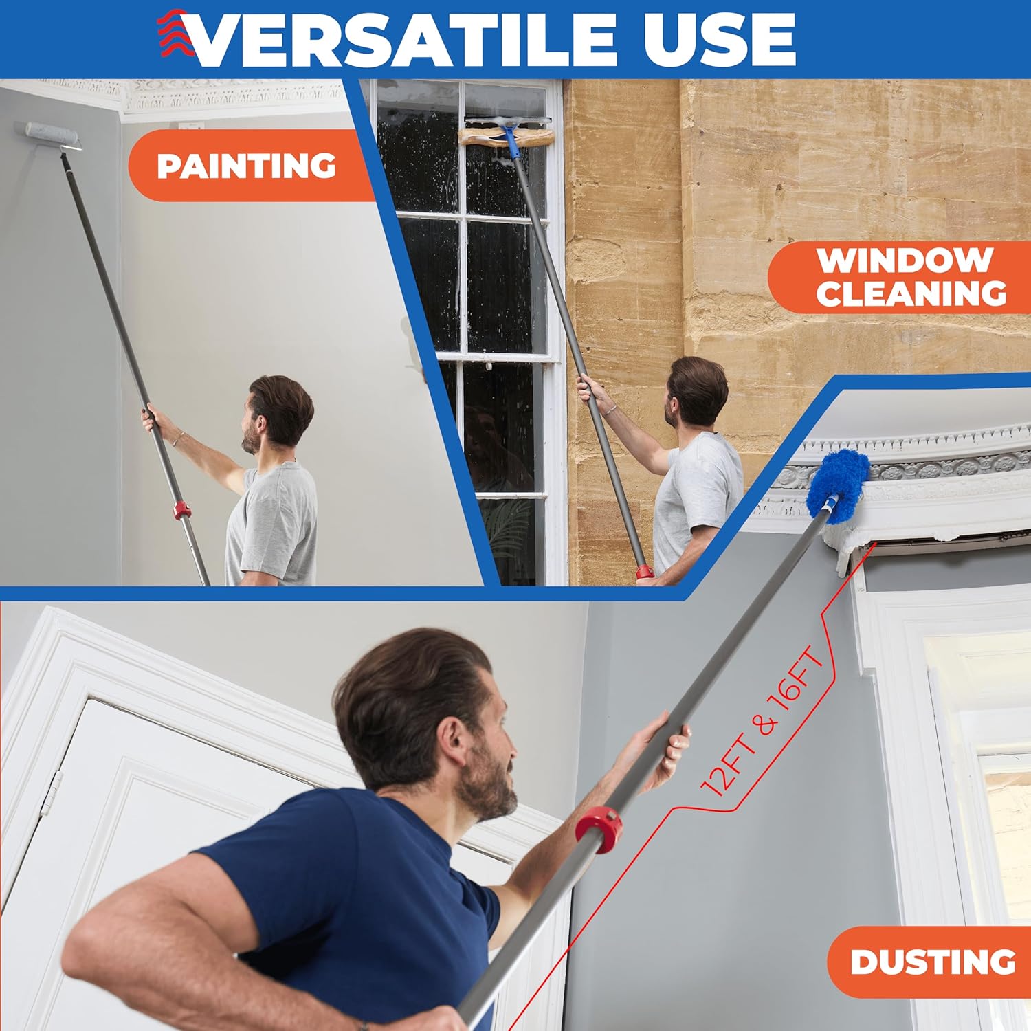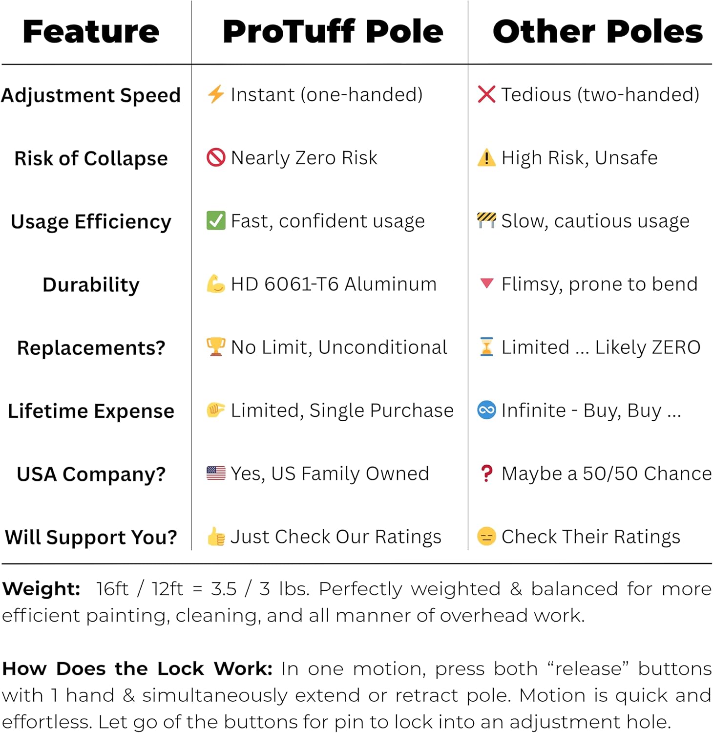 ProTuff 16ft Heavy Duty Telescopic Pool Pole – Unconditional Lifetime Replacement - Instant & Reliable Extension - Universal Fit for Nets, Skimmers, Brushes & Vacuums - Anti-Slip, Comfort Grip