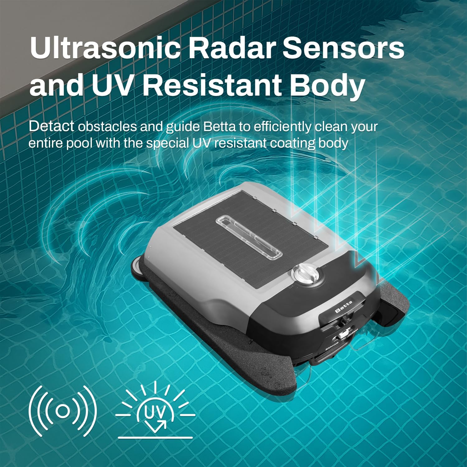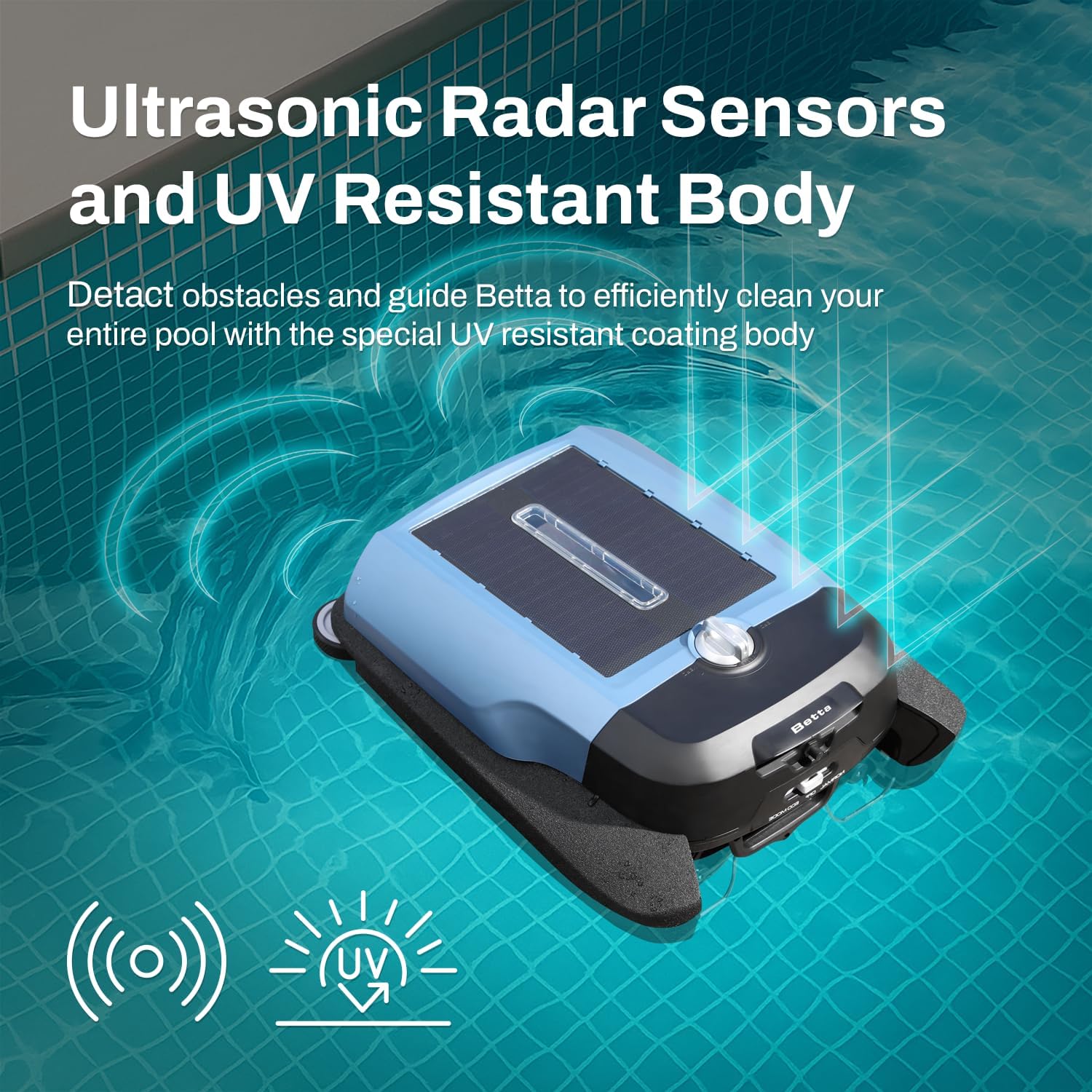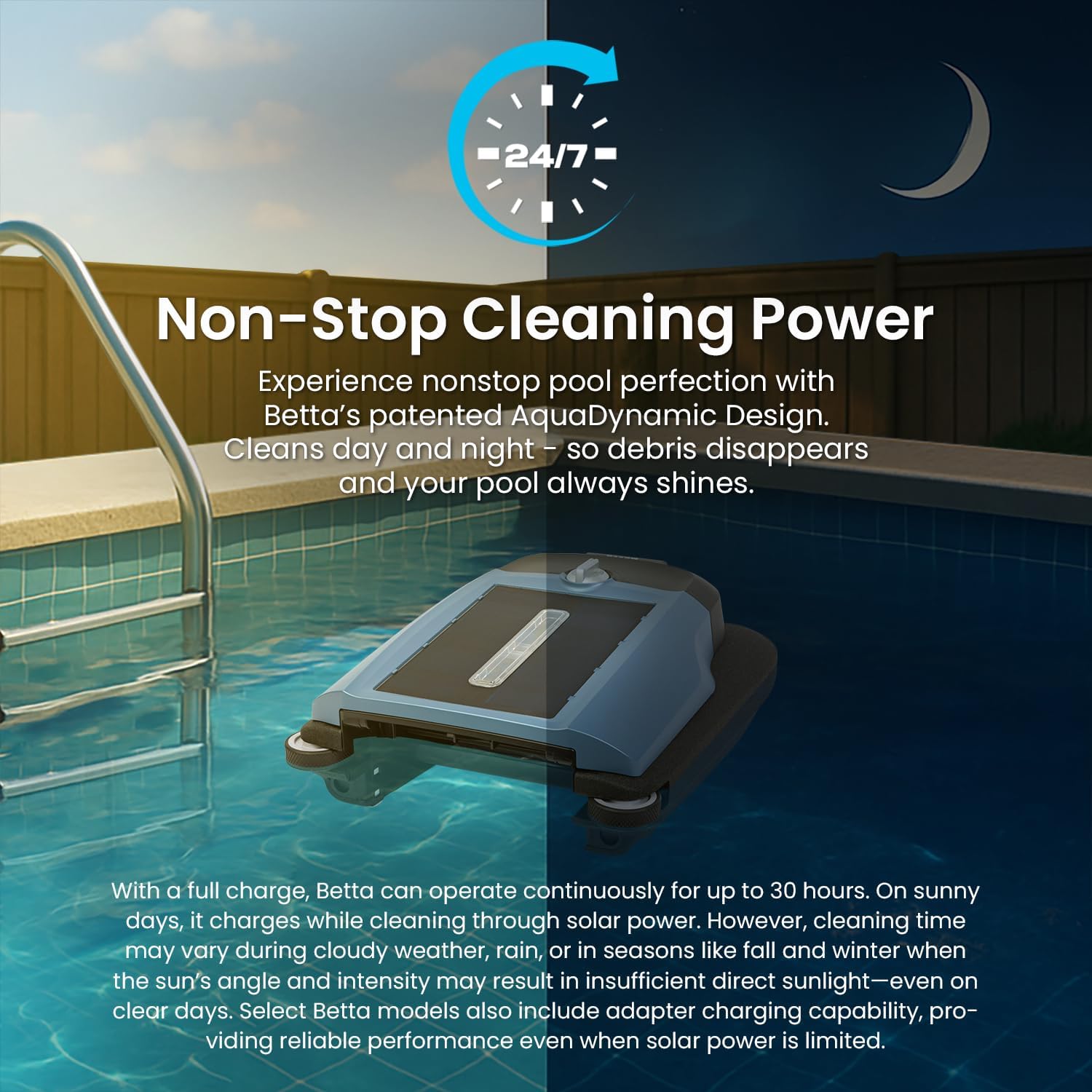 Betta Flex Solar-Powered Robotic Pool Skimmer – Cordless with Dual Cleaning Modes, Soft-Touch Pool Protection. Compatible with Infinity Edge, In-Ground & Above-Ground Pools (Blue)