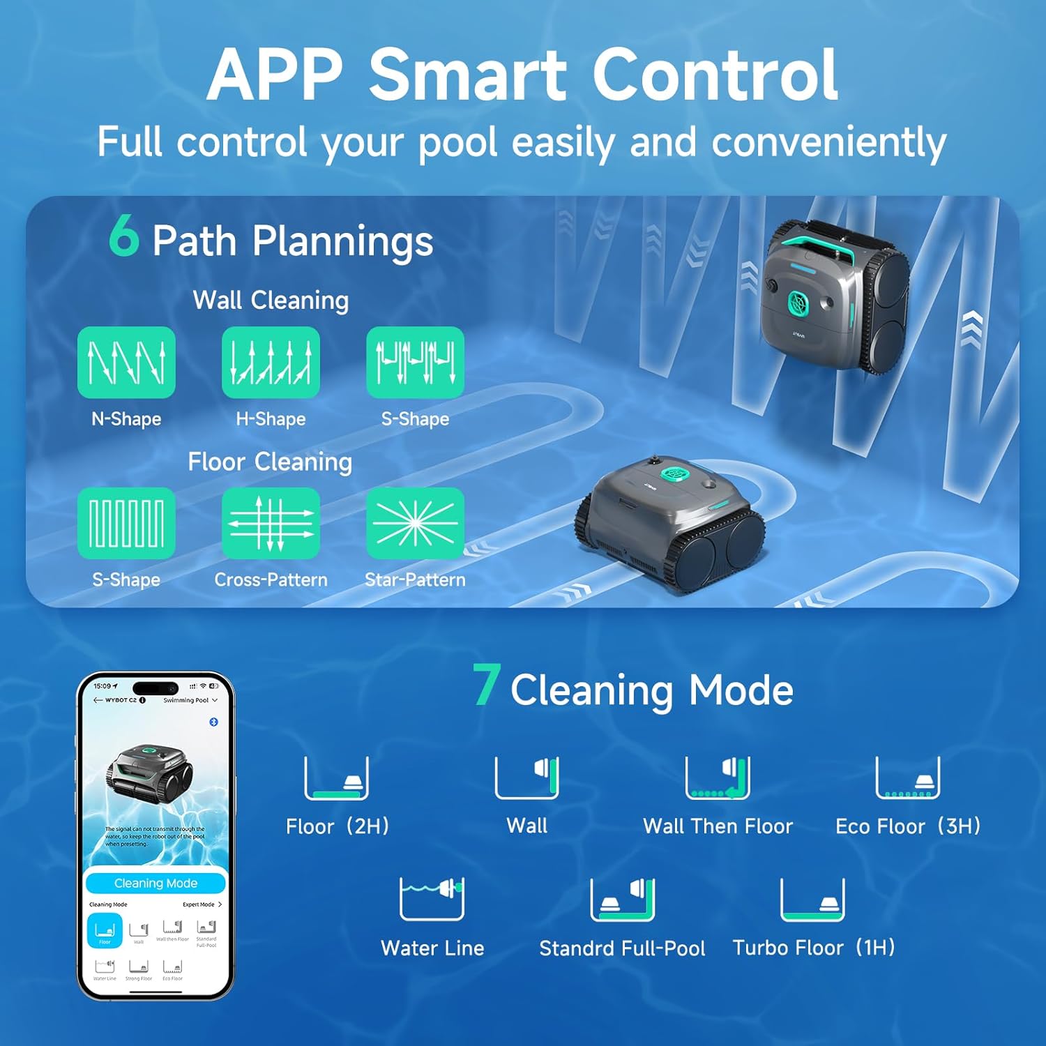 X5 Cordless Robotic Pool Cleaner, Wall & Waterline Cleaning, Smart Navigation, Smart Precision Docking™, 180Mins Runtime, 4 Cleaning Modes, Pool Vacuum for Inground Pools up to 3,229 sq.ft