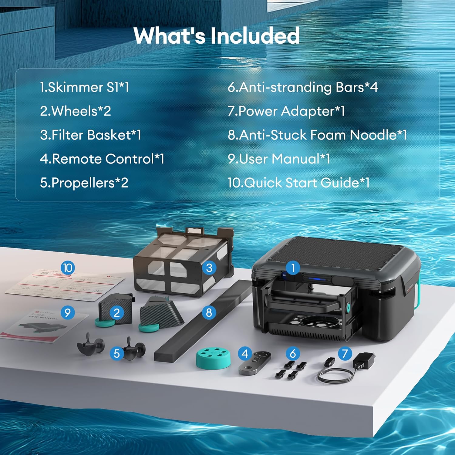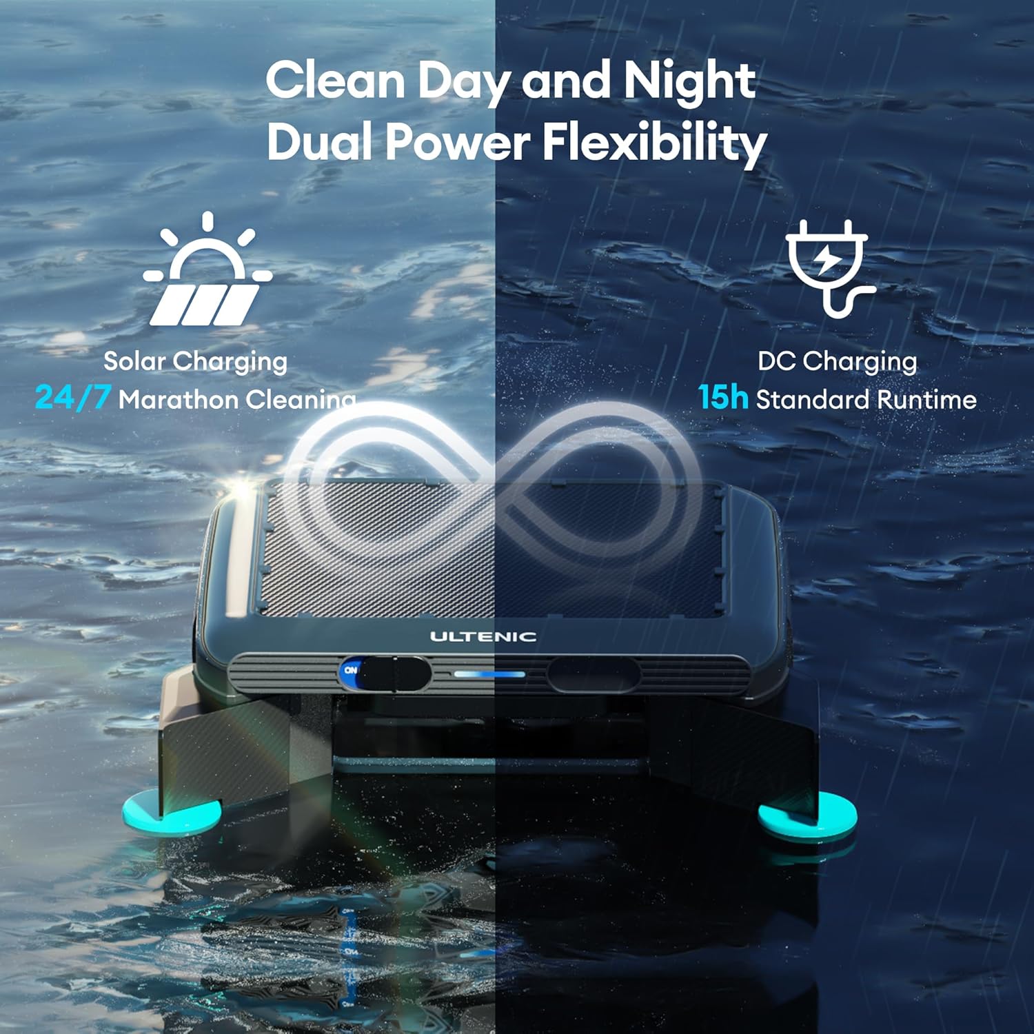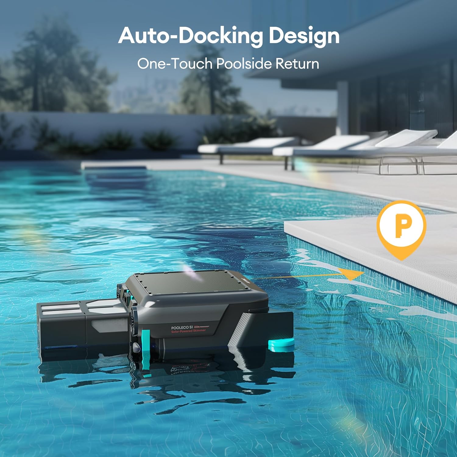 Ultenic S1 Pool Skimmer Robot, Solar Pool Skimmer for Above & In-Ground Pool with Auto-Docking Design, 24/7 Continuous Cleaning Power, 6L Capacity, Dual Protection System, Ideal for All Swimming Pool