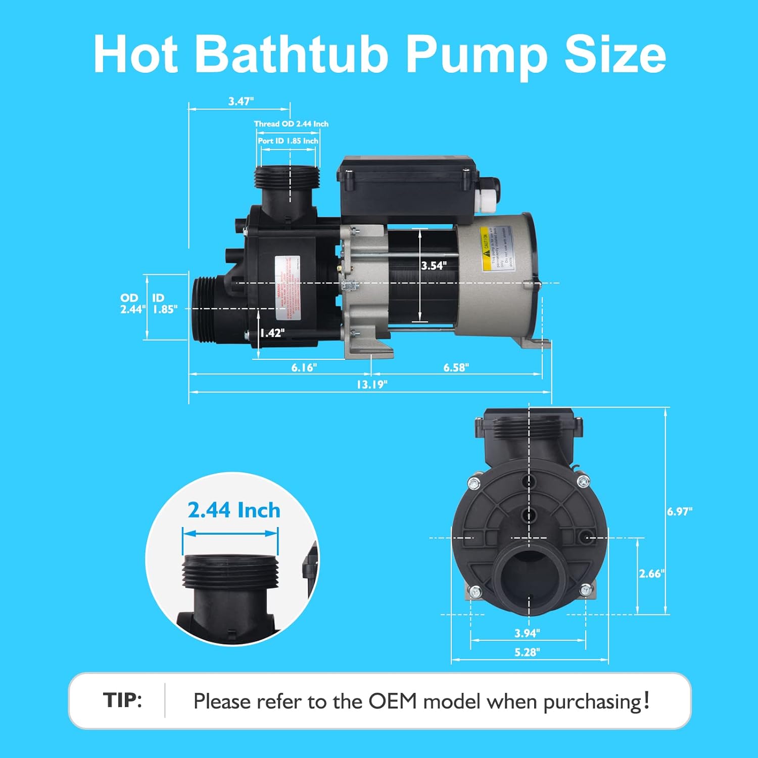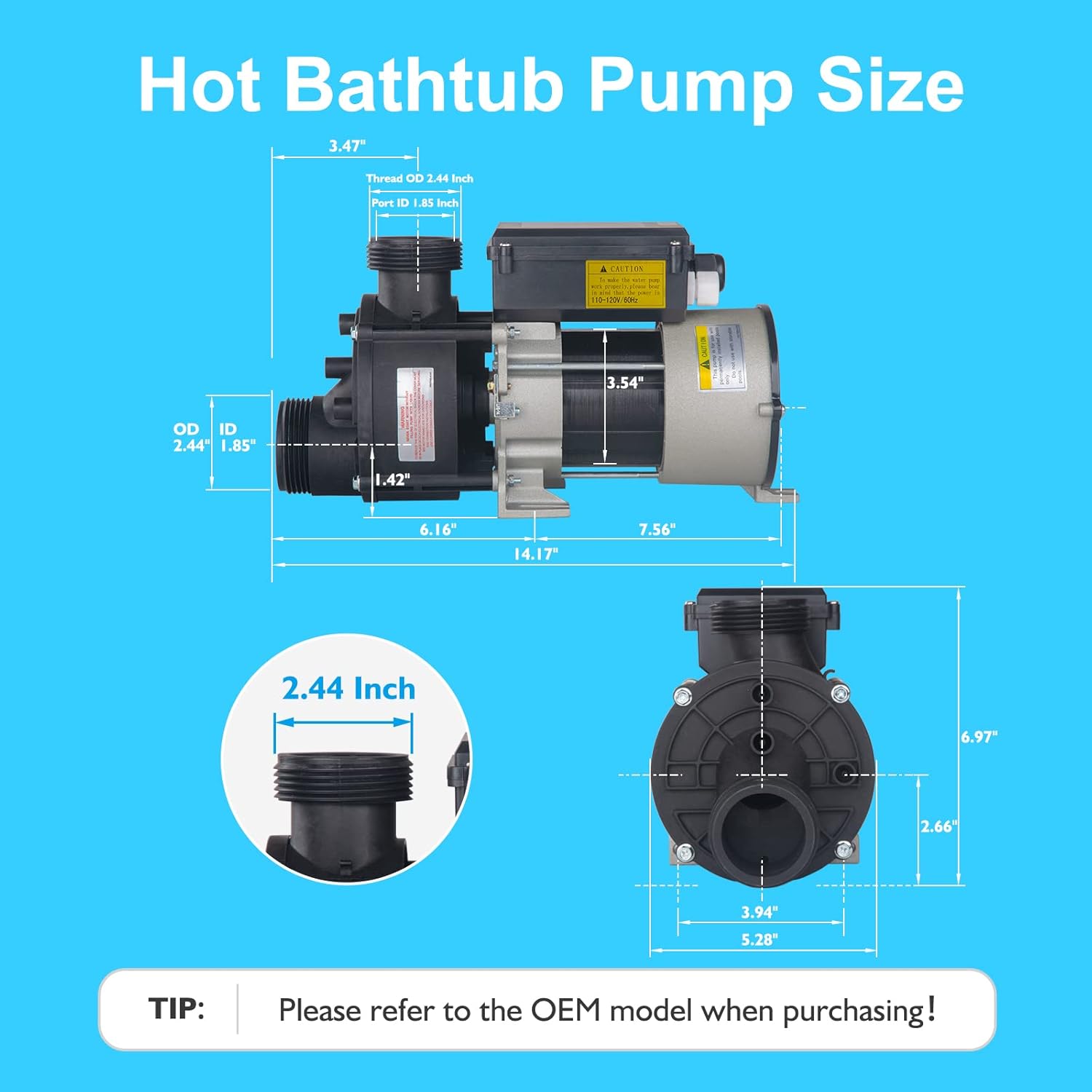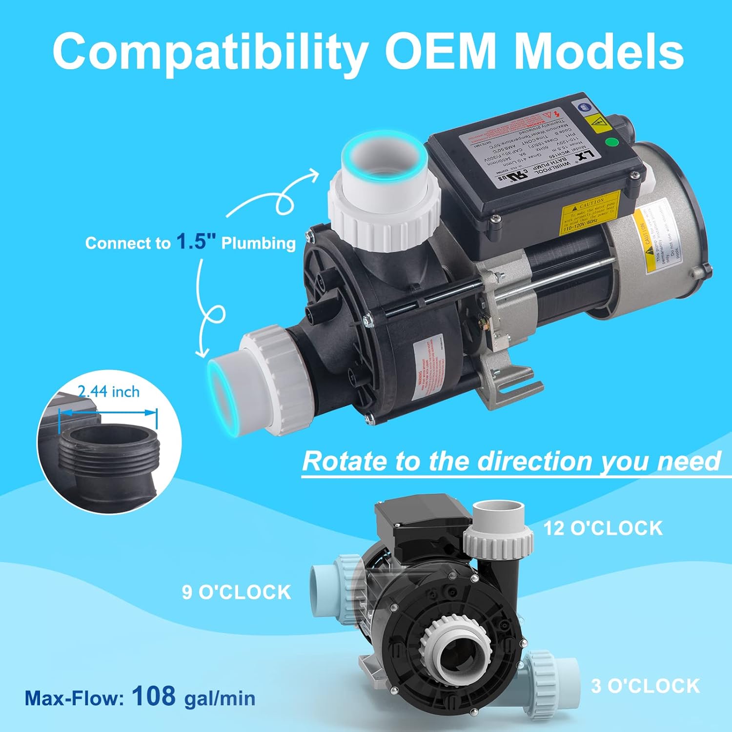2HP Hot Tub Bath Pump - LX Pump Motor 110V - 120V, 1.5" Port (WBH200)