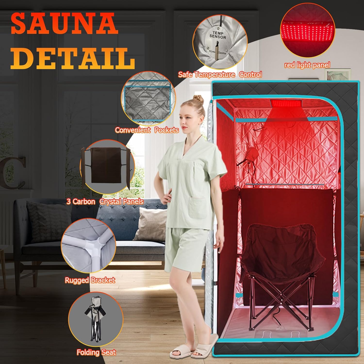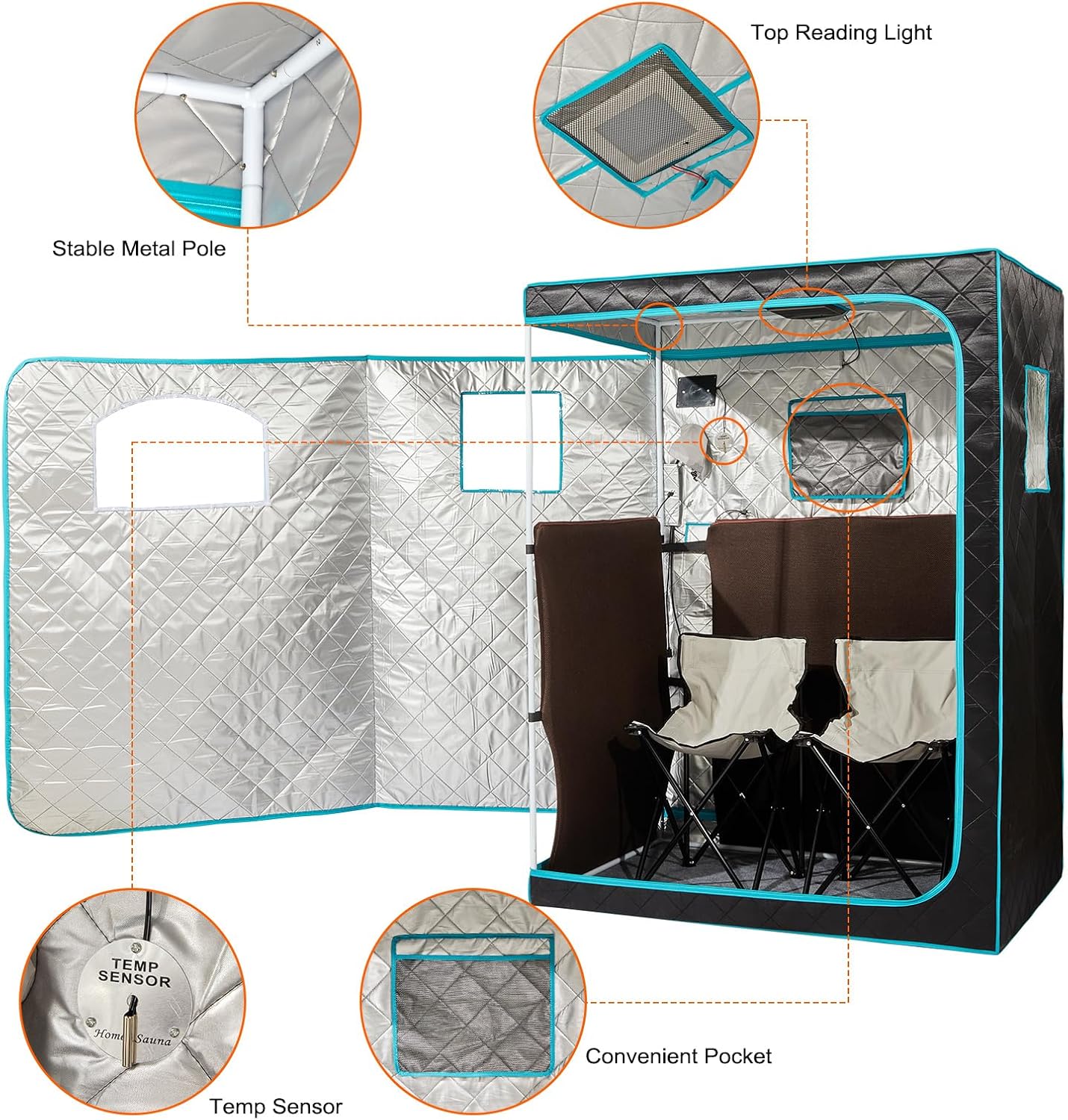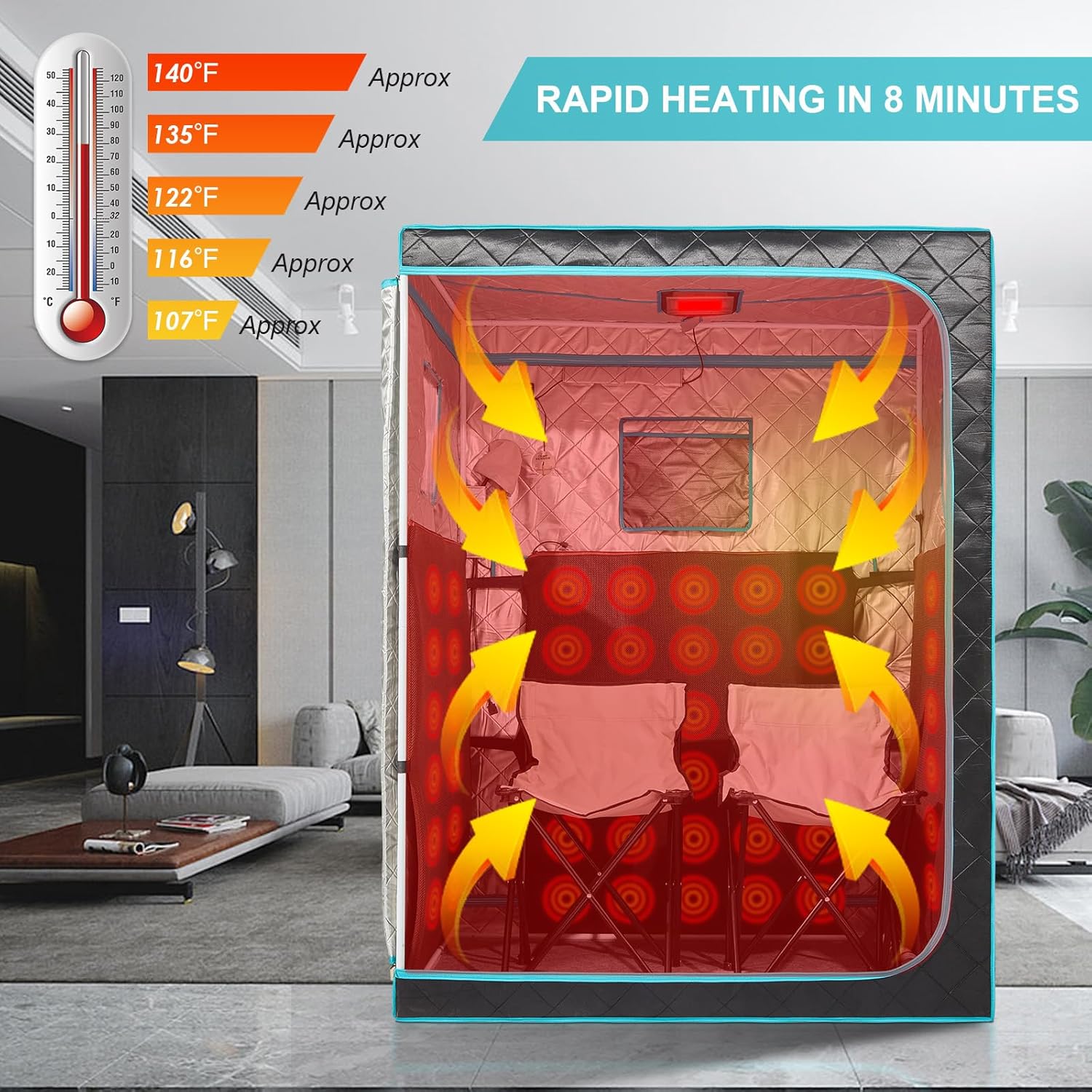 Full Size Infrared Sauna for Home, 2 Person Large Space Personal Home Sauna for Relaxation & Detox, 1500W Dry Heating Technology Indoor Saunas