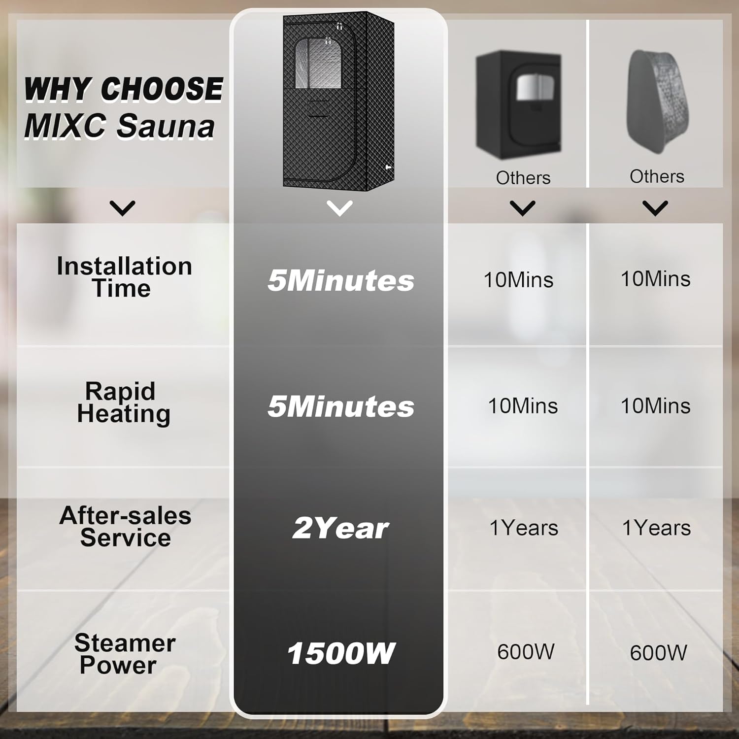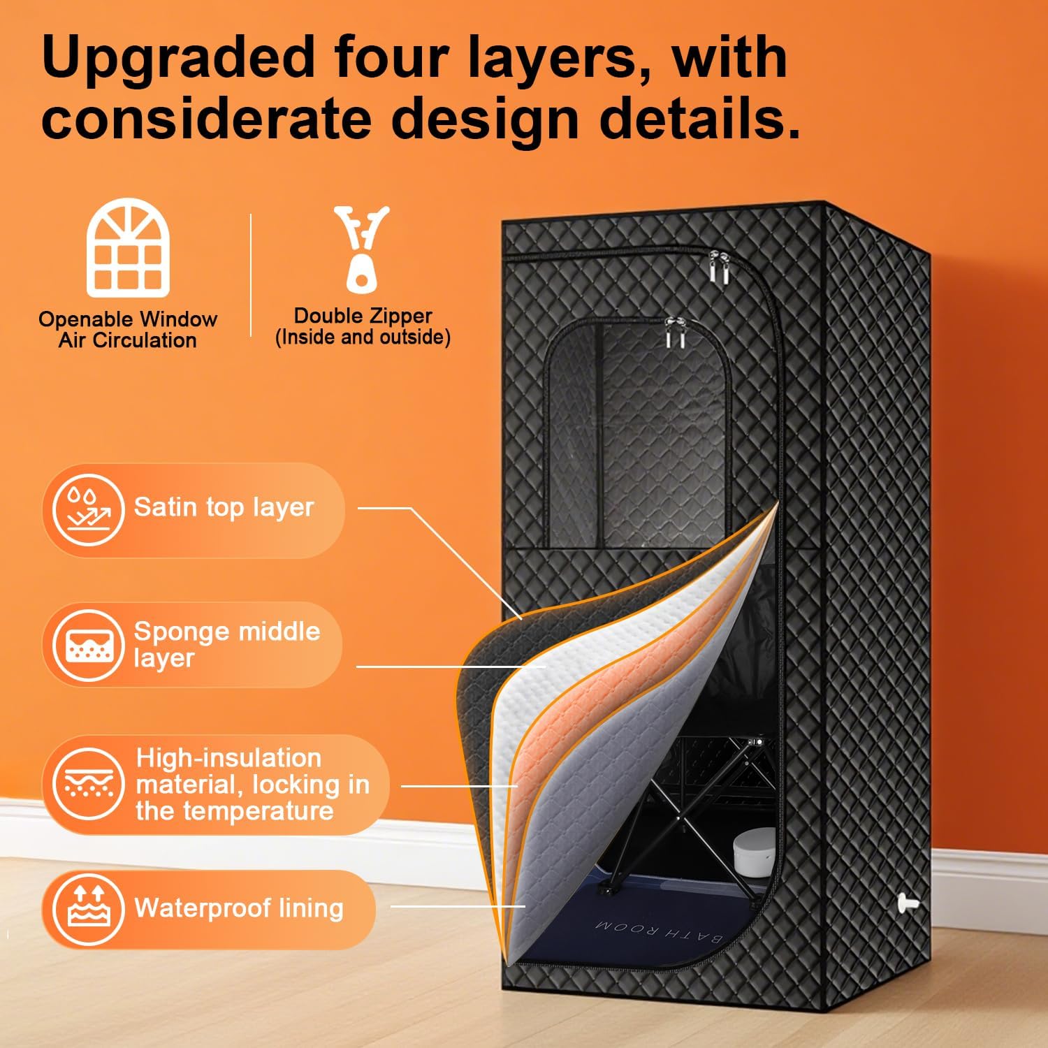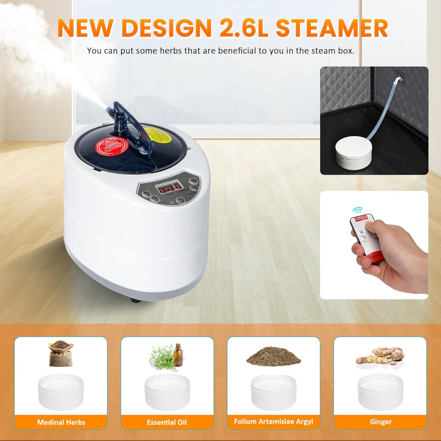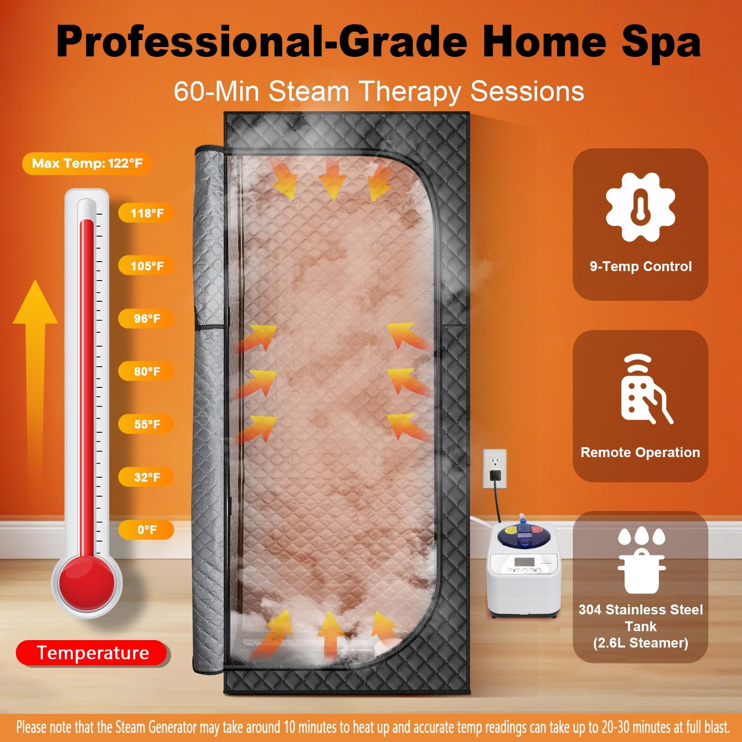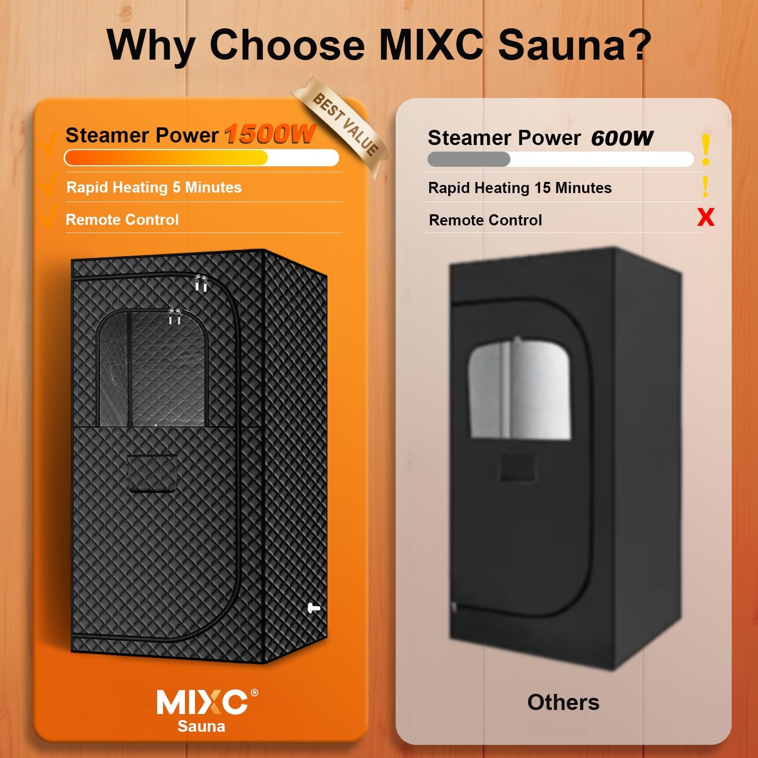 MIXC Portable Steam Sauna Box, Portable Sauna for Home, Person Sauna Tent Sauna Box at Home Spa with 2.6L & 1500W, Remote Control, Folding Chair (Single-Person Version-Black)