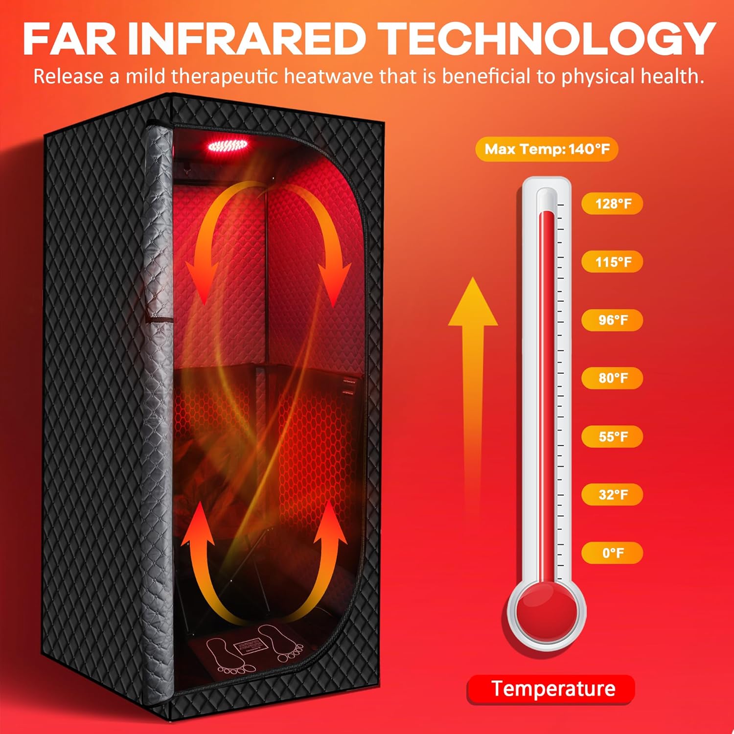 WILLOWYBE Portable Infrared Sauna for Home with 6 Heating Plates, Sauna Tent, Foot Heating Pad and LED Warm Light, Dry Infrared Sauna Box for Full Body, Personal Home Spa