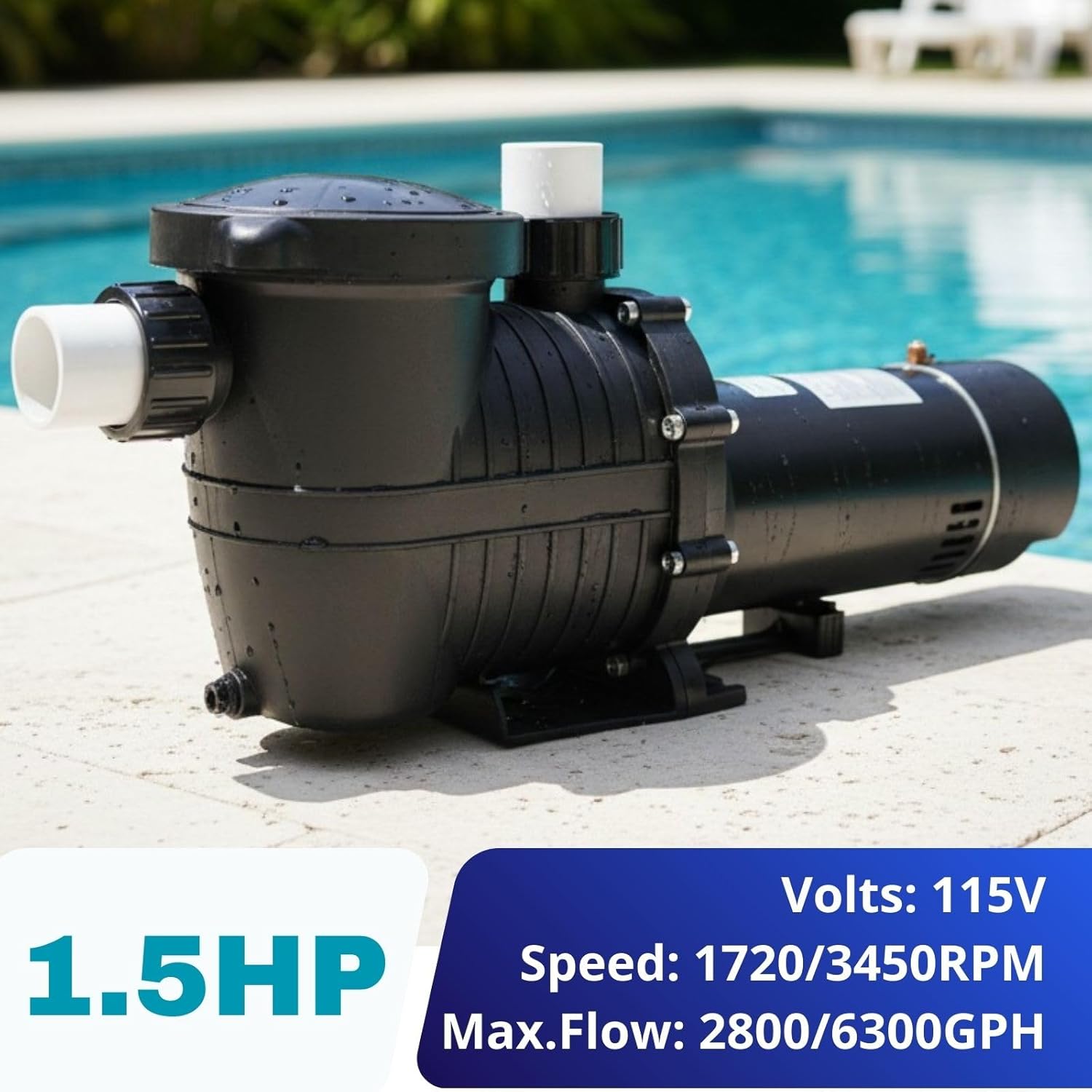 W3SP1580X15 Pool Pump 1.5 HP Replacement for Hayward PowerFlo LX Series 1.5 Horsepower Pool Pumps Single Speed Above Ground Pool Pump Square Flange 48Y Frame 115 Volts 11.2 Amps 3450RPM