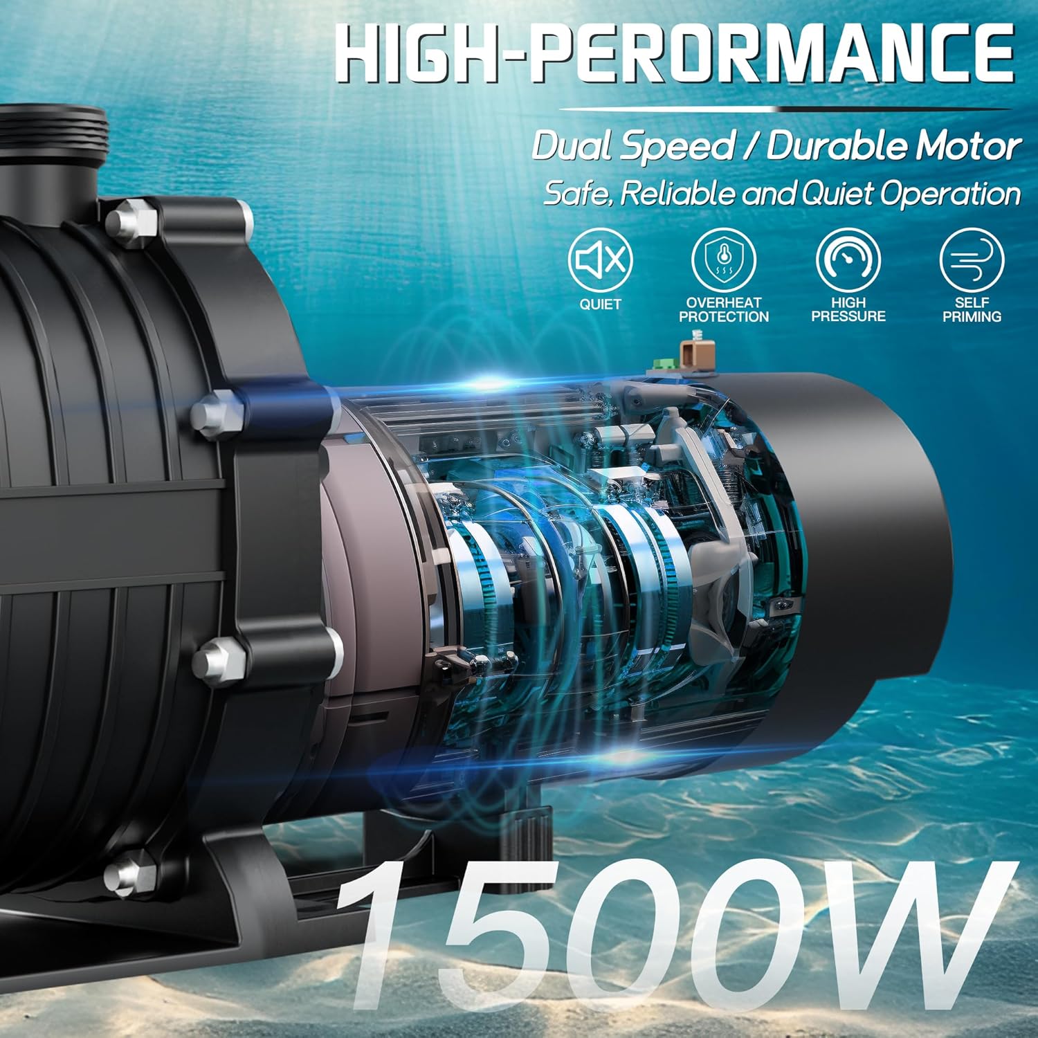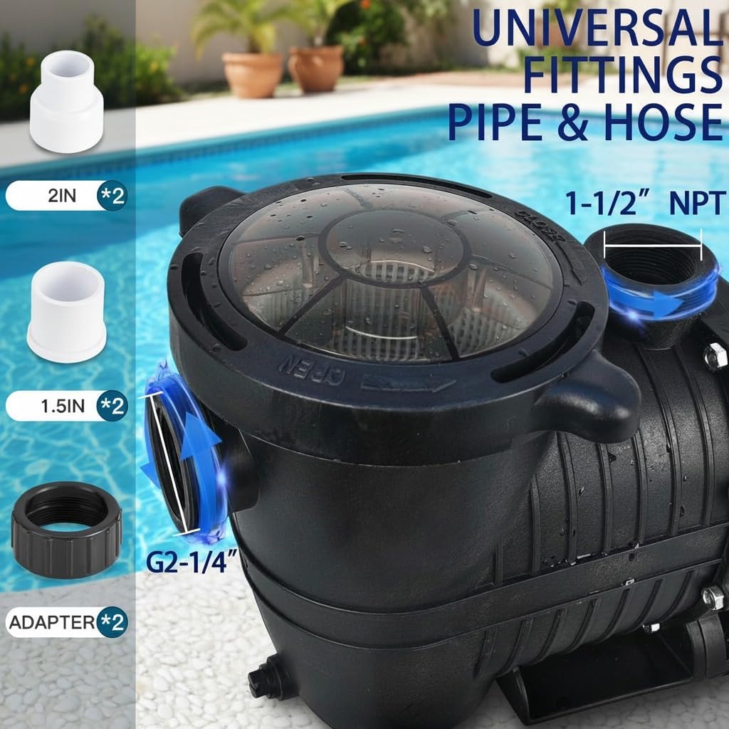 LANCHEZ In/Above Ground Pool Pump, Self Primming (Dual Speed, 2 HP, 6600 GPH, 230V, 1.5" & 2" NPT Adapter, Strainer Basket)