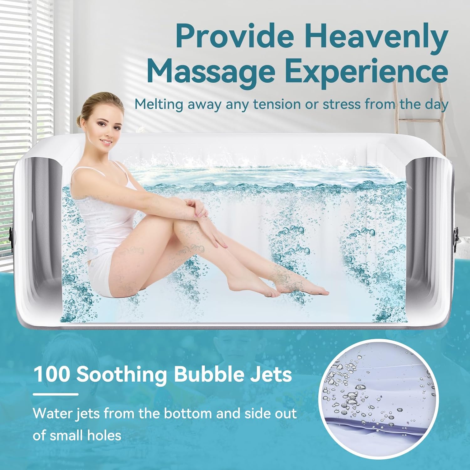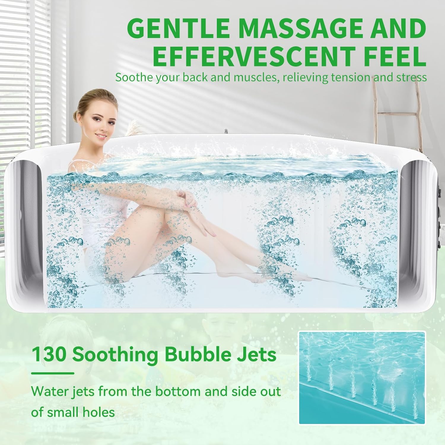 2-4 Person Inflatable Hot Tub - 73"x28" Round Portable Outdoor Spa with 146 Bubbling Jets & Smart Control,2 Contoured Headrest,Cup Holder and Cover, Blue