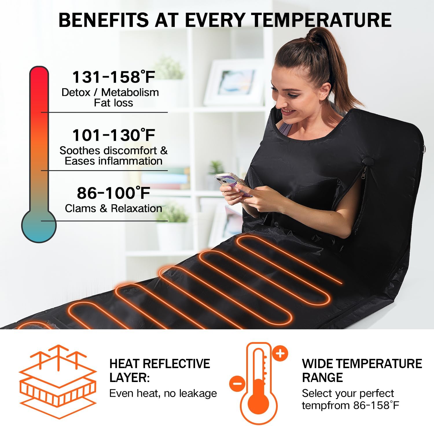 Far Infrared Sauna Blanket for Home, Portable Infrared Sauna Blanket for Therapy, Sauna Blanket for Detox, Suitable for Relaxation and Exercise Recovery, Very Low EMF