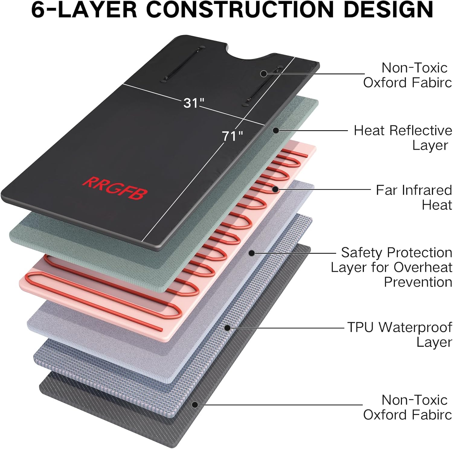 Low EMF Portable Infrared Sauna Blanket,Crystal Therapy Home Relaxation, Adjustable Timer 20-60 Min, 95-167℉ Temp Range, 6 ft x 2.95 ft, Durable PU Leather Cover