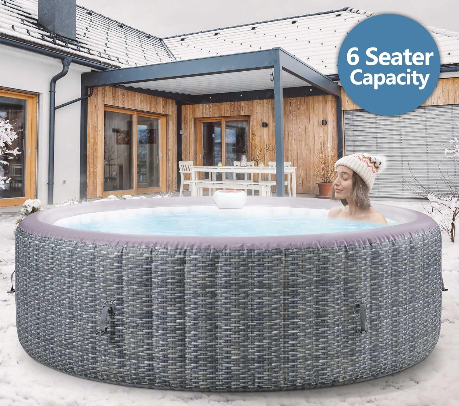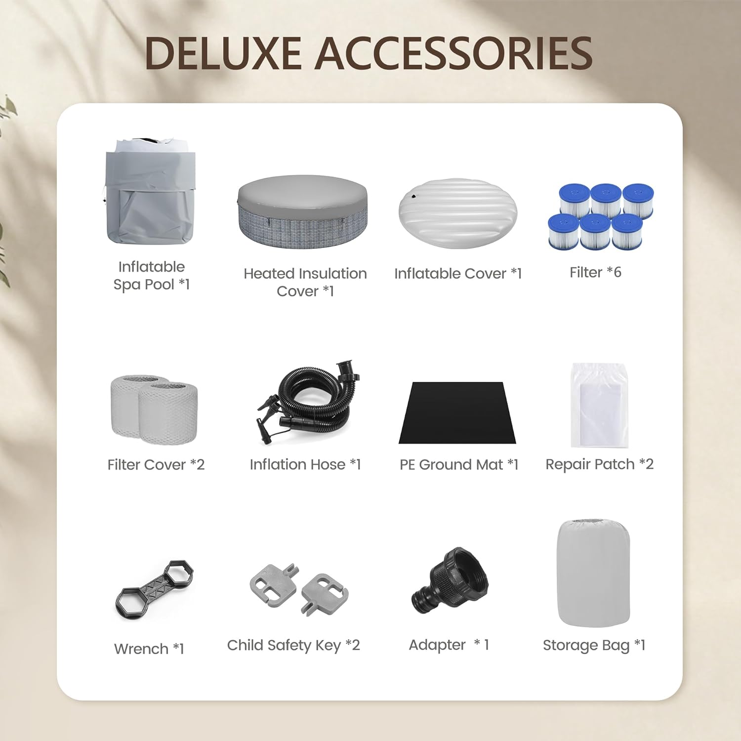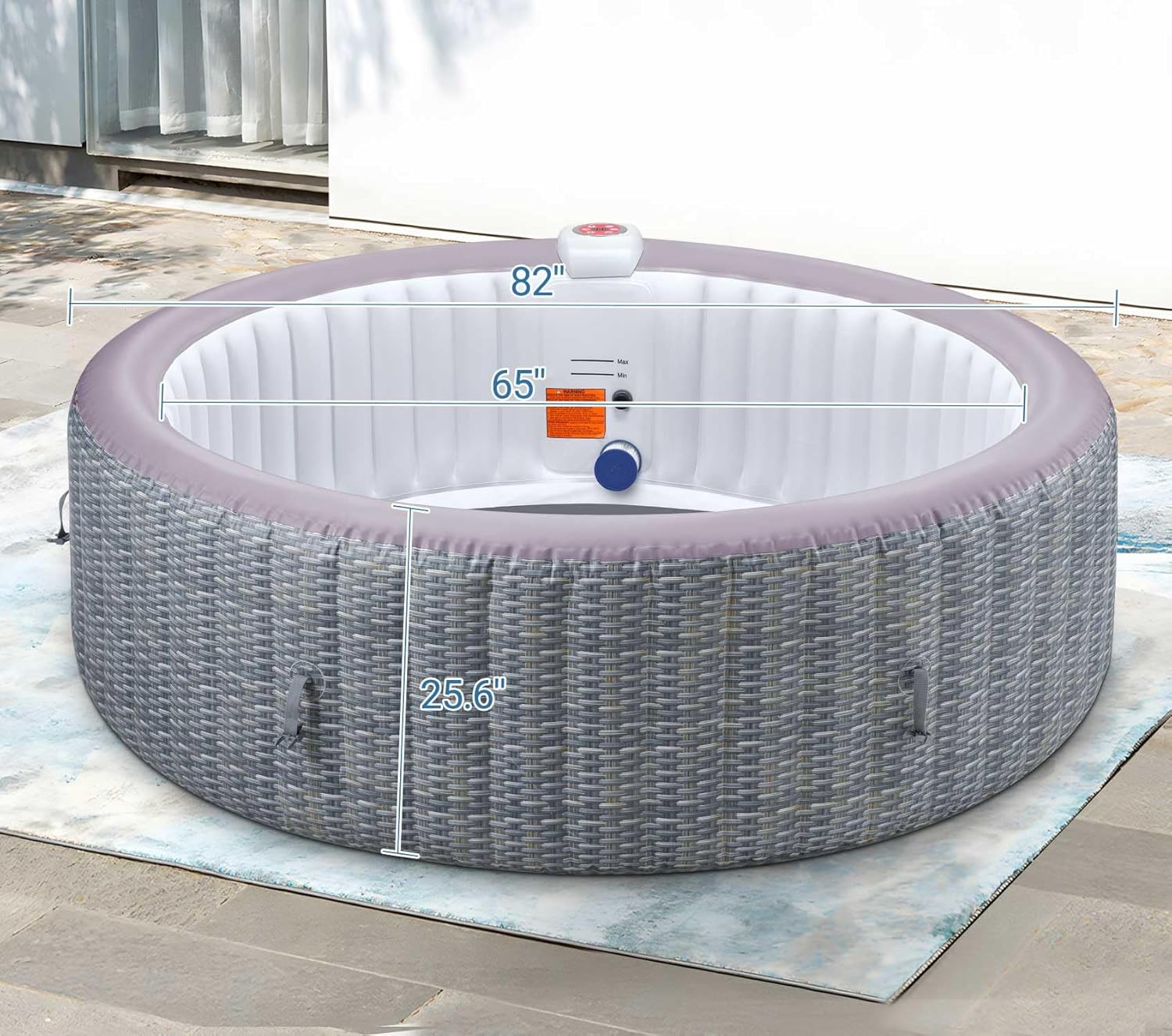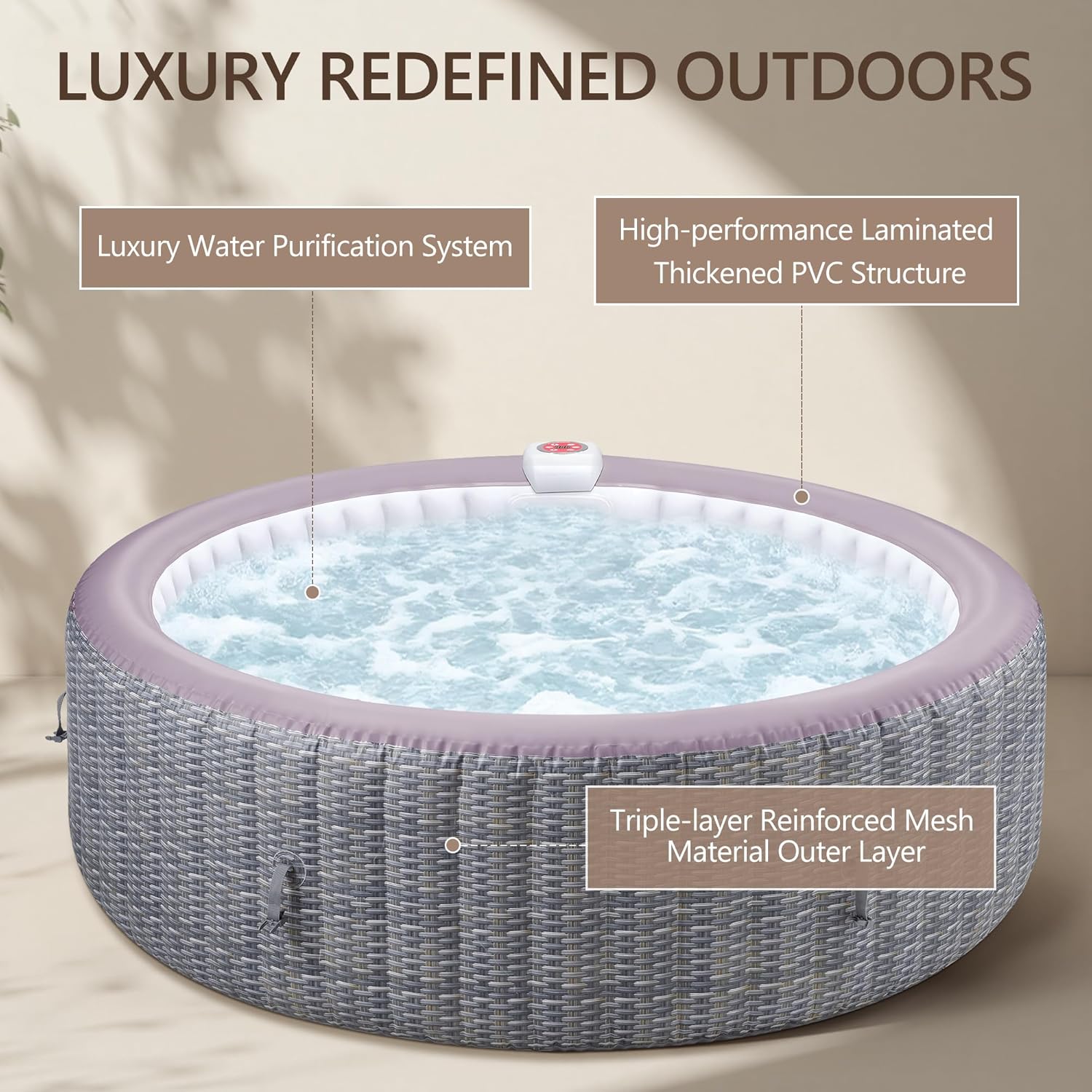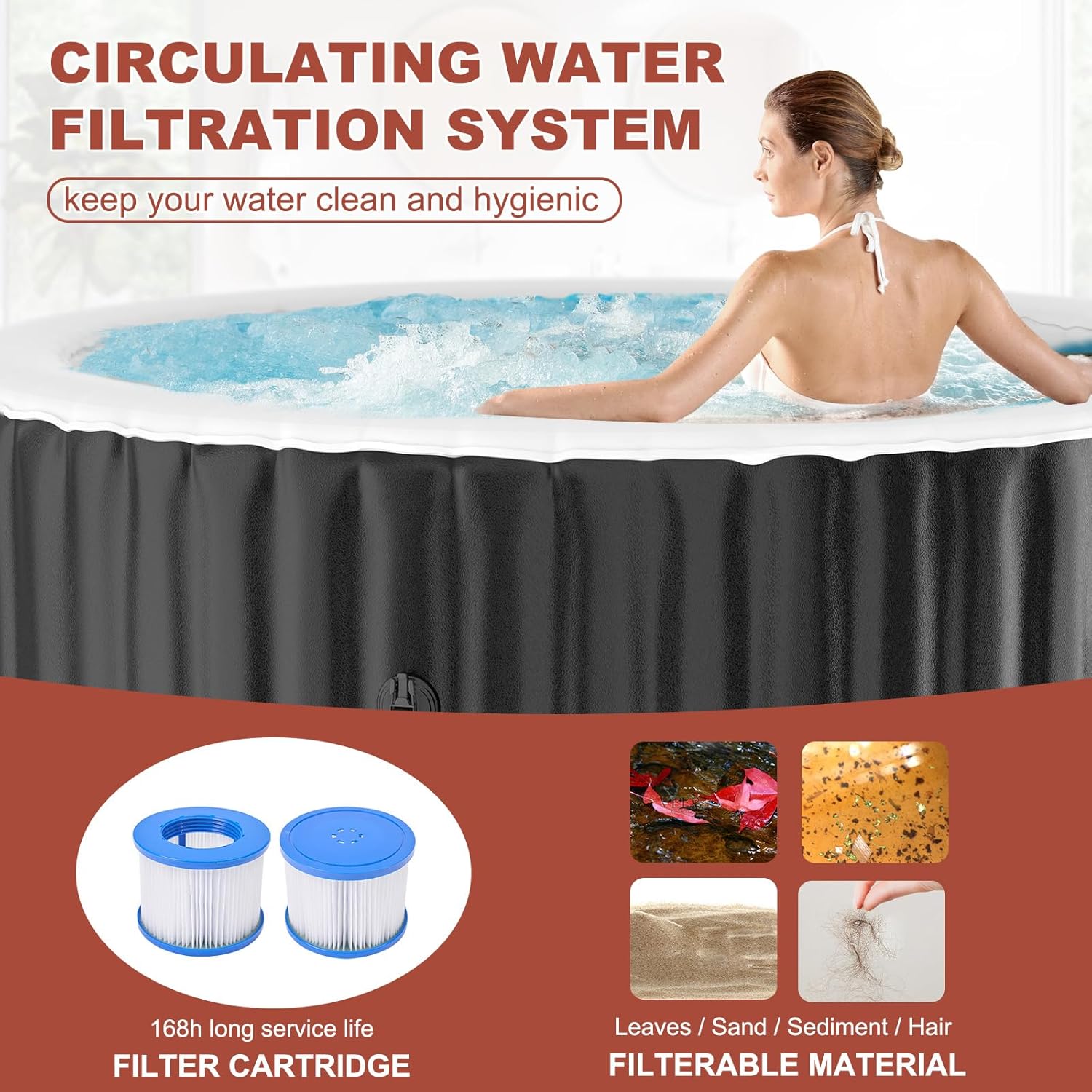 Portable Hot Tub 4-6 Person, Inflatable Hottub with Energy Efficient Spa Cover, 130 Air Jets with Heater Pump, Outdoor Spa for Relaxation, Cup Holder, 2 Filters, 1 Hand Pump, Round