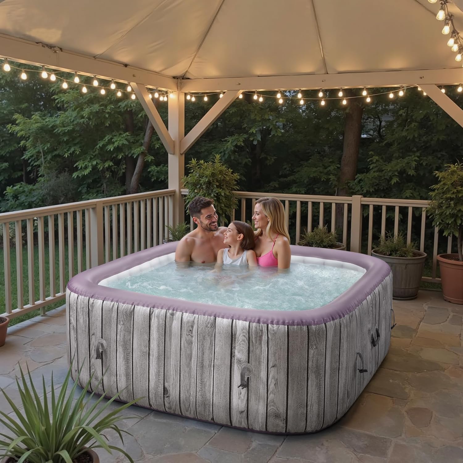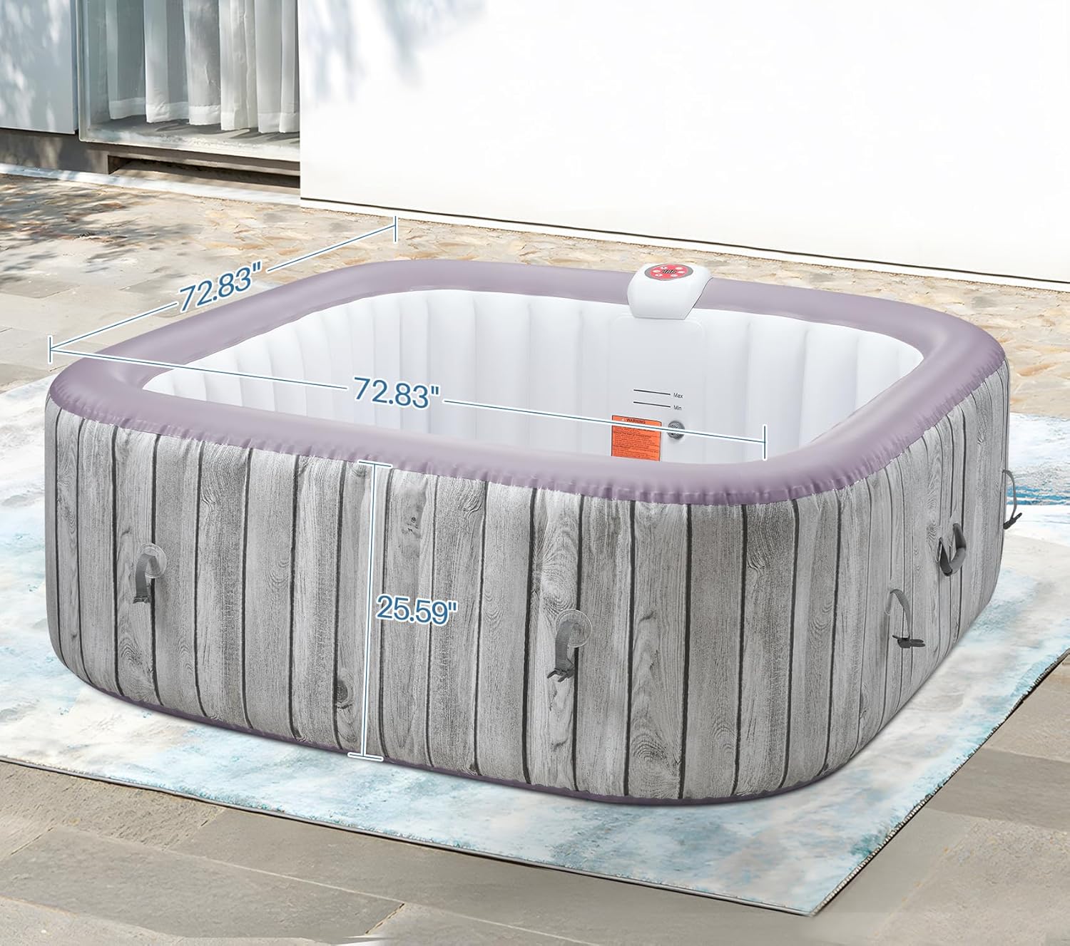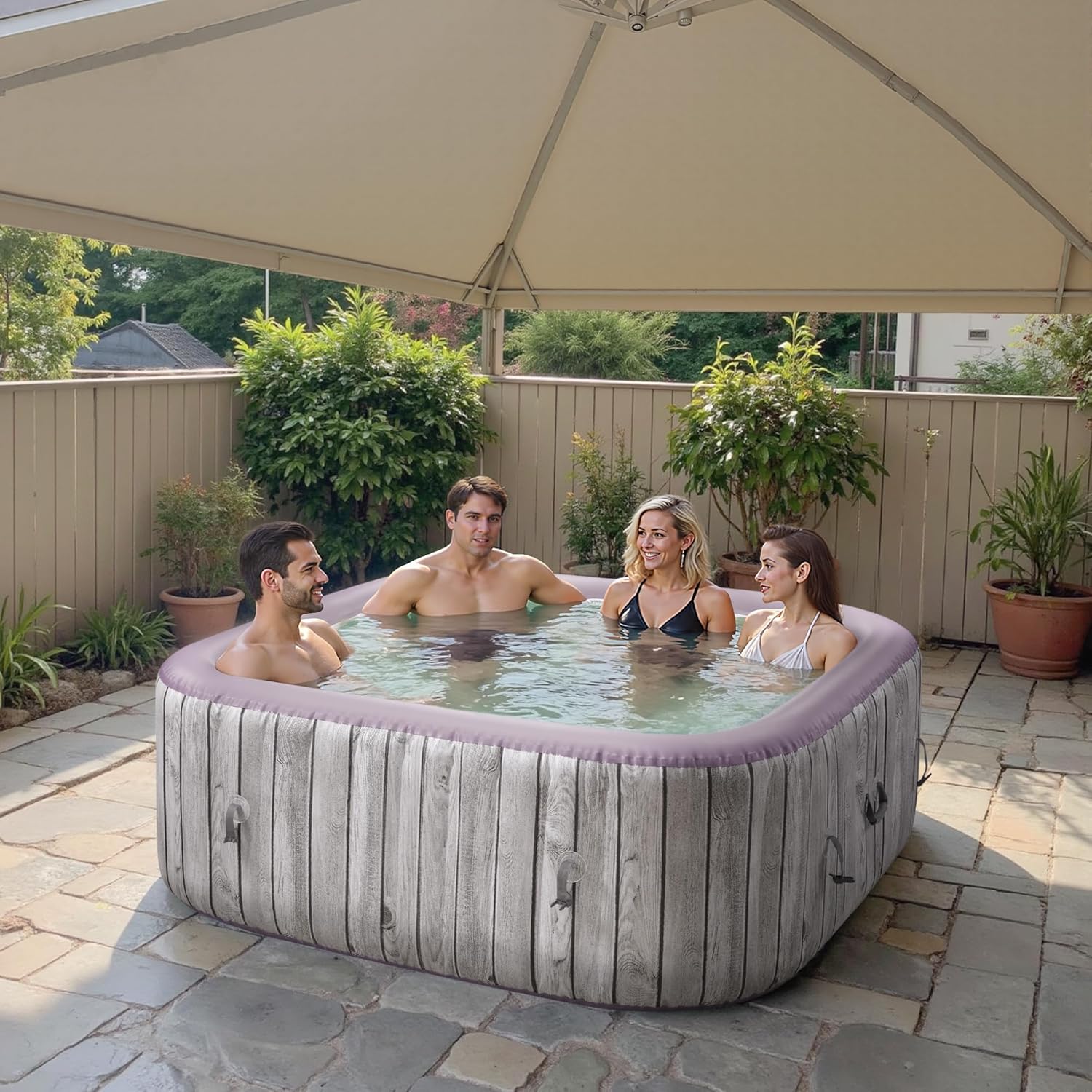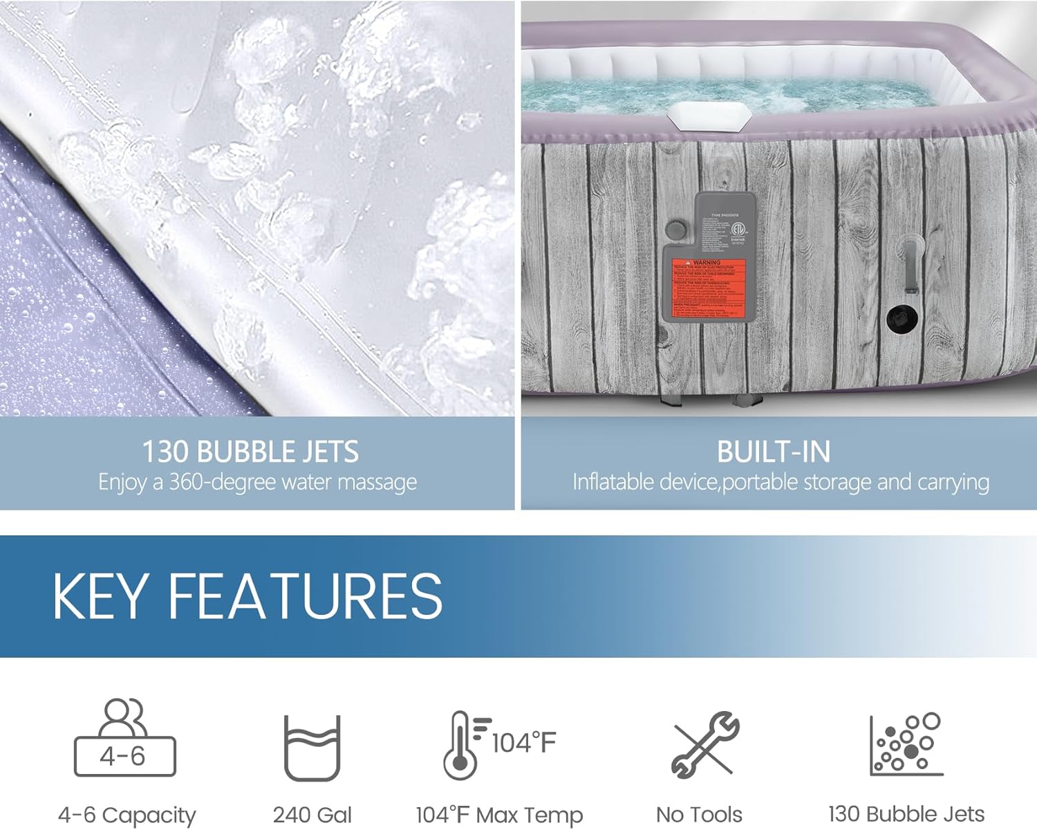 Inflatable Hot Tub for 4-6 Adults – Portable Blow Up Hot Tub with 130 Air Jets, FastFill System & Thermal Cover – Outdoor Spa Hot Tubs for Patio, Backyard & Travel Use (Laminated PVC Square)