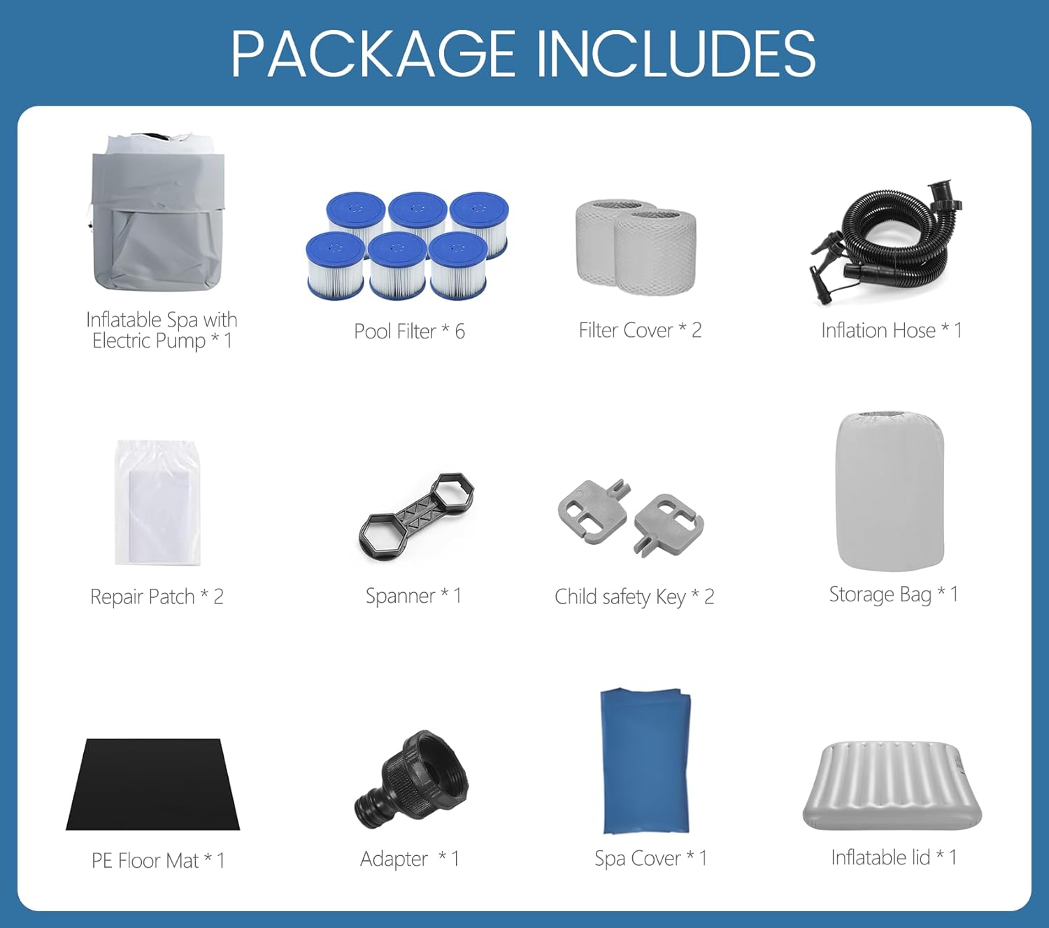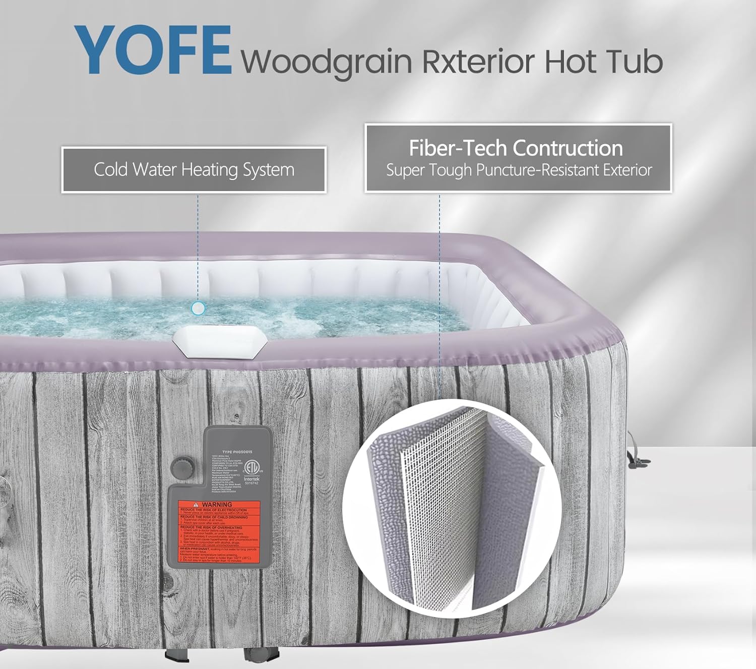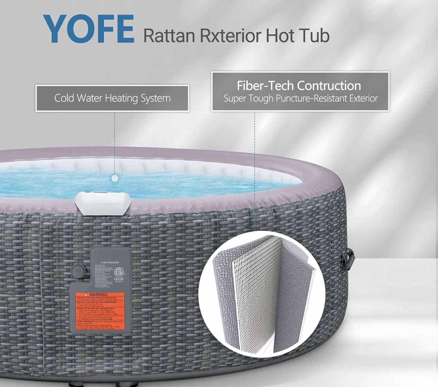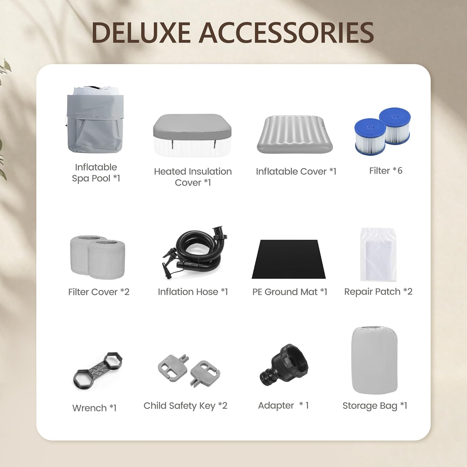 Inflatable Hot Tub for 4-6 Adults – Portable Blow Up Hot Tub with 130 Air Jets, FastFill System & Thermal Cover – Outdoor Spa Hot Tubs for Patio, Backyard & Travel Use (Laminated PVC Square)
