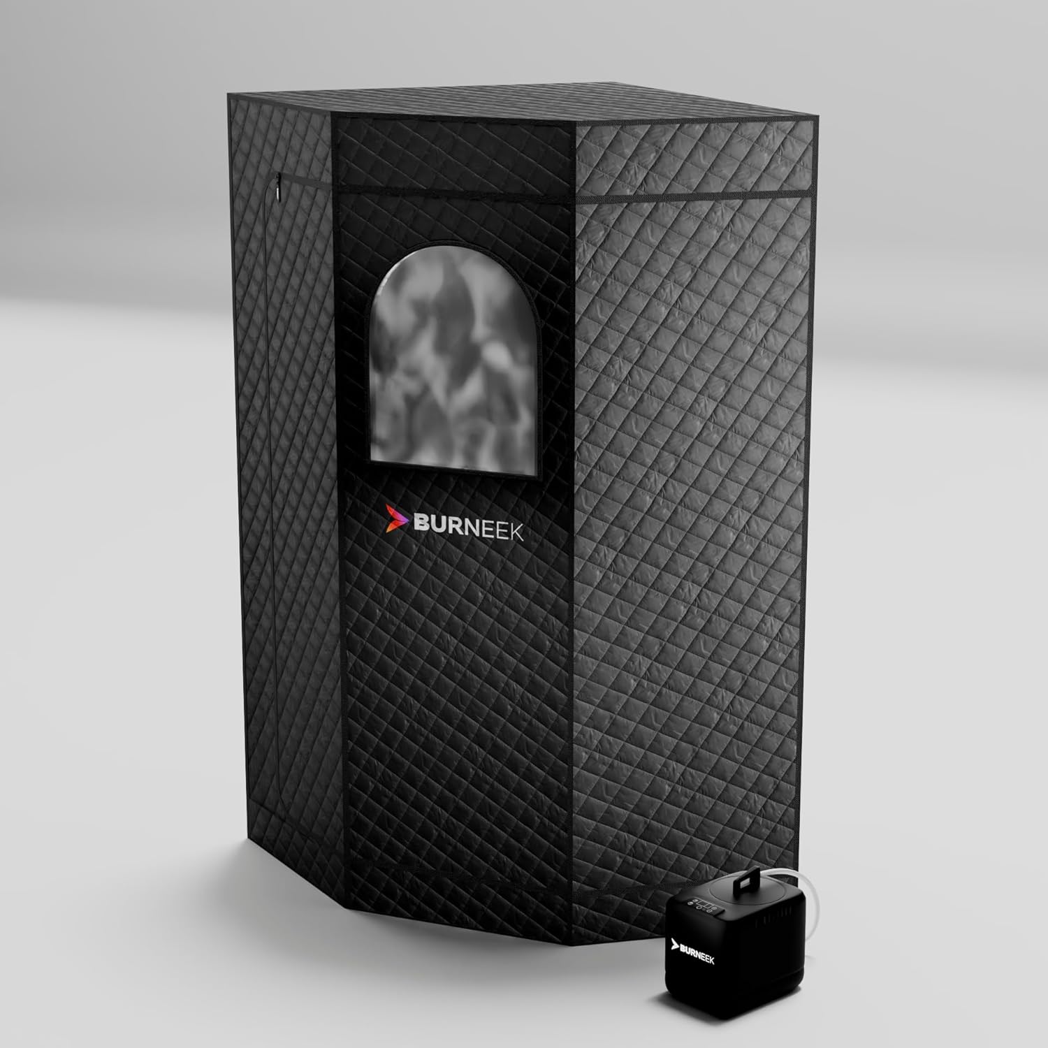 Burneek® Halo Sauna - Heats to 150°F - 1500W Steam Unit, Insulated Cover, Portable Chair, Floor Mat, Remote Control, & Carry Bag - Home Spa for Recovery - 1-Year Warranty (Halo Sauna Red Light)