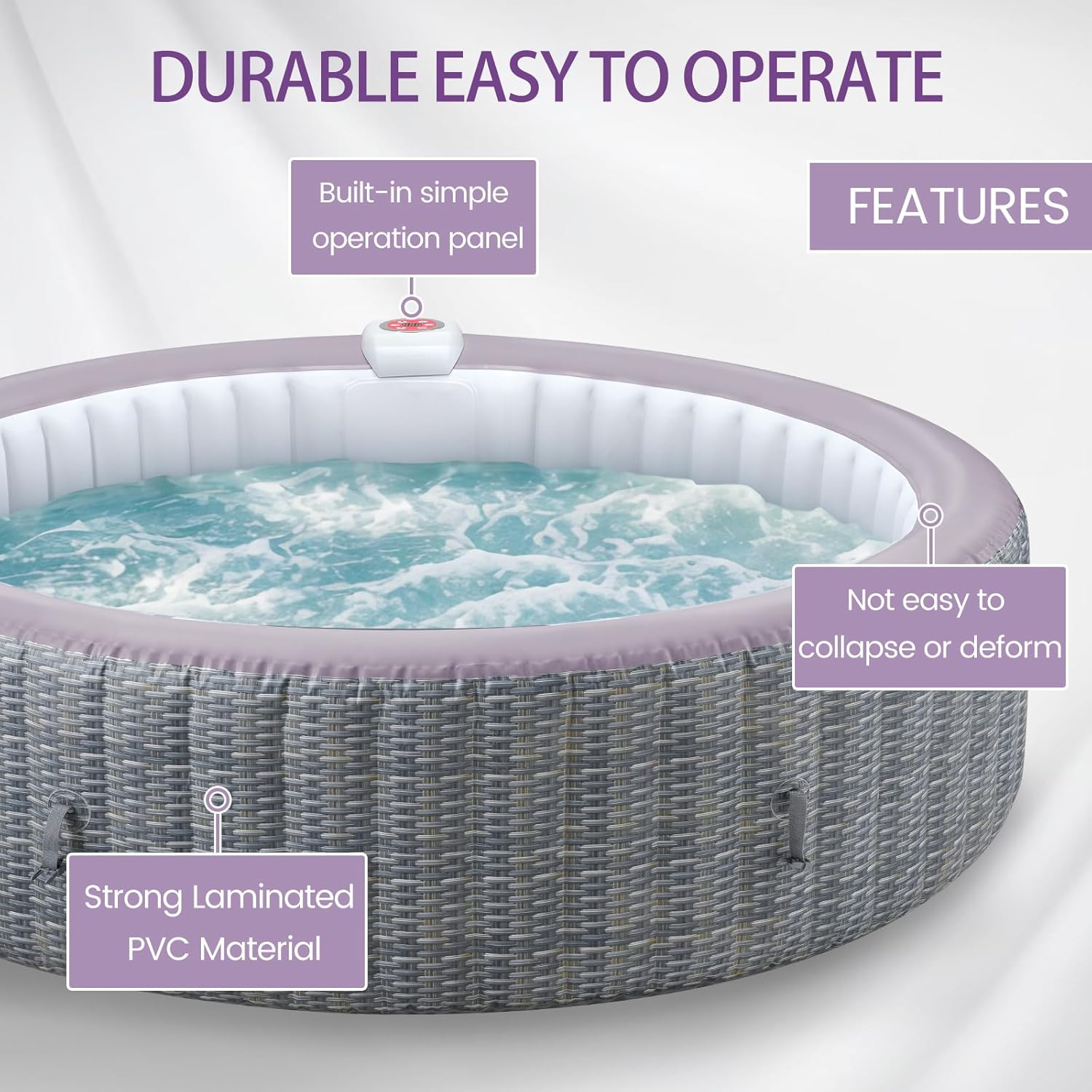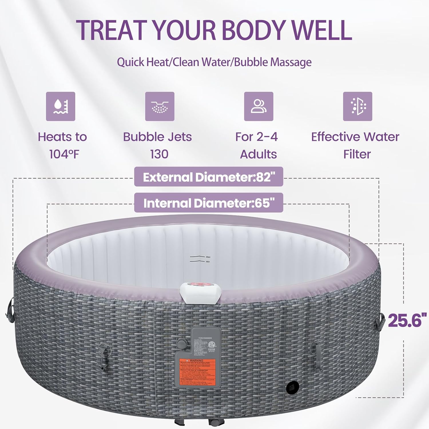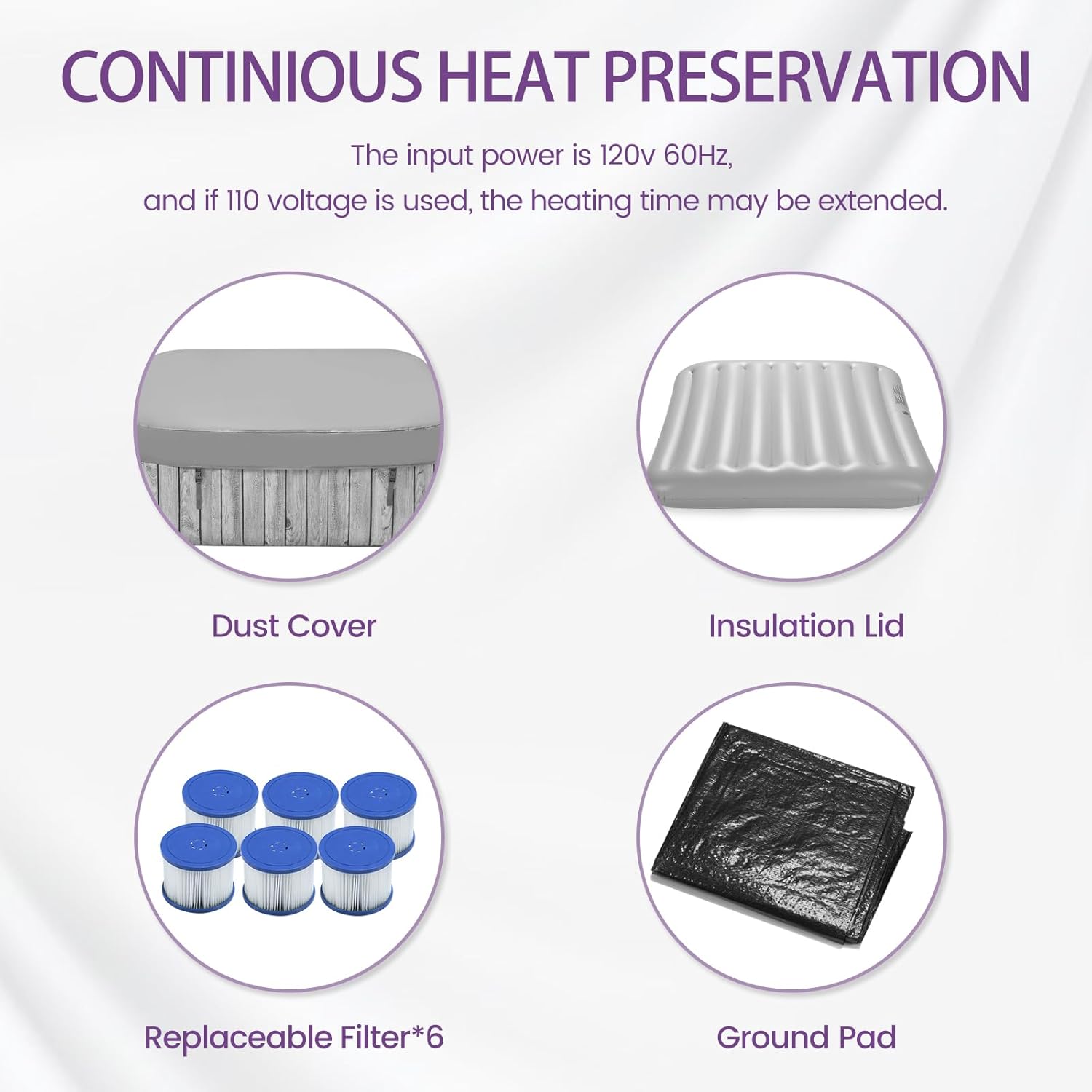 2 Person Inflatable Hot Tub with Side Table, Oval Blow Up Portable Hot Tub, Leak-Proof PVC Outdoor Spa with 100 Strong Air Jets, Heater Pump and Insulated Cover, 75” X 47”X 25”