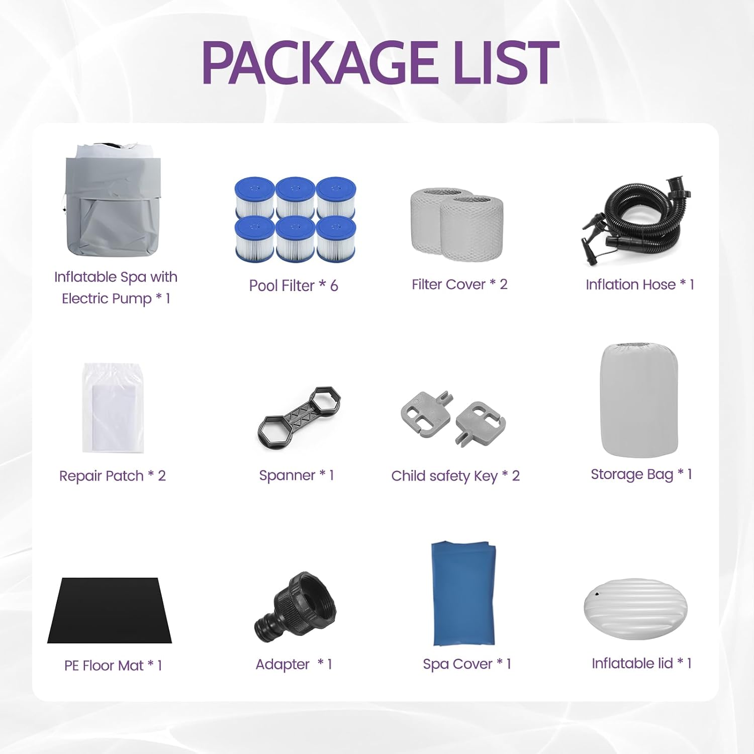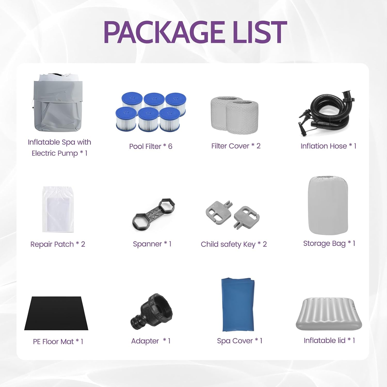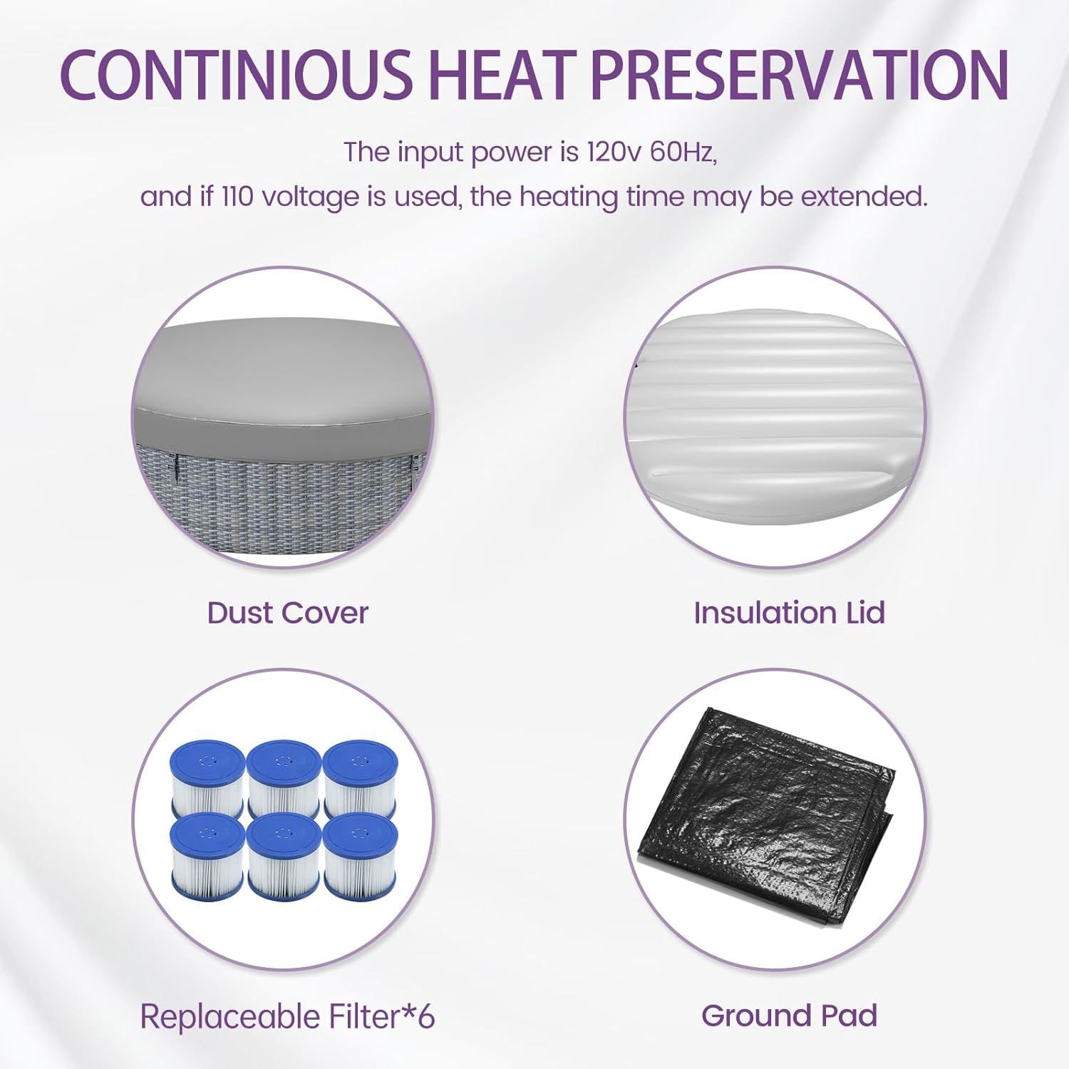 2 Person Inflatable Hot Tub with Side Table, Oval Blow Up Portable Hot Tub, Leak-Proof PVC Outdoor Spa with 100 Strong Air Jets, Heater Pump and Insulated Cover, 75” X 47”X 25”