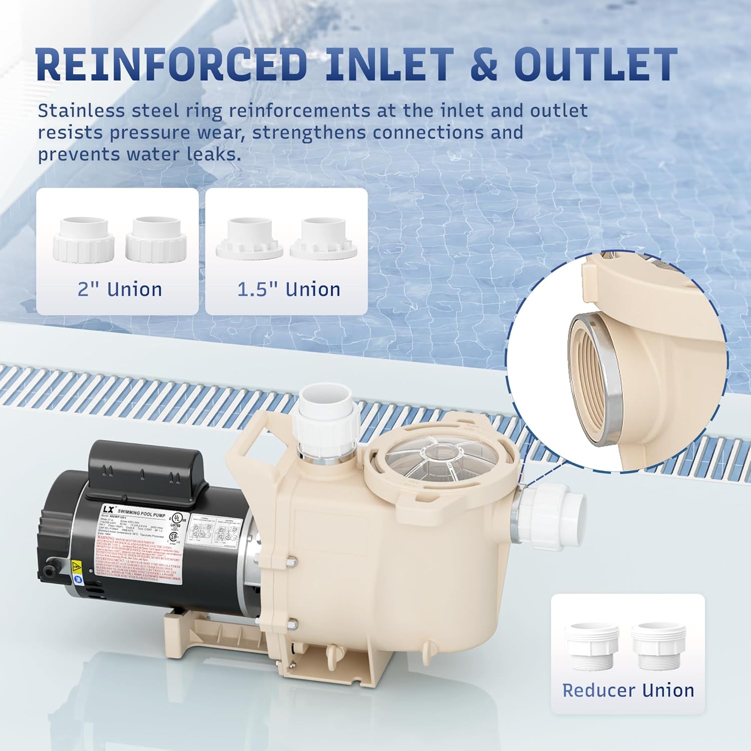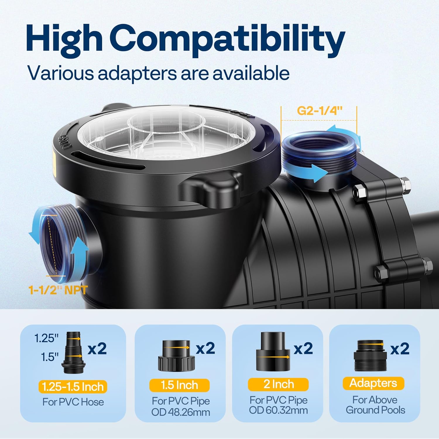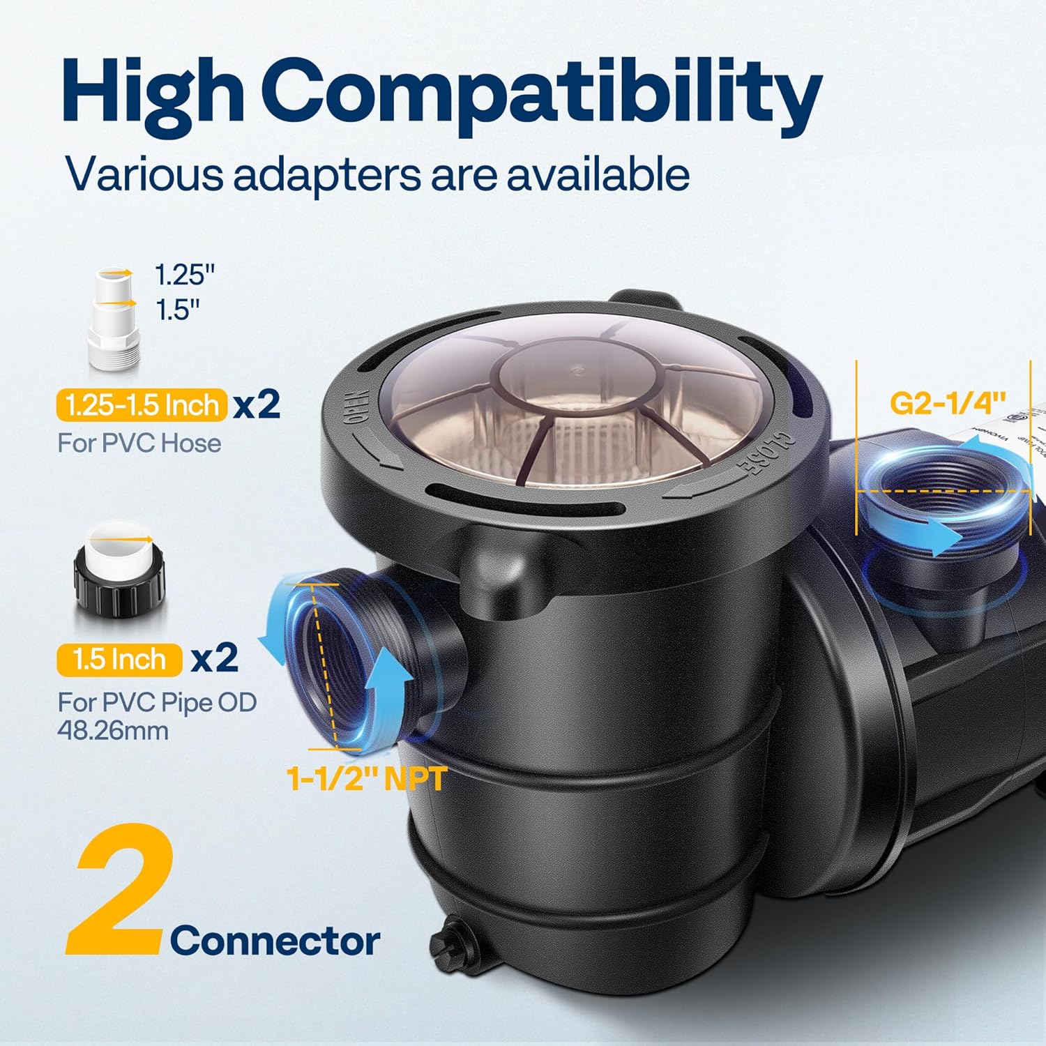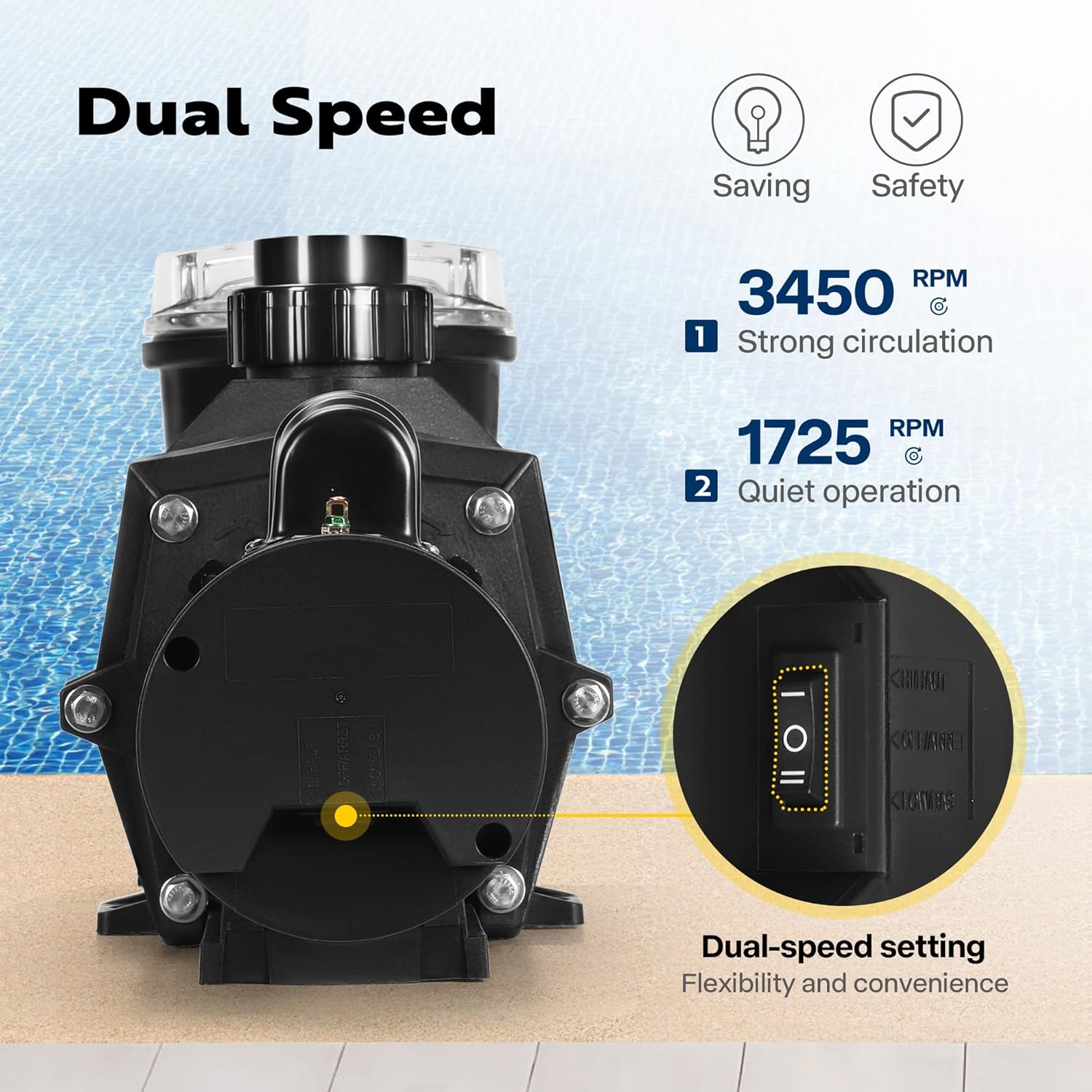 VIVOHOME 2.5HP 230V Pool Pump, Dual Speed with High Lift 79FT, Self-Priming DOE Energy Saving, 1.5" & 2" Connectors w/Strainer Basket for In-Ground Pools