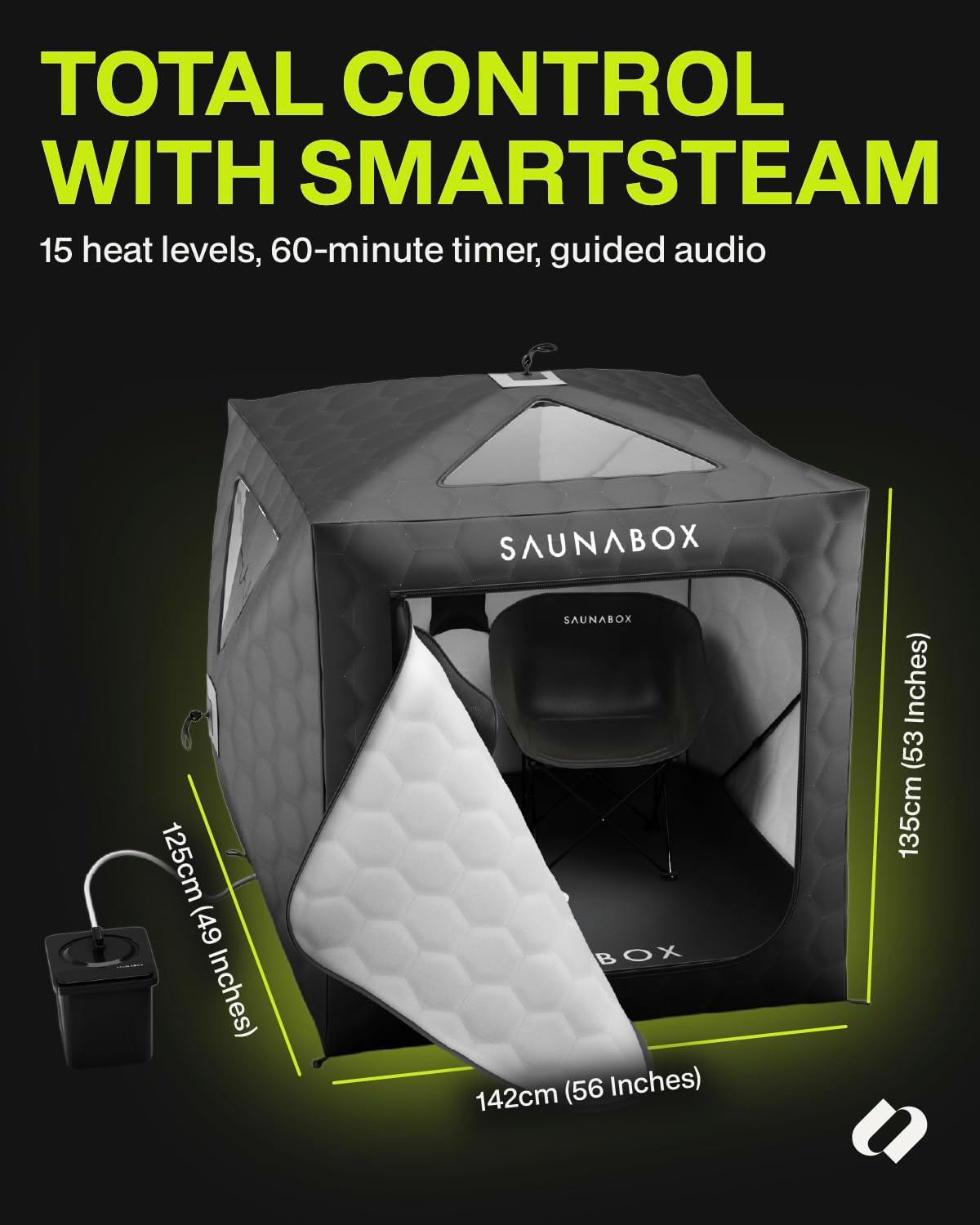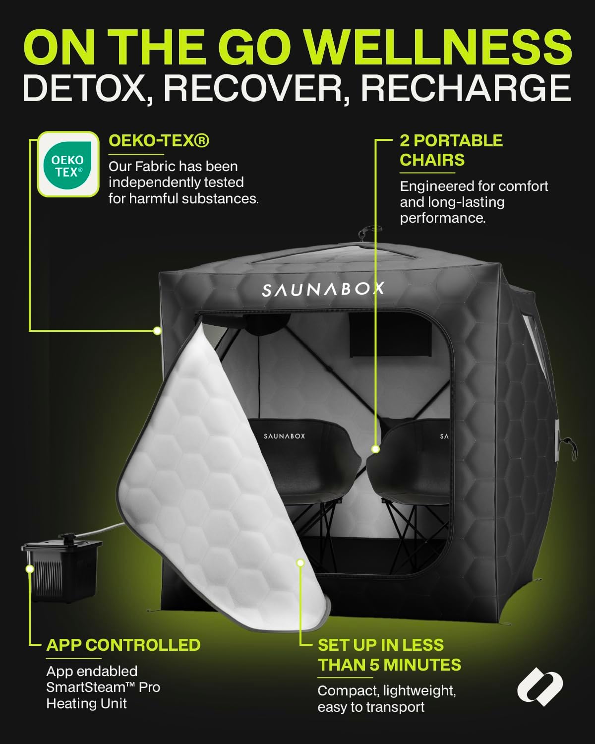 SAUNABOX SmartSteam Kit Pro | Personal Steam Sauna for Home Use | Portable Sauna Tent with Chair, Mat & Case | Full-Body Steam Therapy for Relaxation, Detox & Recovery