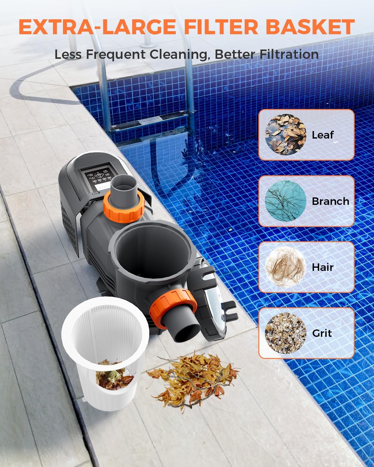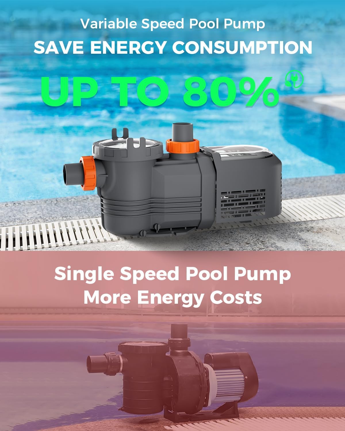 2.5HP Variable Speed Pool Pump, 220V-240V, 10567GPH, Inground Pool Pump, High Flow Energy-Efficient Self Priming Above Ground Swimming Pool Pumps with Filter Basket