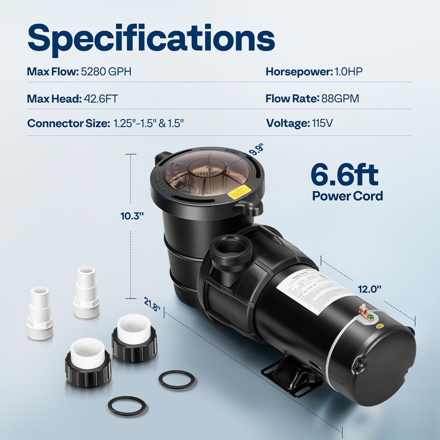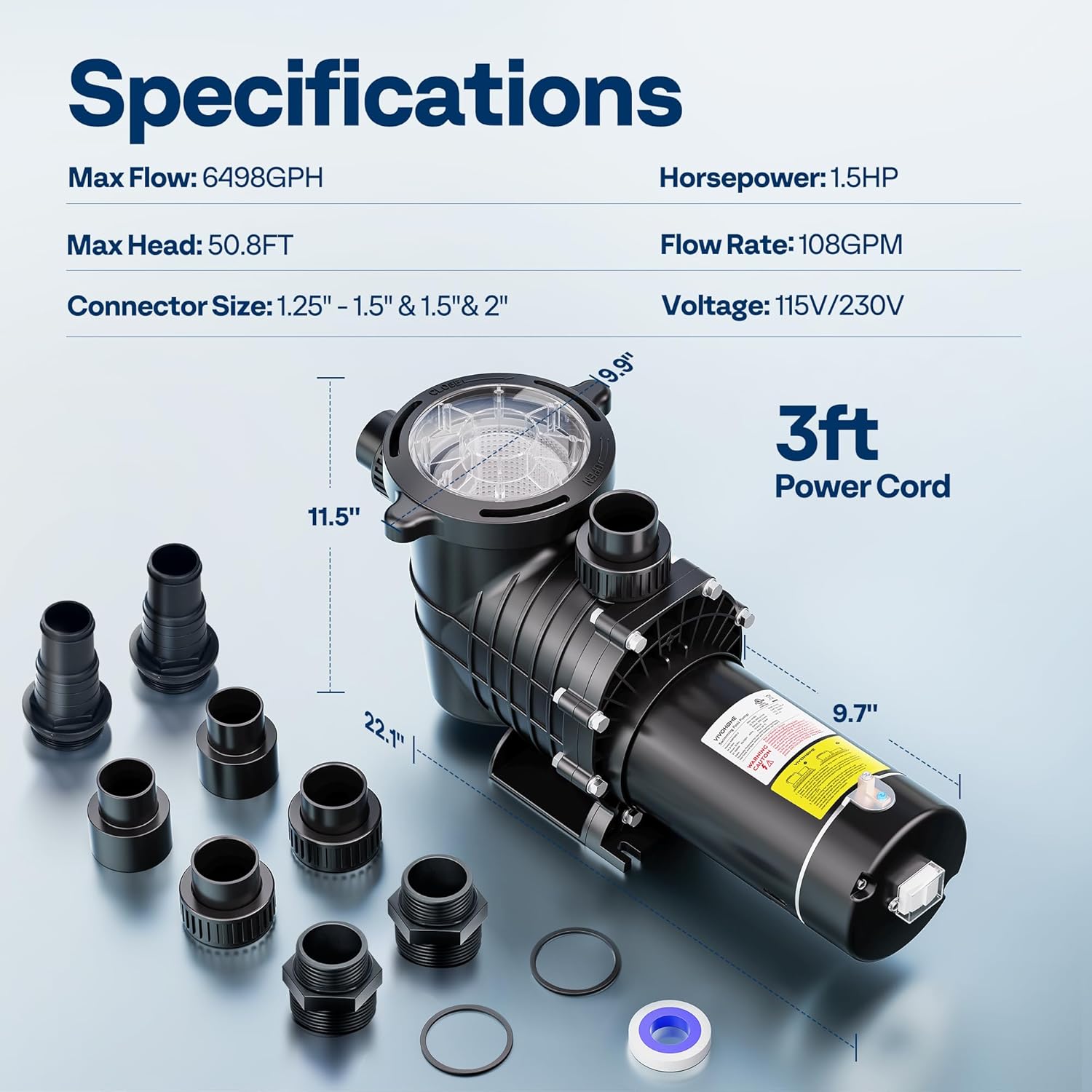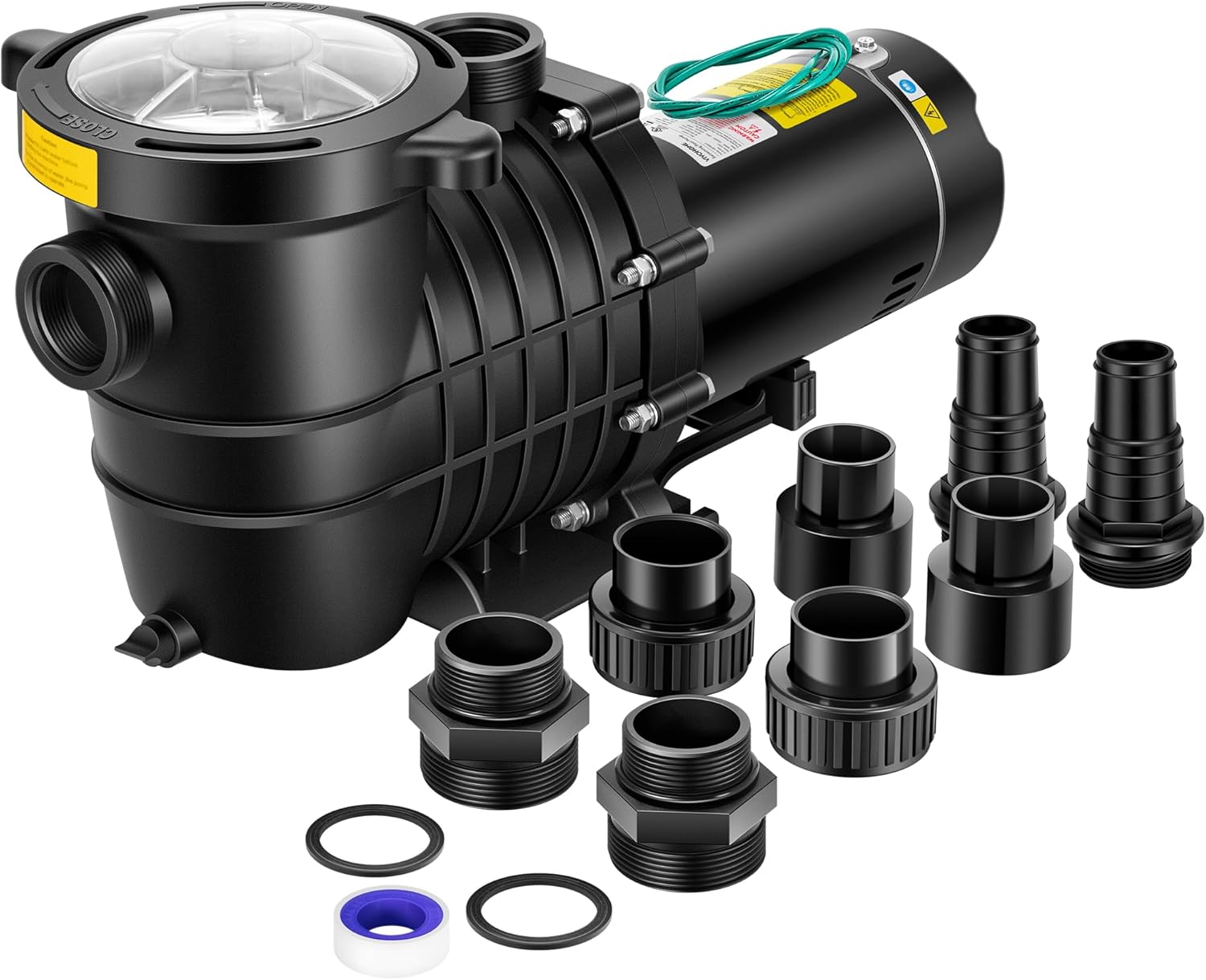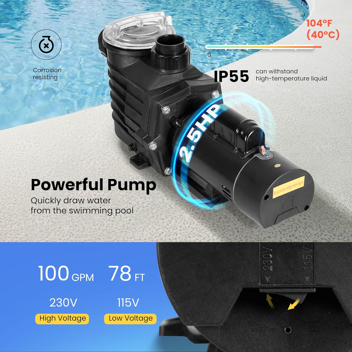 VIVOHOME 2.5HP Dual Voltage Pool Pump, High Lift 78FT Self-Priming, DOE Energy Saving, 1.5" & 2" Connectors w/Strainer Basket for In/Above Ground Pools