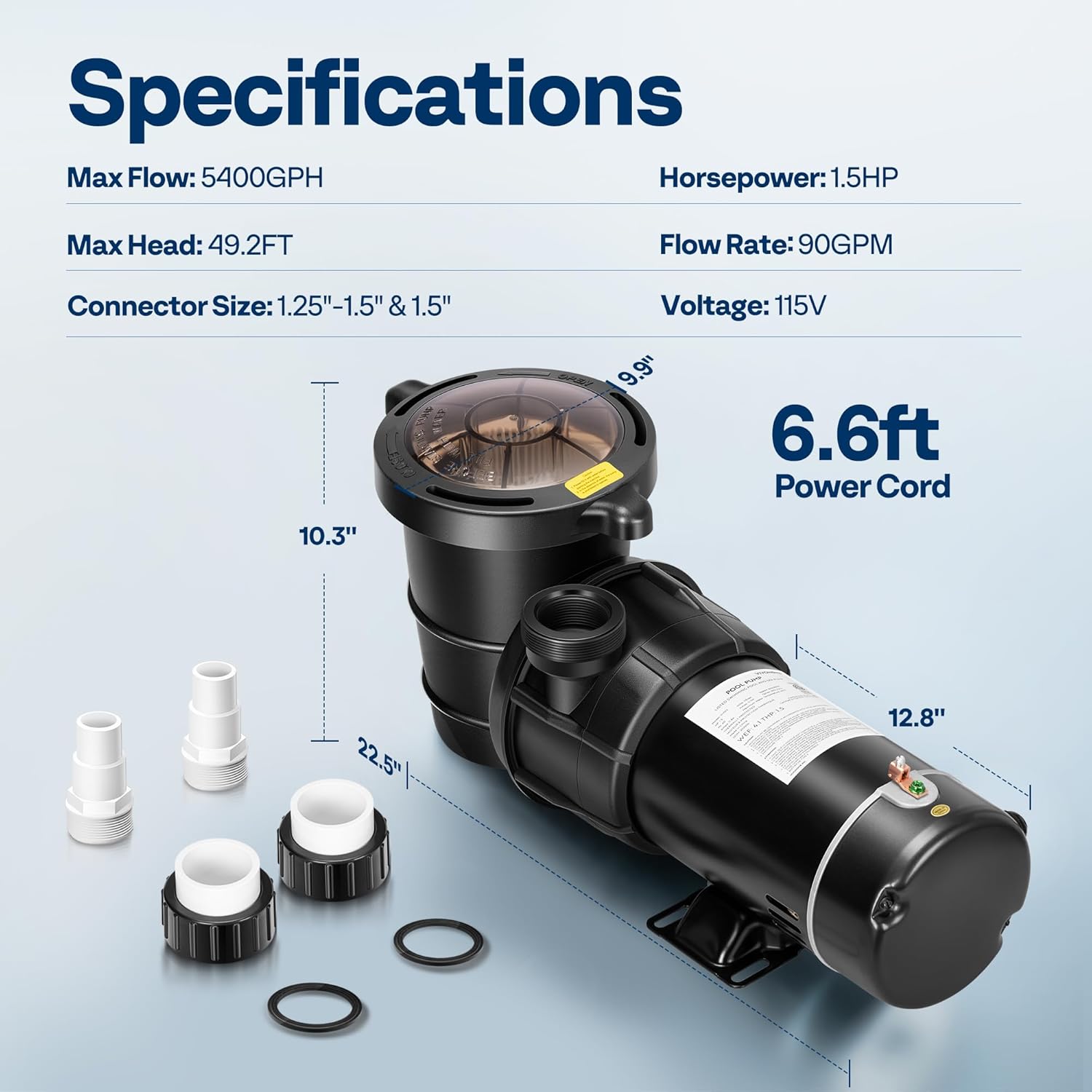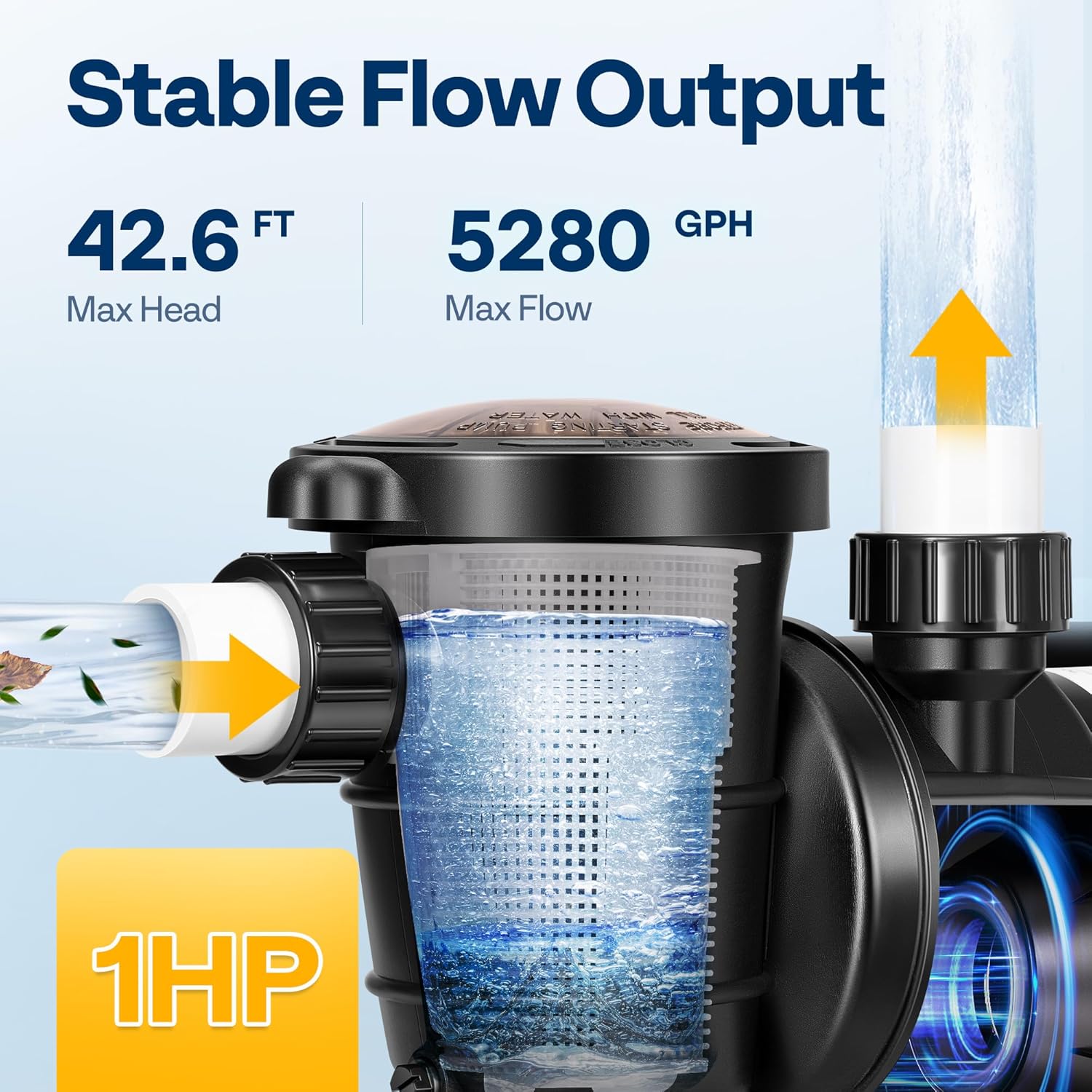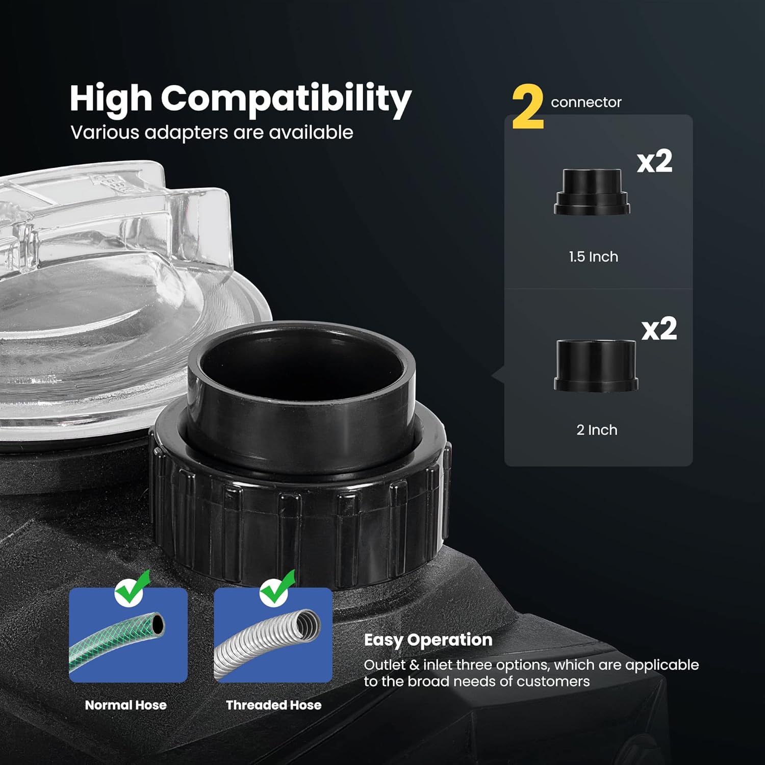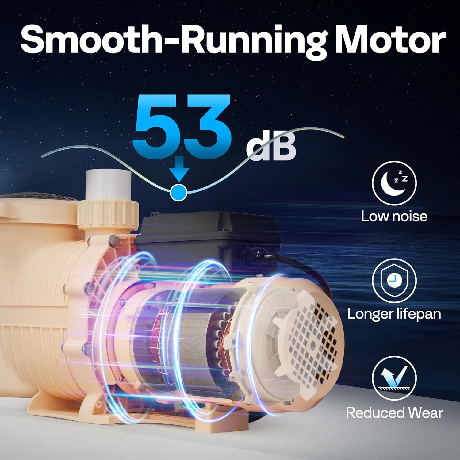 Variable Speed Pool Pump with Control Panel/APP Control Easily Operation Dual Voltage 115V/230V 5070GPH High Performance 1.5HP Powerful Self Primming Pool Pump for Inground Swimming Pools