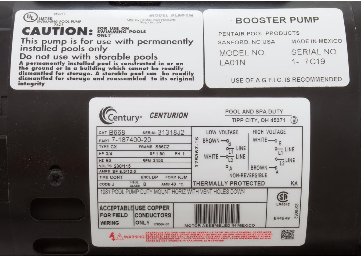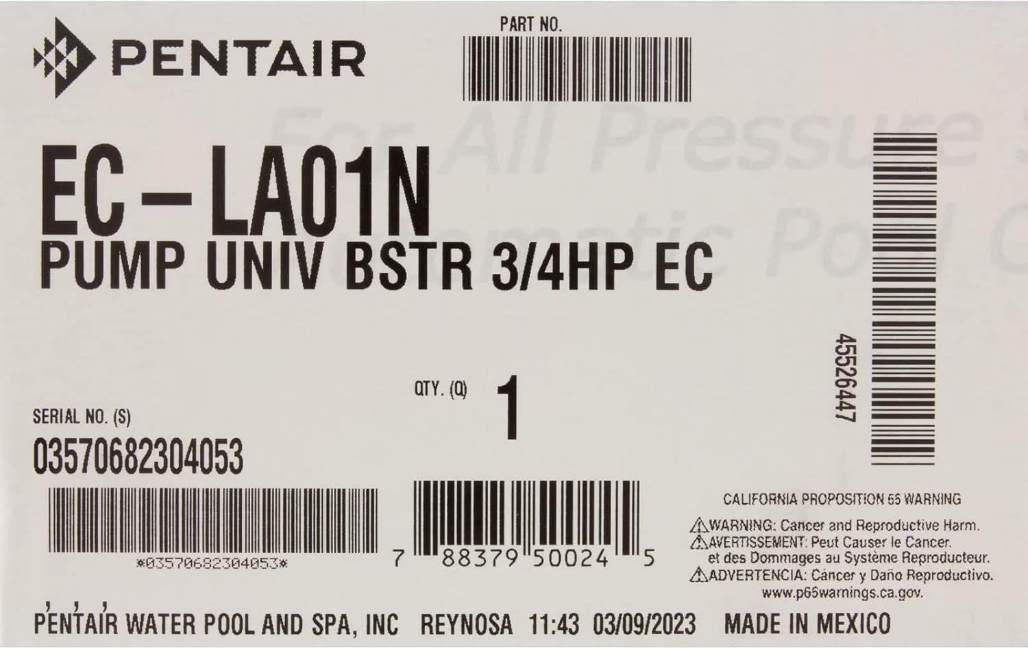 Pentair Booster Pump for pressure side pool cleaners EC-LA01N