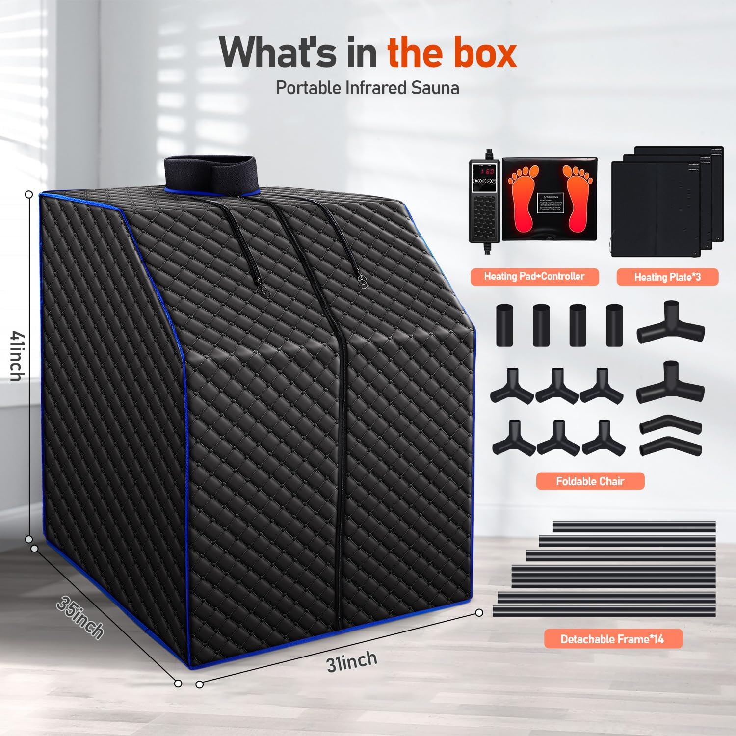 Portable Infrared Sauna for Home, Indoor Sauna Infrared with Red Light Therapy, Includes 660 & 850nm Red Light Therapy Lamp, 3L Steamer, Upgraded Chair and Mat, 72'x 36'x 36', Black