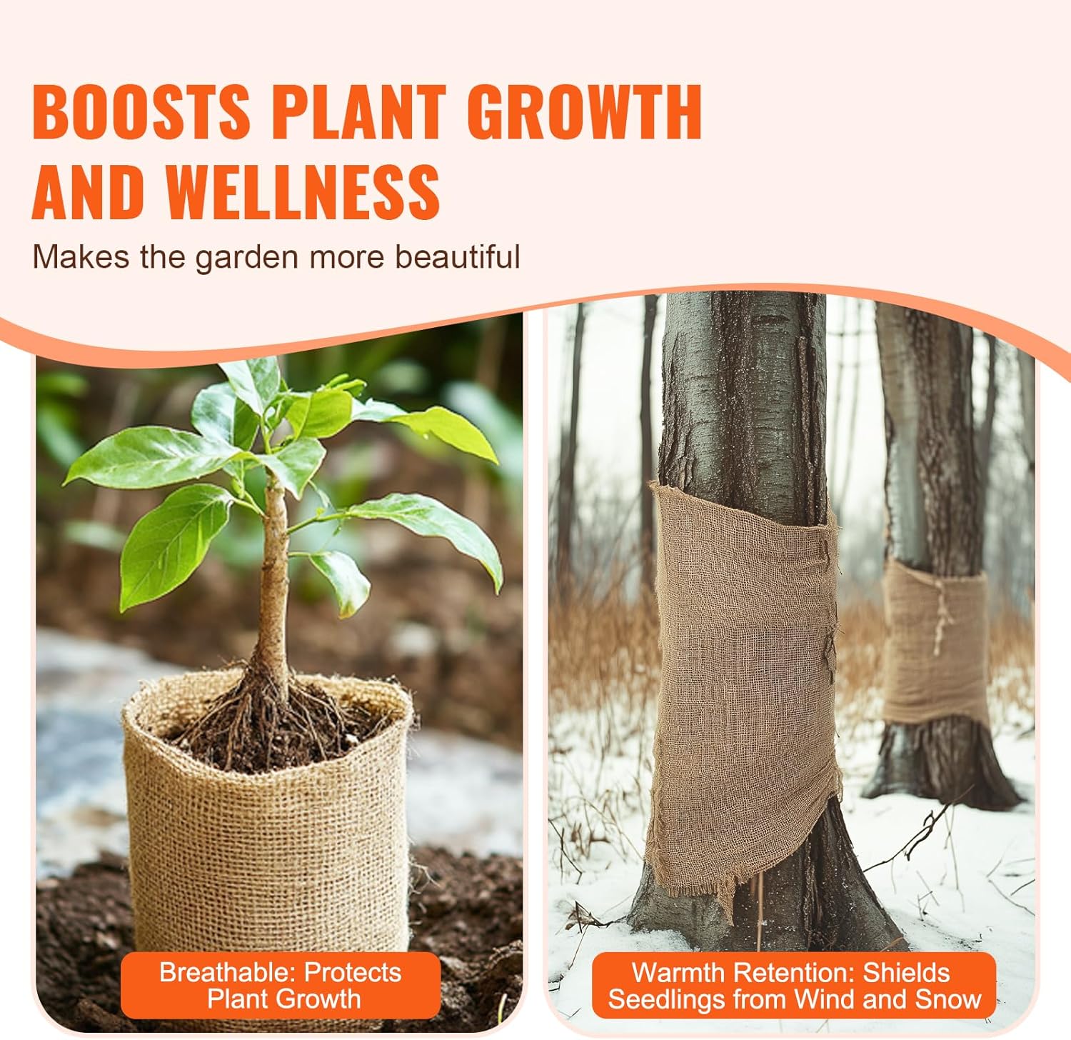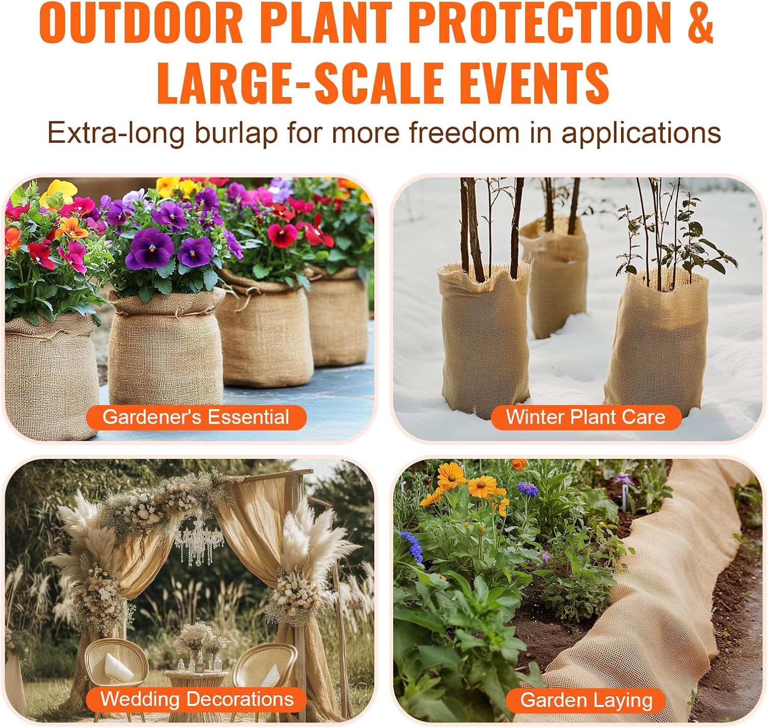 VEVOR Burlap Fabric Roll, 40” x 150 ft High Density Natural Jute Fiber Material for Outdoor Plant Care, Tree Wrap Roll, Decor, DIY Crafts, Wedding, Garden Weed Barrier, Plants & Trees Winter Covering