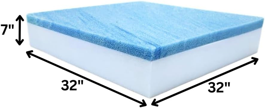 FoamRush 7" x 26" x 32" Water-Resistant Dry Fast Outdoor Upholstery Foam Sheet for Outdoor & Marine Furniture (Chair Cushion Foam for Patio Furniture, Boat Seat Cushion Replacement)