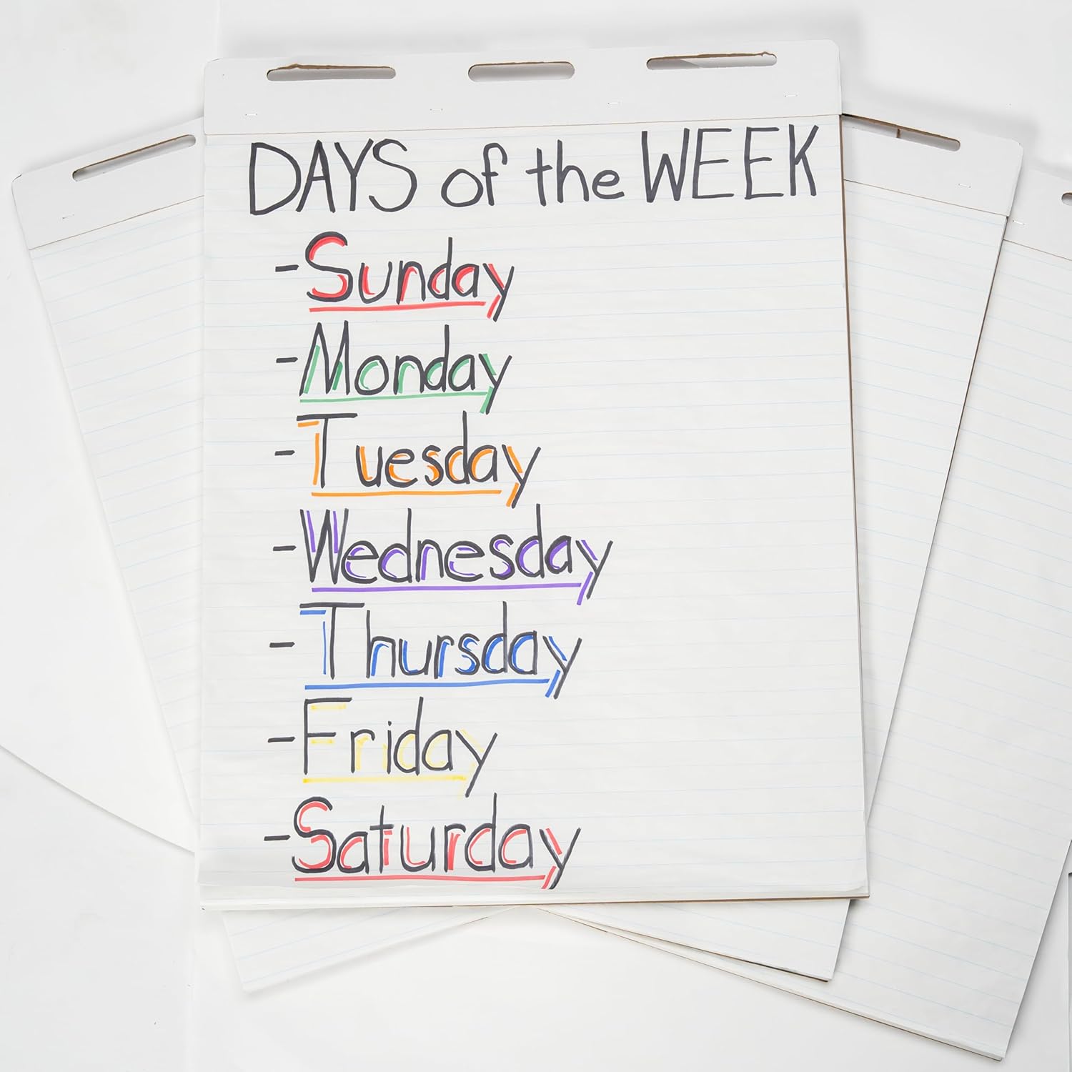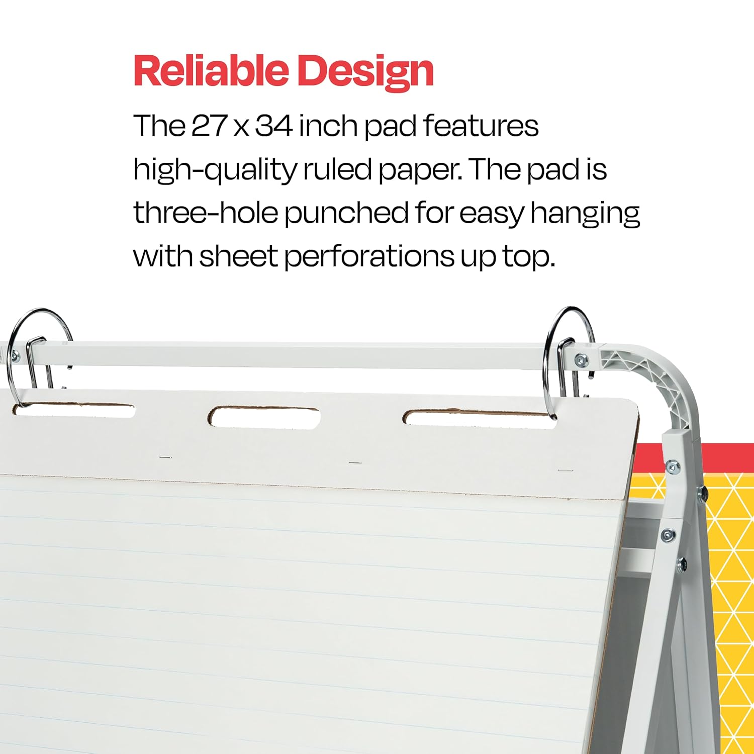 School Smart Ruled Easel Pads, 27 x 34 Inches, 50 Sheets, White, Pack of 4