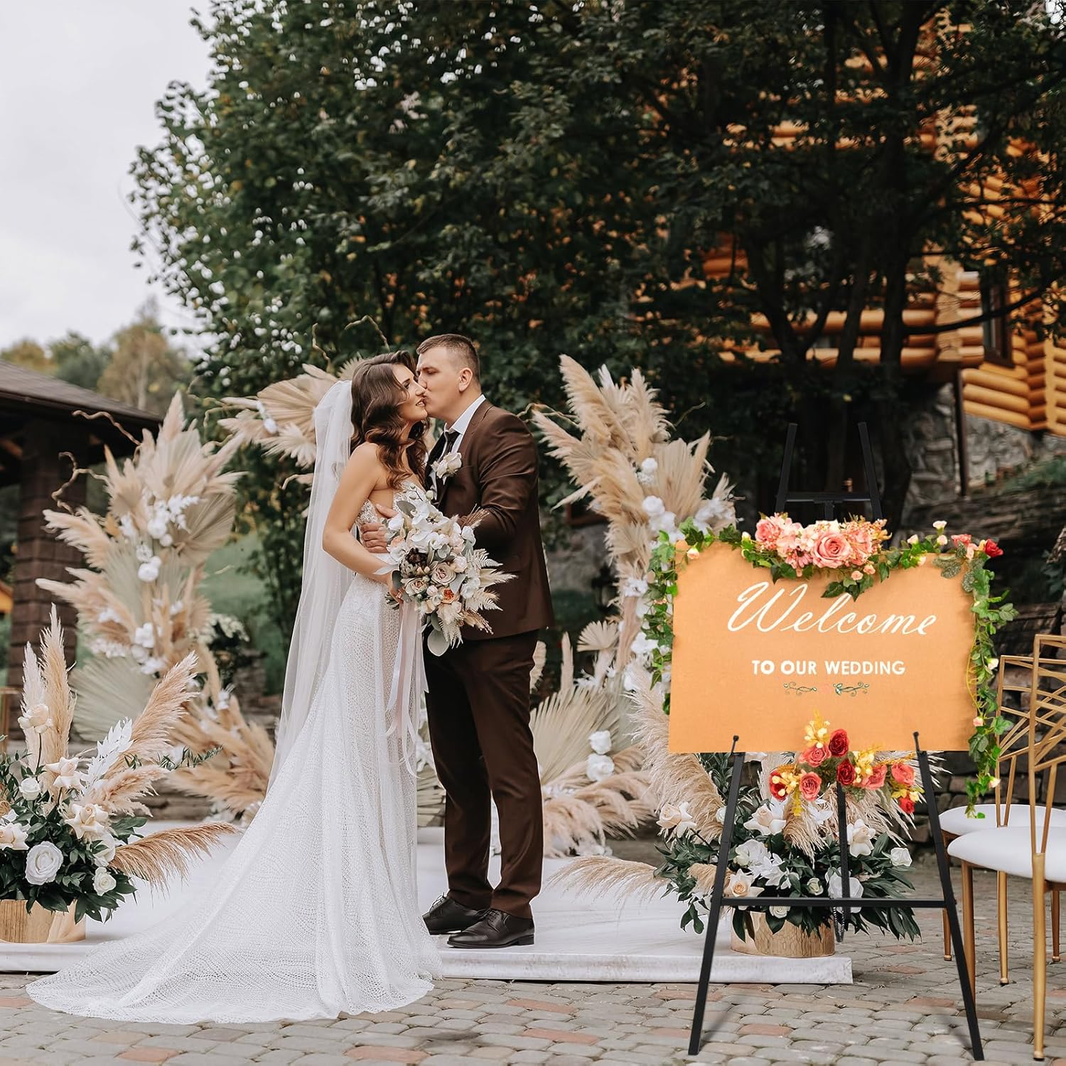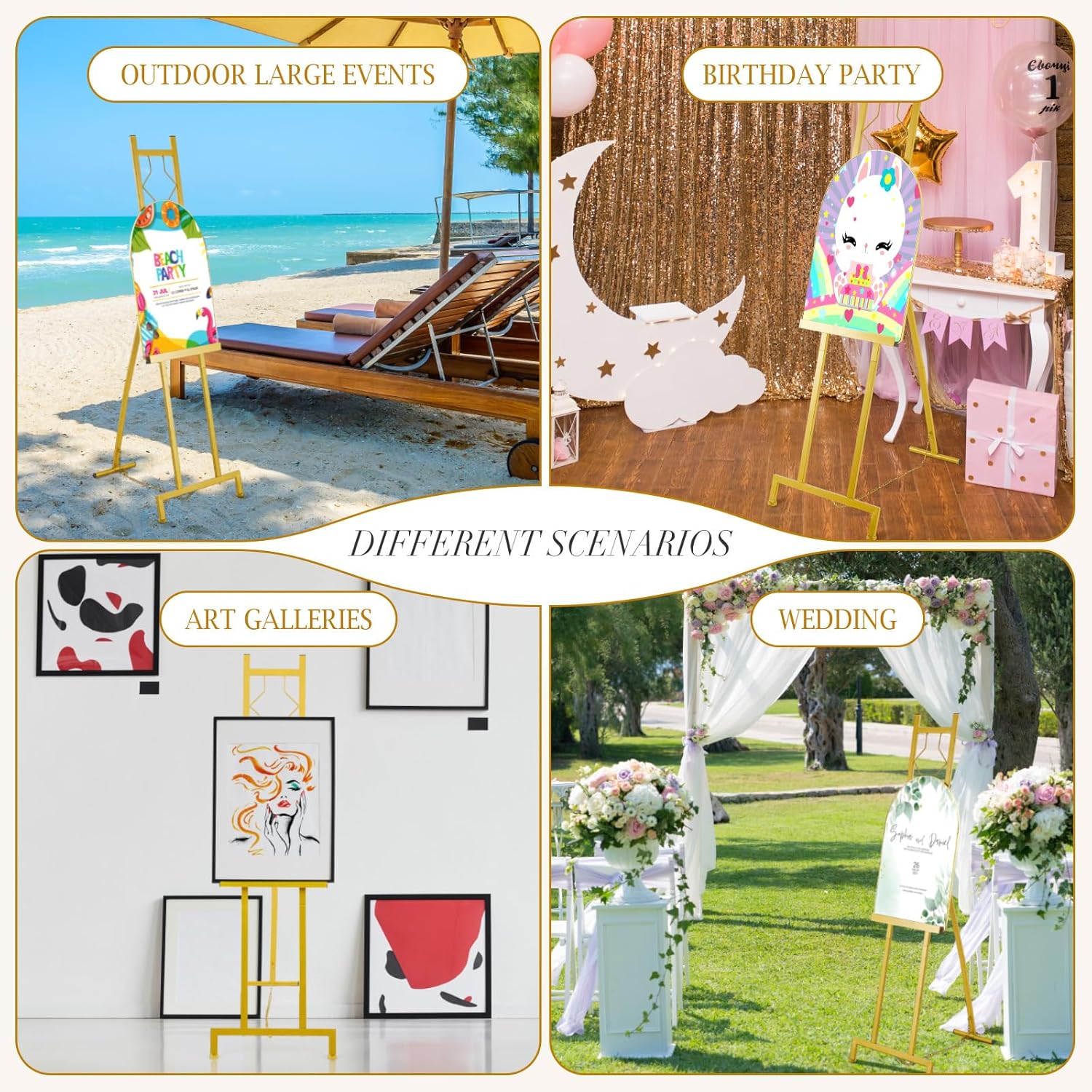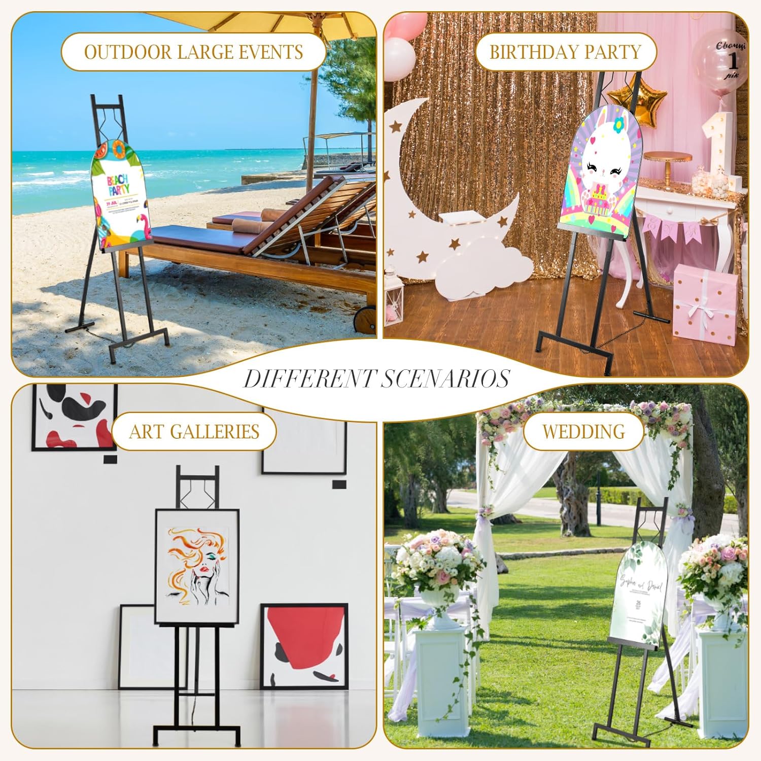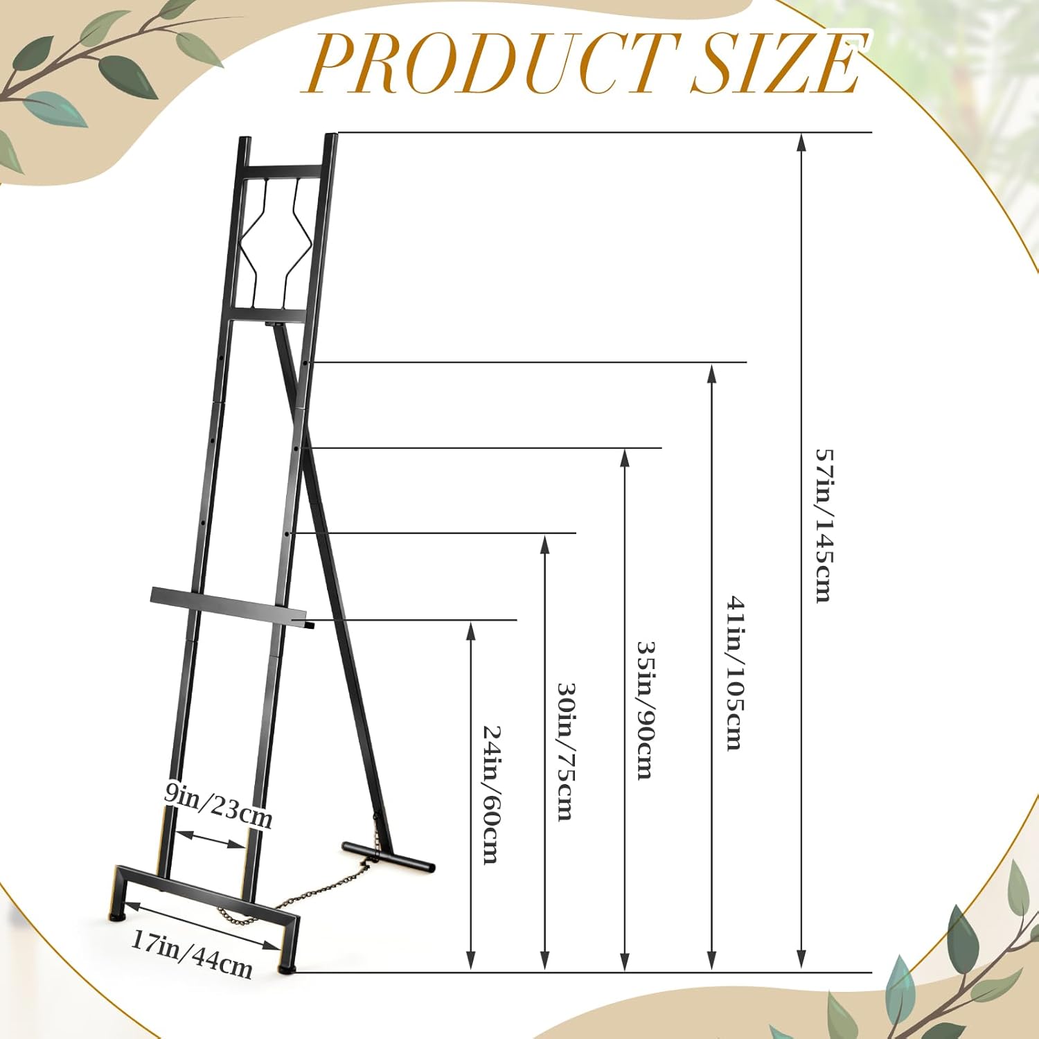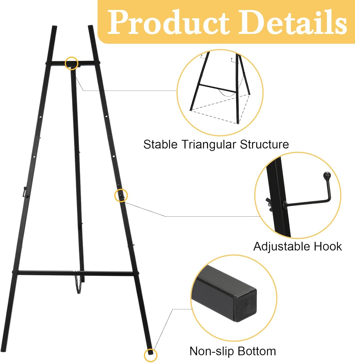 Zonon 2 Pcs 57" H Frame Black Easel Stand for Wedding Signs, Posters, Portable Artist Easel for Painting Canvas, Metal Display Holder for Home and Office Large Adjustable 4 Tier Floor