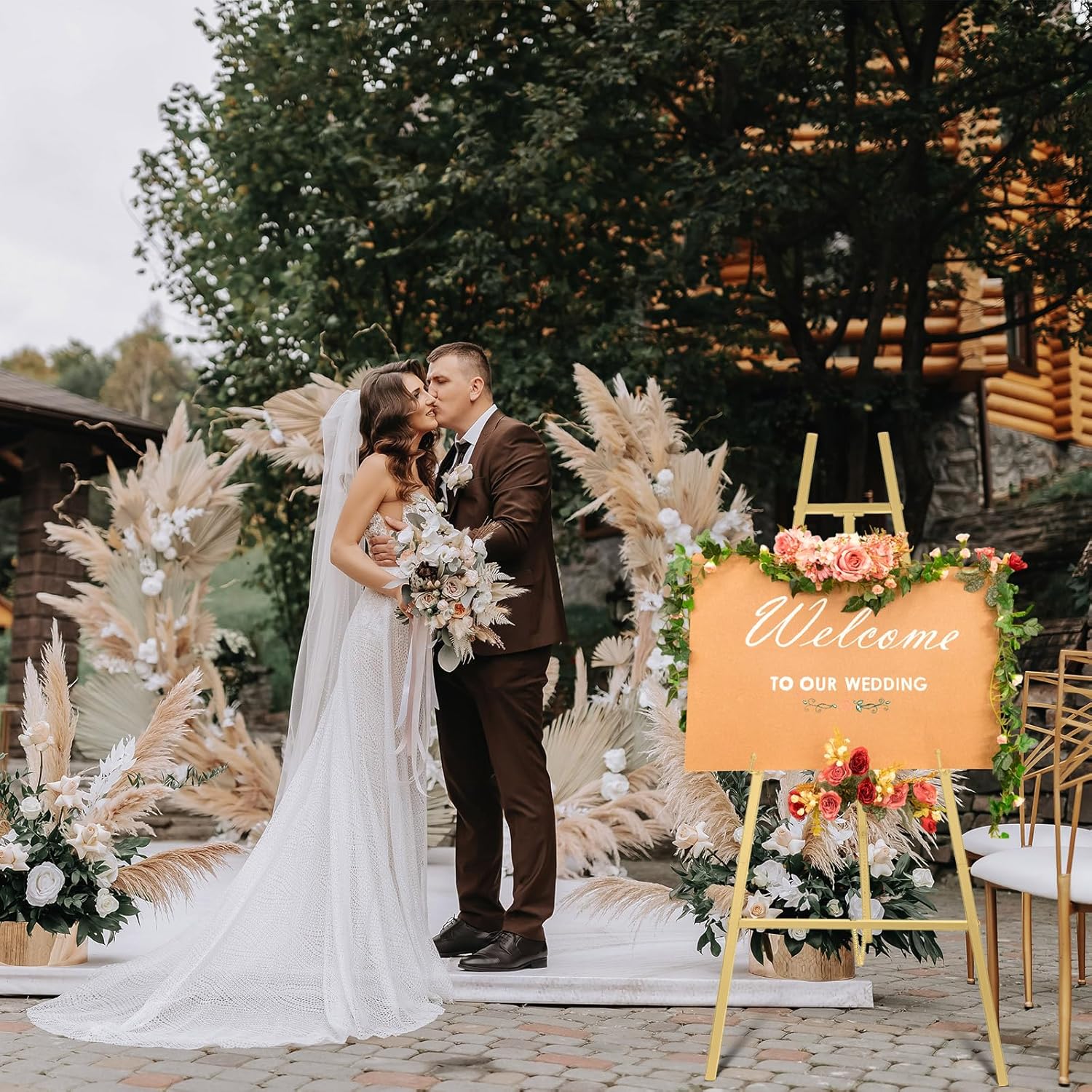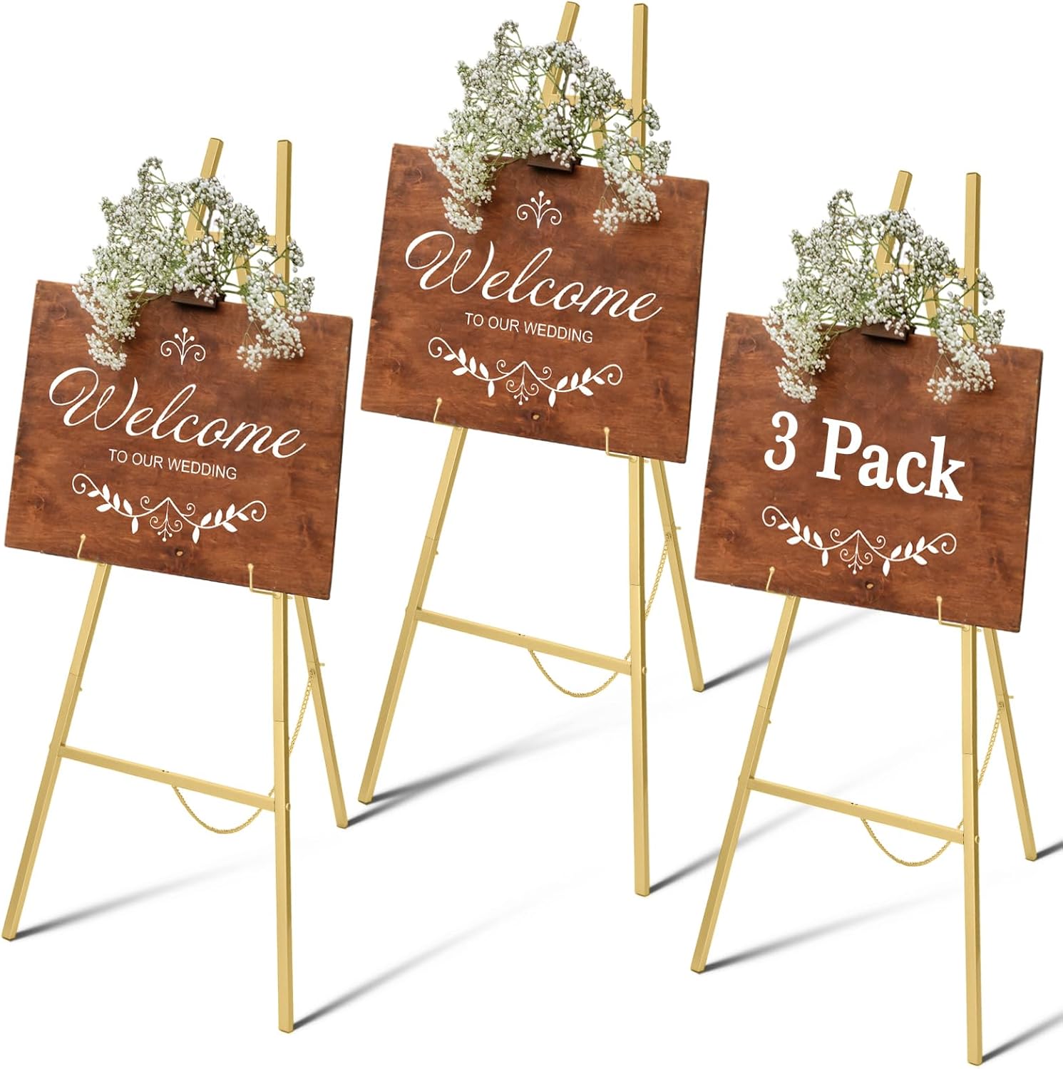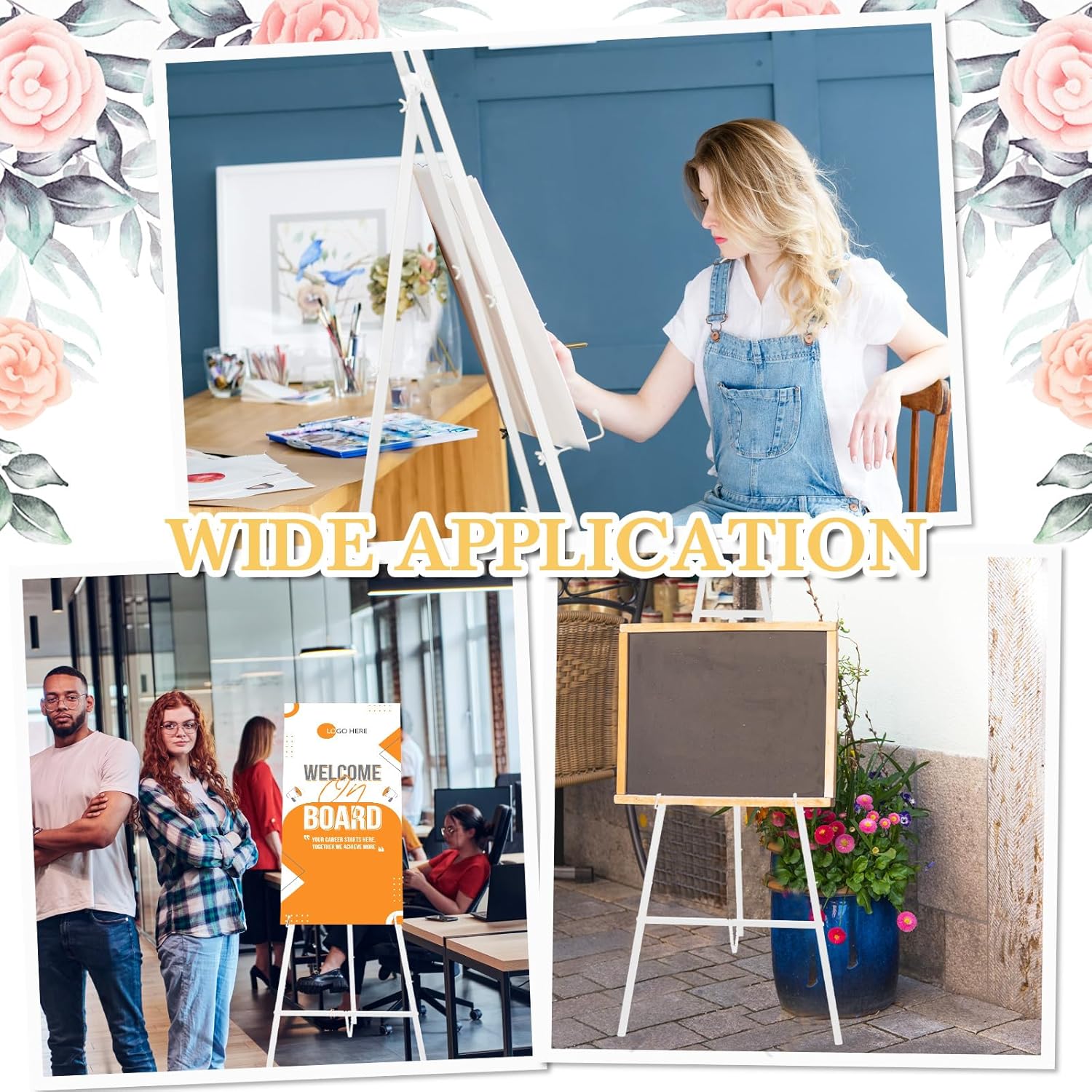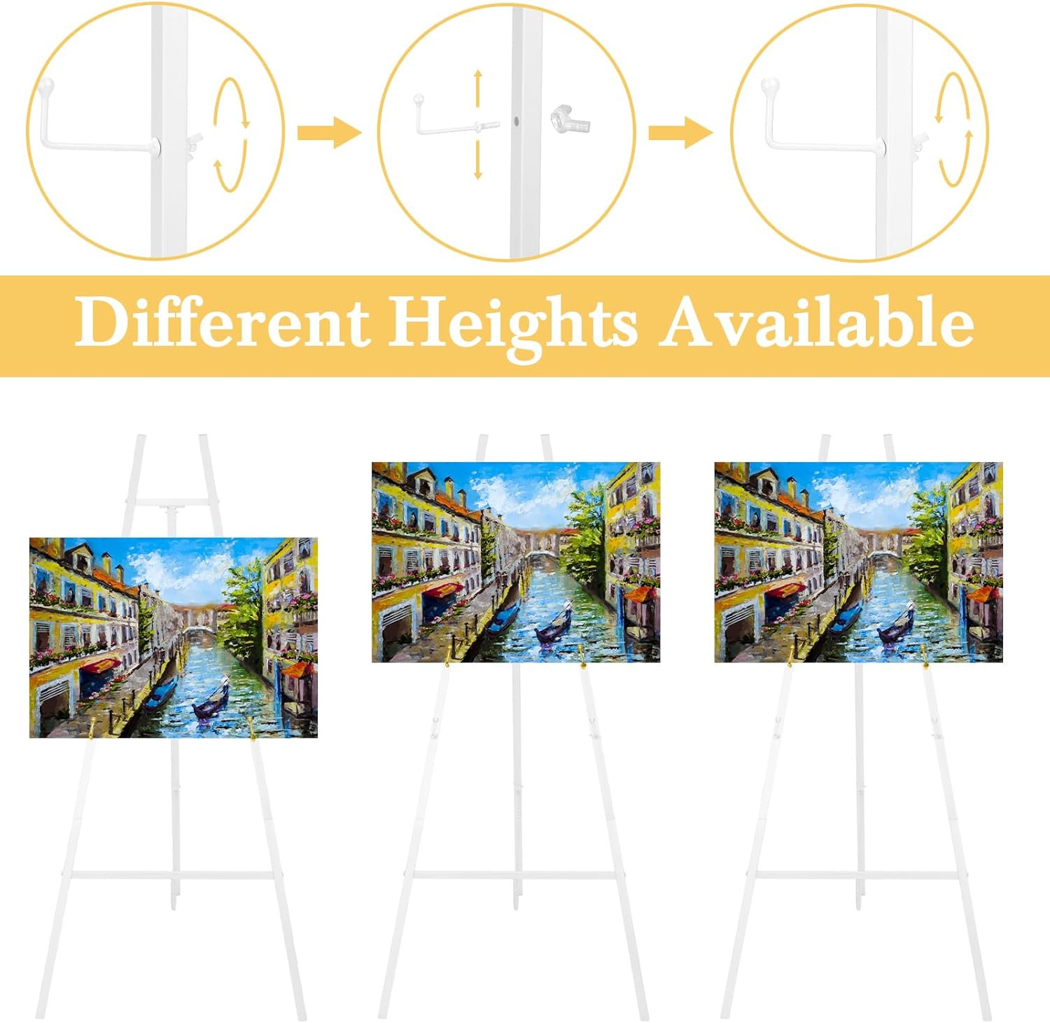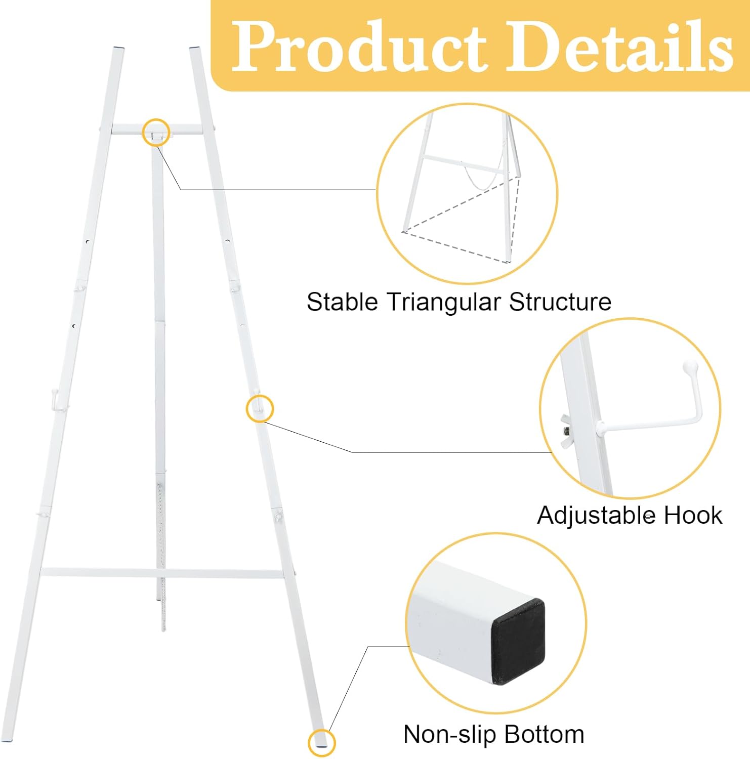 3 Pieces White Metal Easel Stand for Sign, 50 Inch Display Stand Adjustable 3 Tier Easel for Wedding Sign, Posters, Paintings, Exhibition
